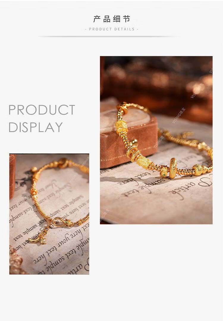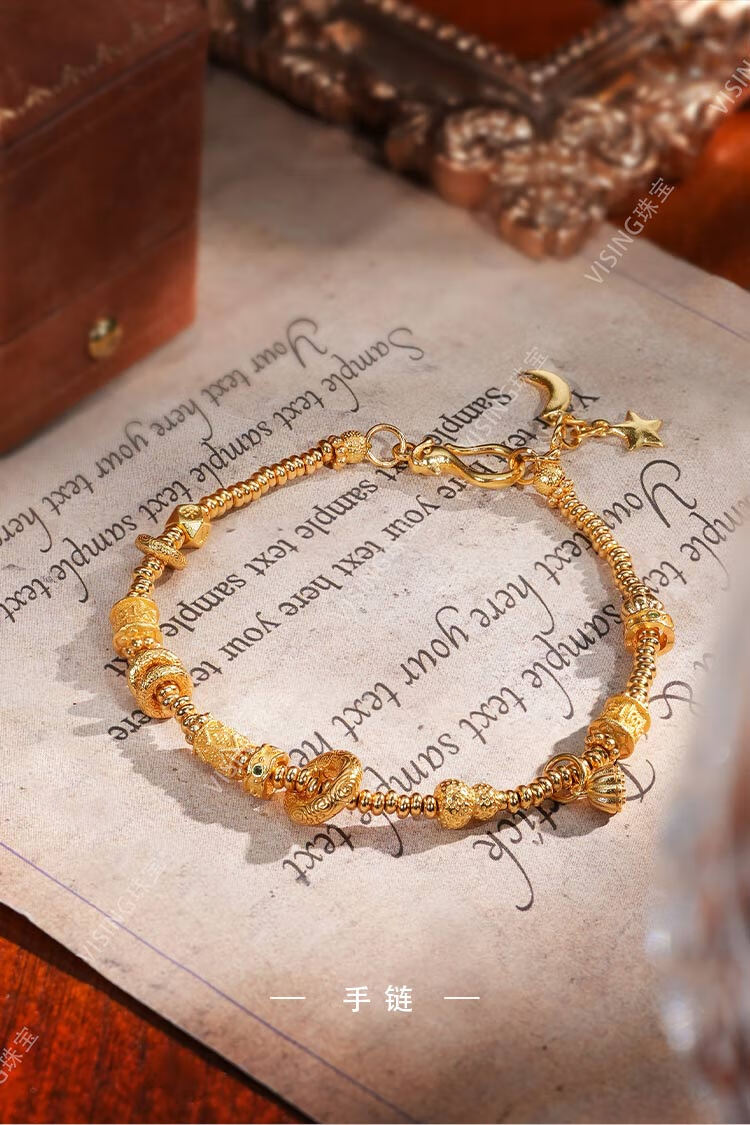 Time Bird Jewelry Ancient Method 925 Silver Gold-plated Star and Moon Gold Coiled Bracelet