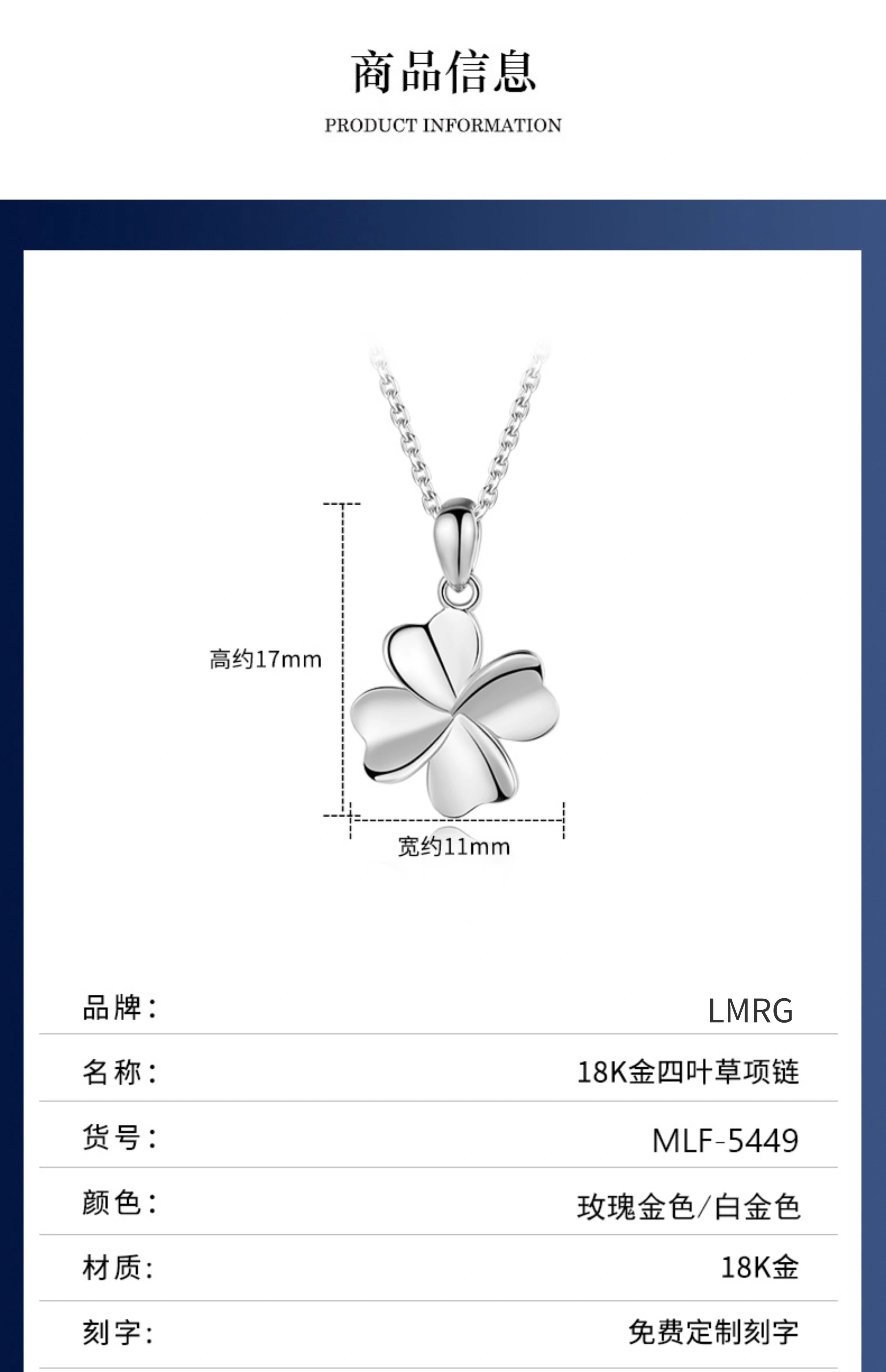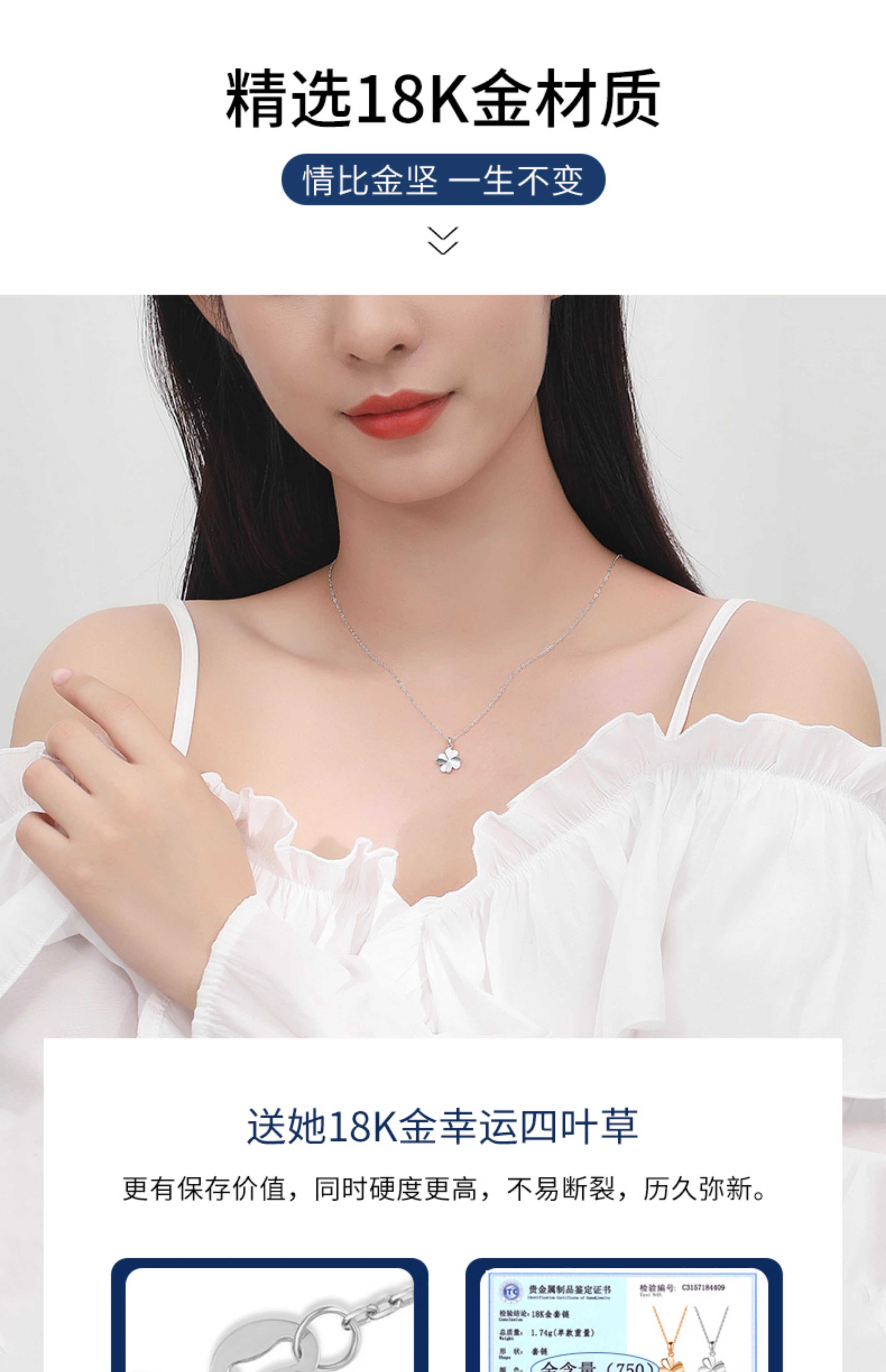 Yage 18K gold four-leaf clover necklace for women platinum new rose gold color gold Chinese Valentine's Day Christmas gift for girlfriend 18K gold four-leaf clover necklace/platinum model/gift gift
