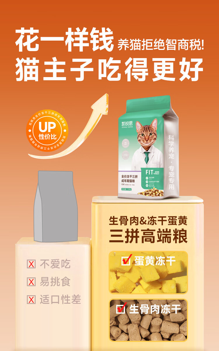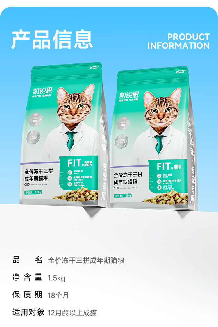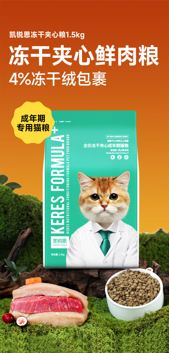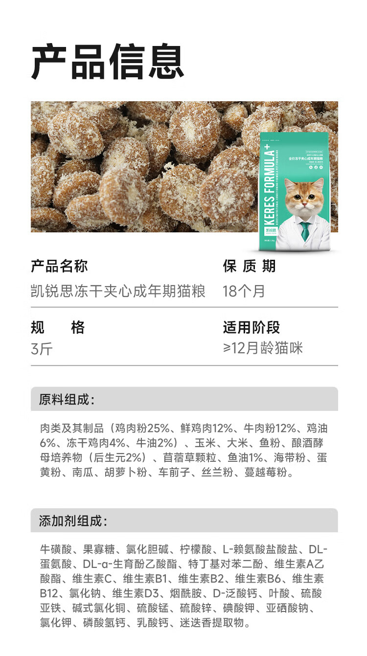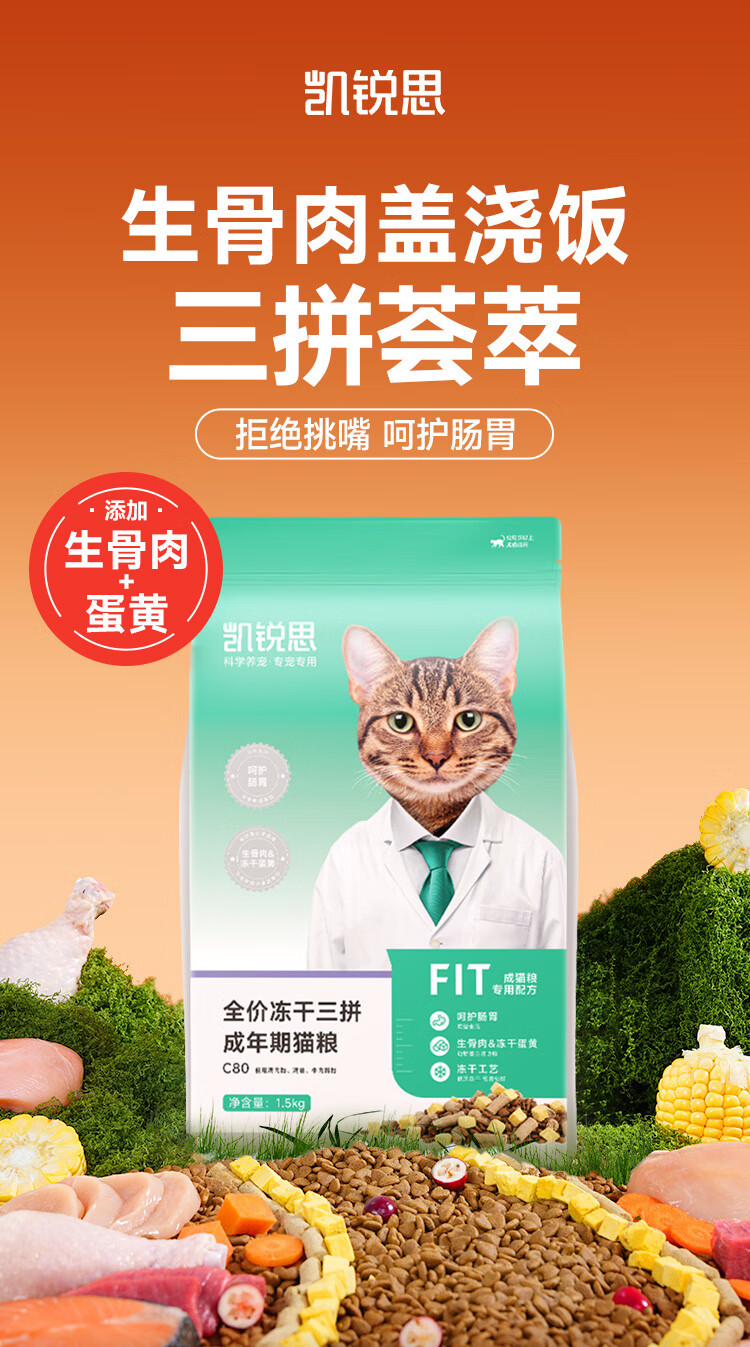 Kairis Cat Food Universal Natural Freeze-Dried Cat Food Special Fish Sandwich Sea Fish Natural Food for Adult Cats 3/4 Jin Jin equals 0.5 kg Upgraded Yichang Power Rabbit Meat Probiotics 2 8 Jin Jin equals 0.5 kg (2 bags/more cost-effective)
