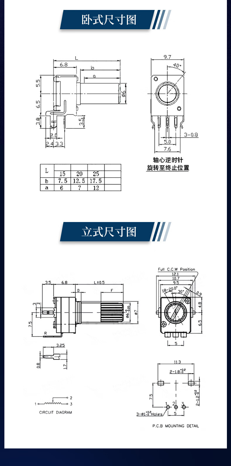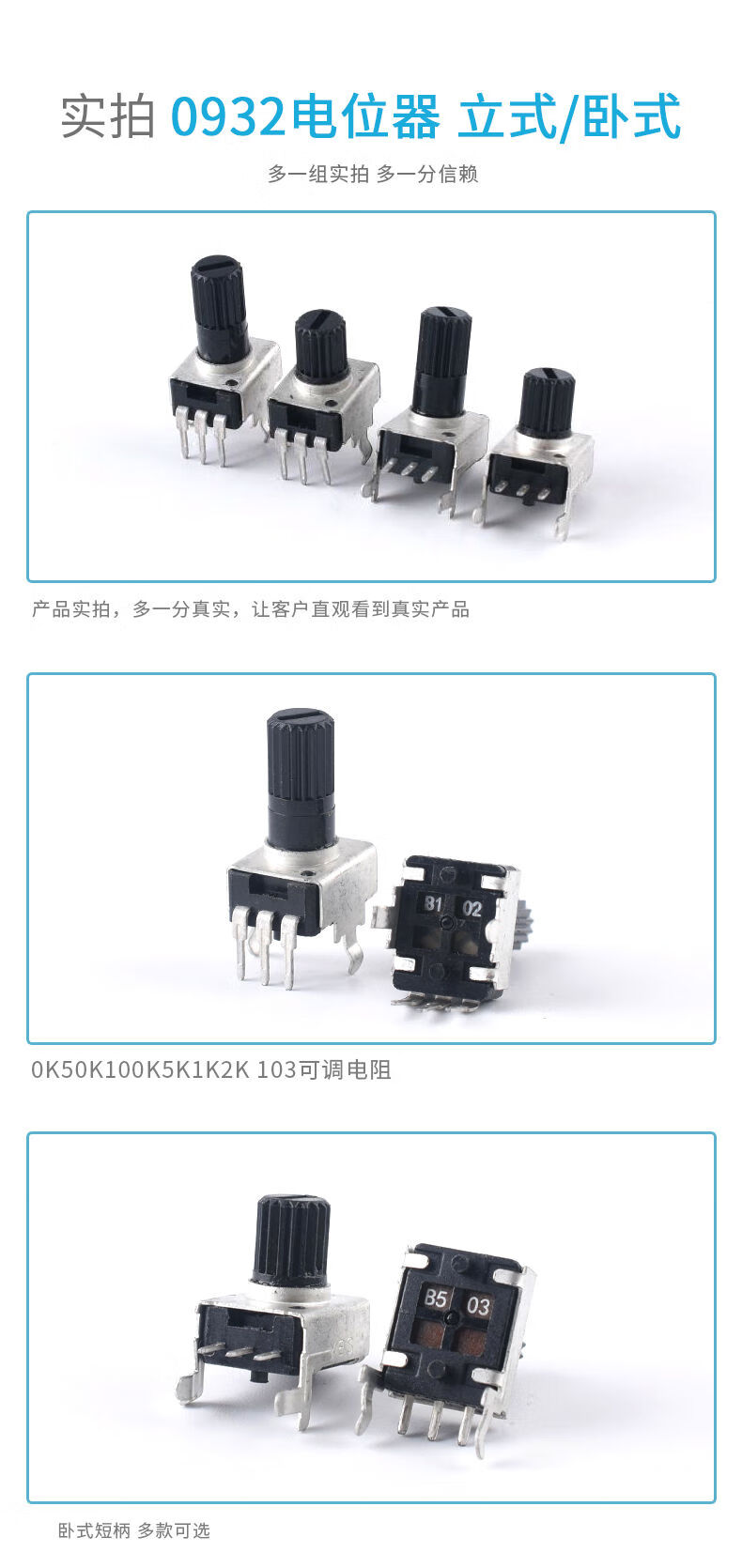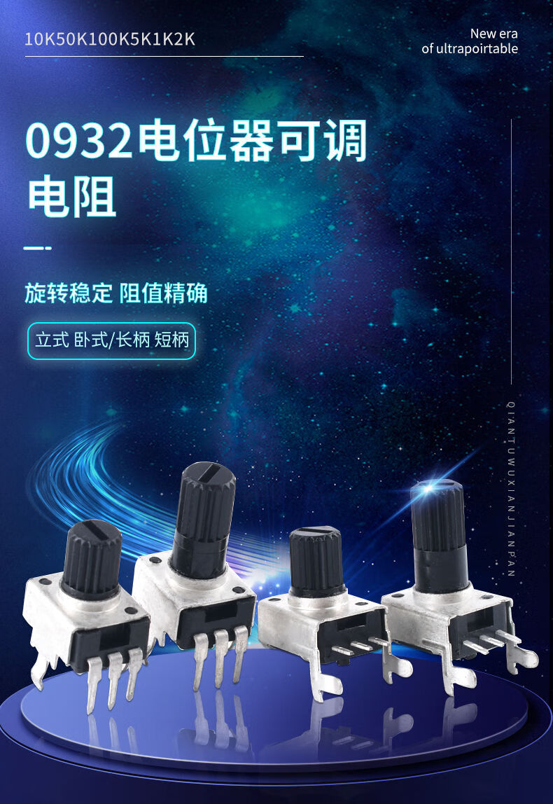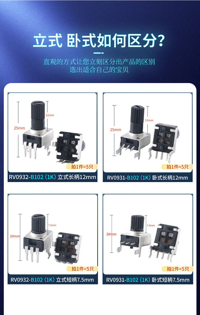 0932 potentiometer vertical/horizontal 10K50K100K5K1K2K 103 adjustable resistor RV09 type 12.5MM RV0932-B103/10K vertical long handle 12mm 5 pieces