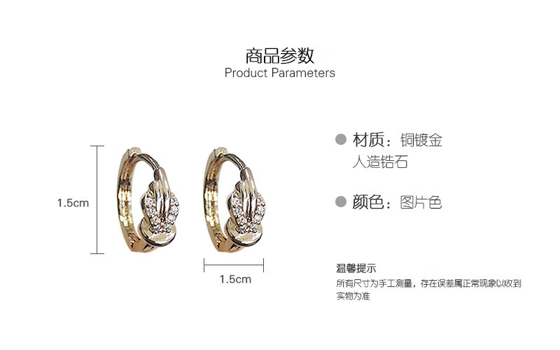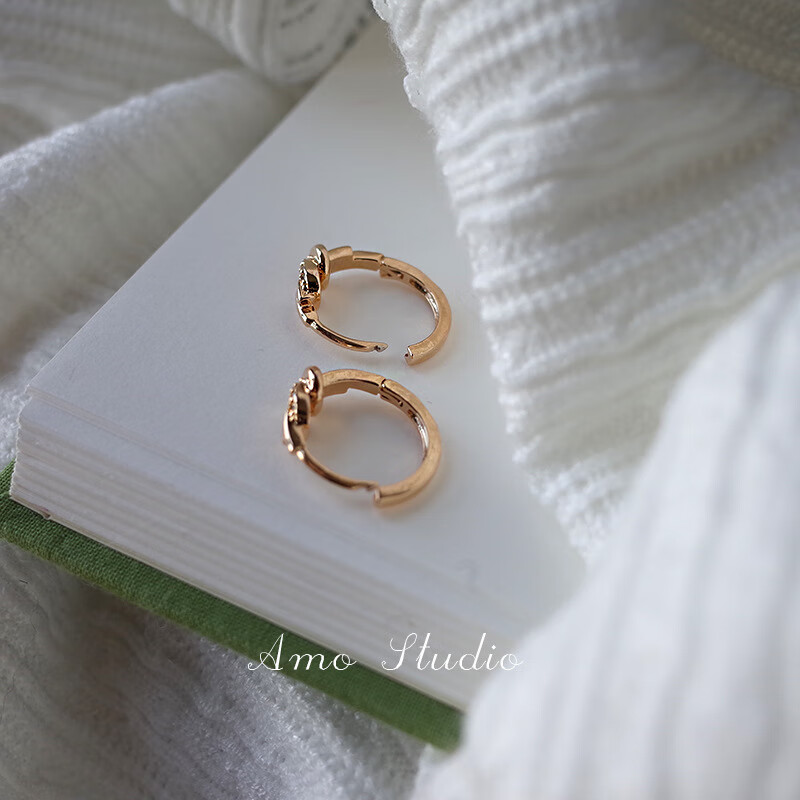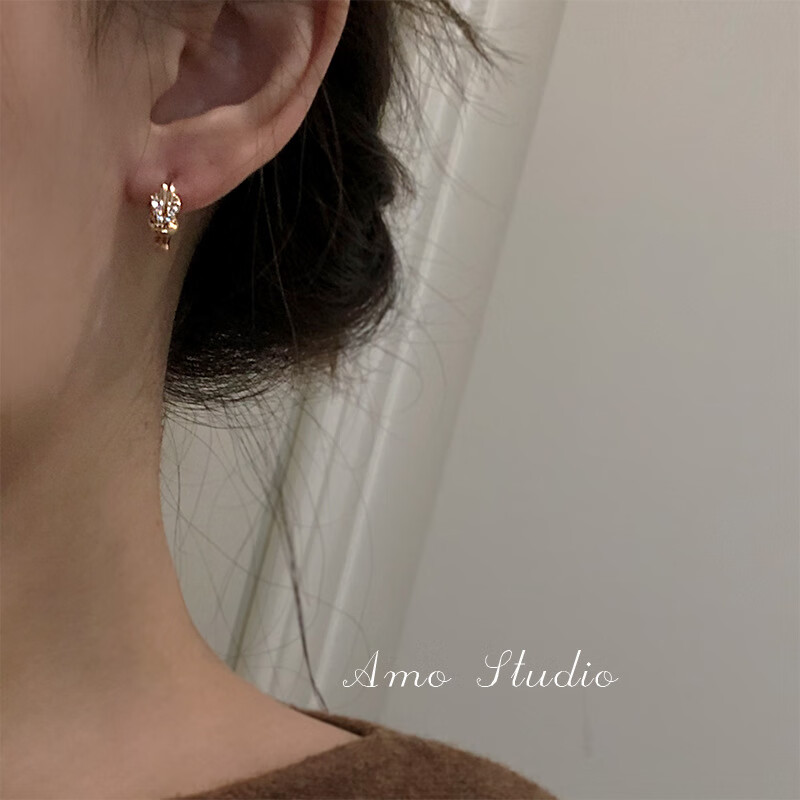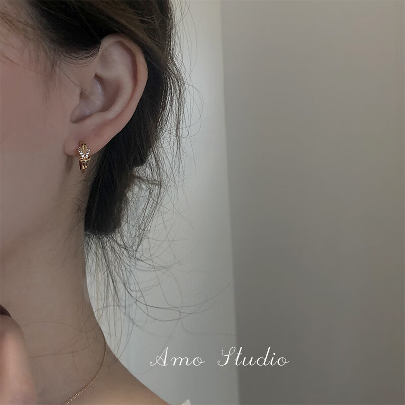 18K gold earrings with rhinestone imitation 18k gold internet celebrity replacement earrings picked up at Shiniao brand special outlet counter, rose gold