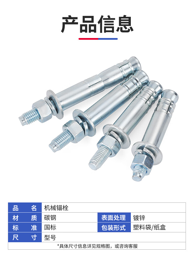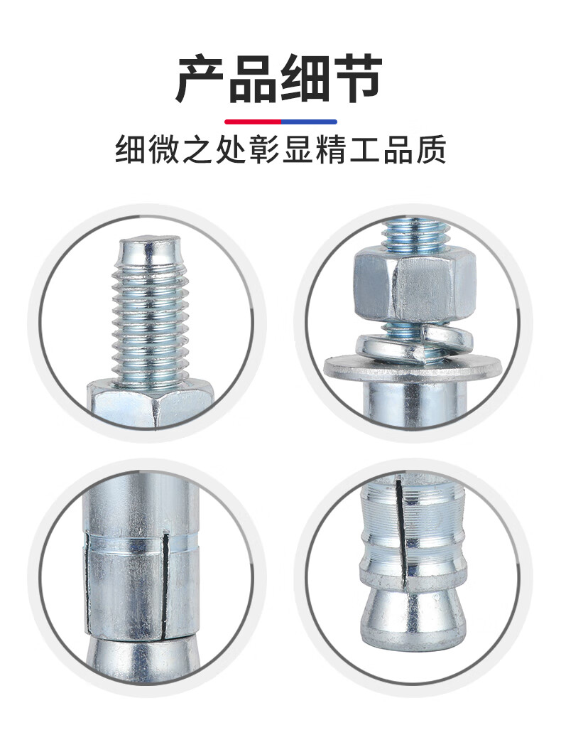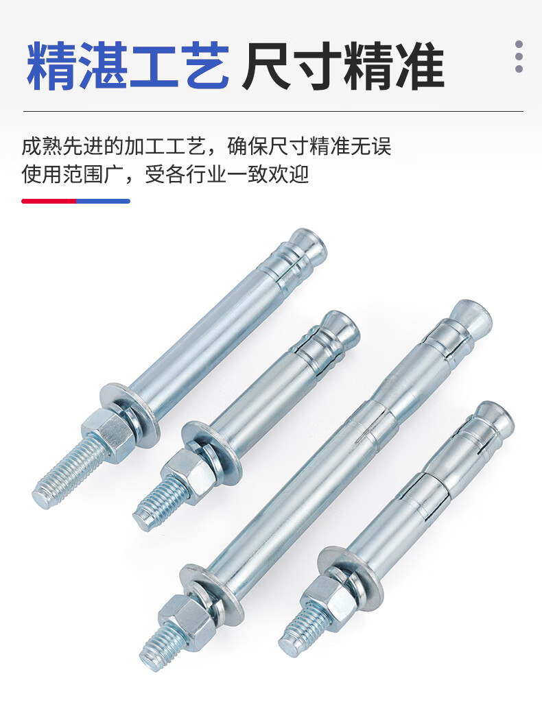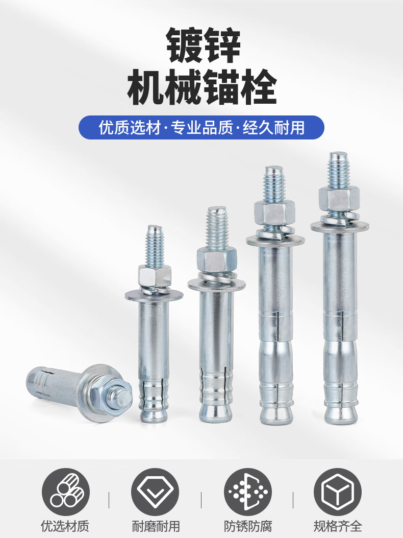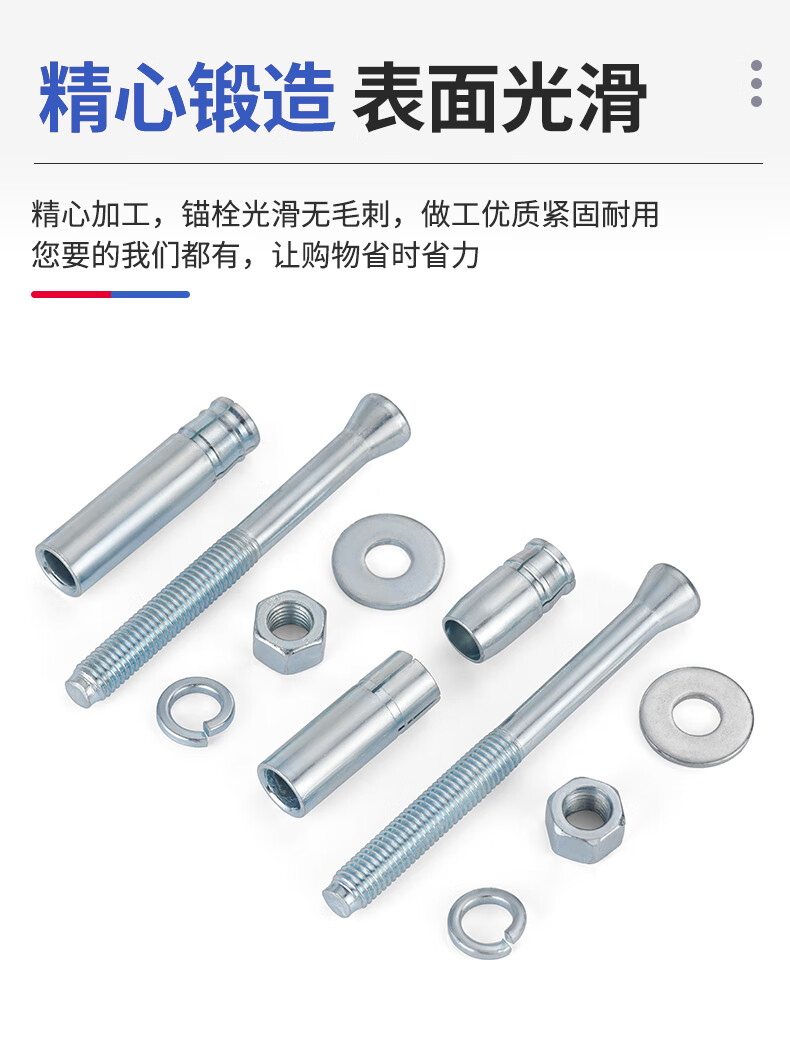 JINGGONG galvanized mechanical anchor expansion screw single and double tube rear-cut expansion bolt rear expansion heavy-duty anchor bolt M8-M24 double tube M12*130 (2 pieces)