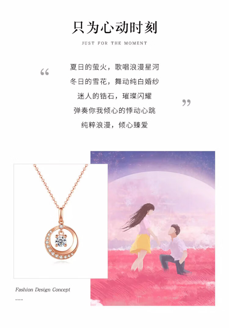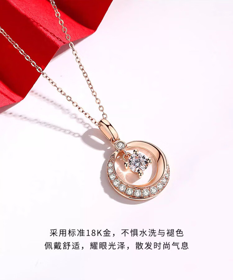 Changju 18k gold necklace women's rose gold star and moon smart pendant 2024 new clavicle chain Valentine's Day gift rose gold