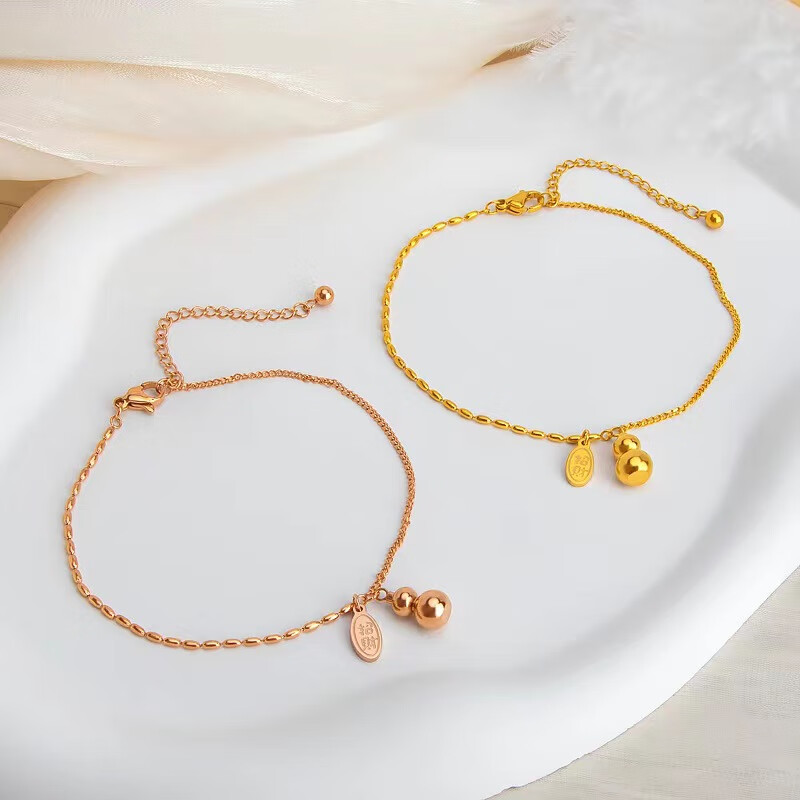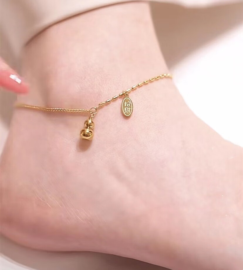 Yage Lucky Gold Gourd Anklet for Women 18K Gold Internet Celebrity Ins High-Quality Temperament Simple Versatile Light Luxury Design Foot Accessories Trendy Gold