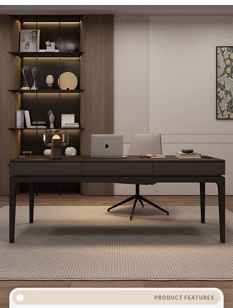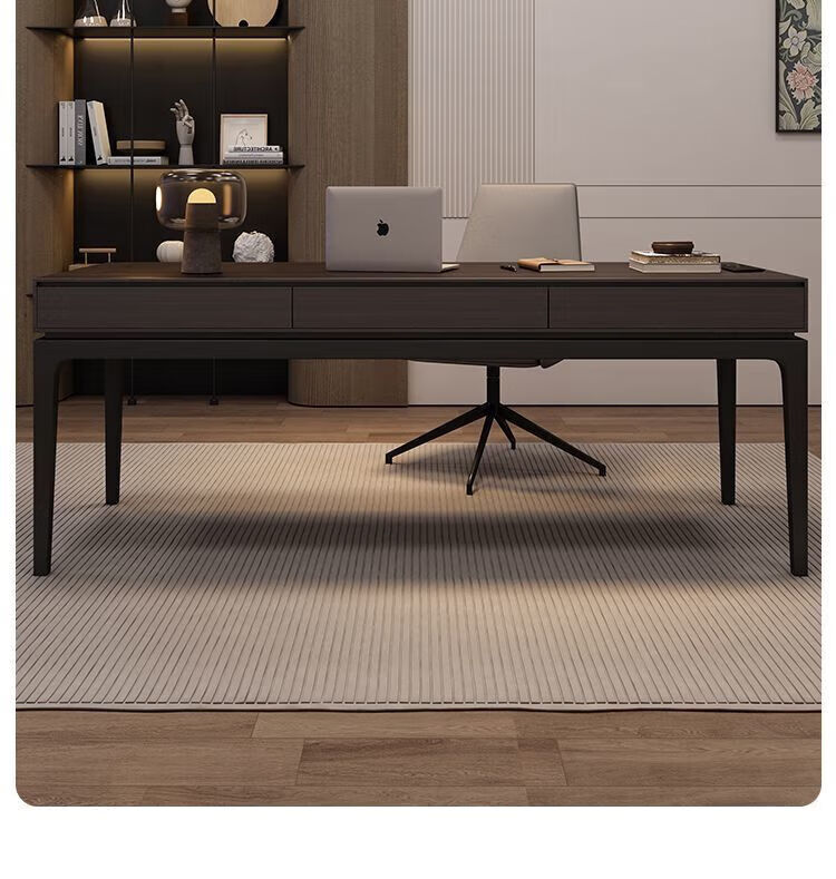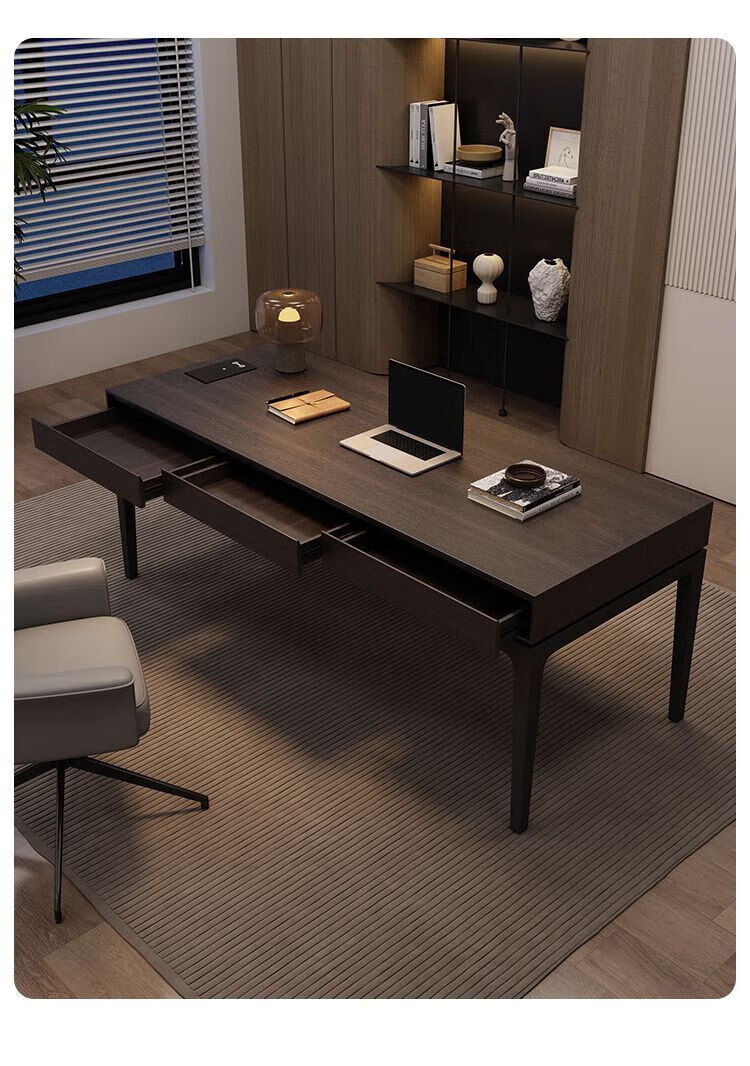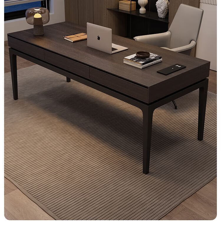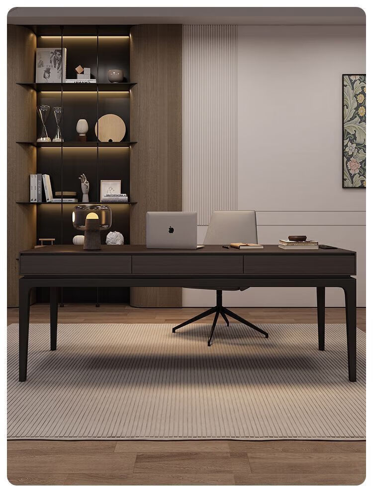 Solid wood desk Italian light luxury modern simple workbench 18 home computer desk office study desk 1.4 meters desk smoked color ordinary style
