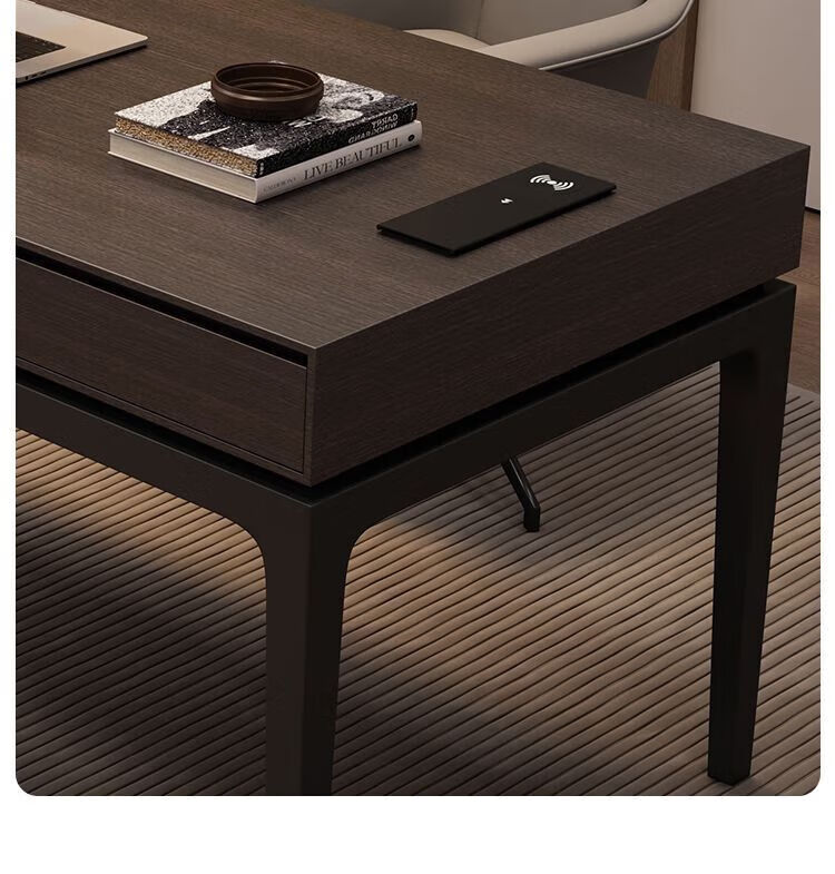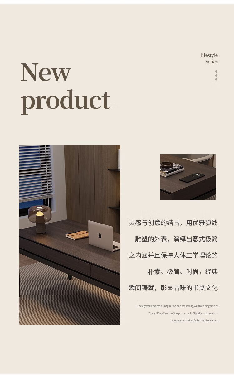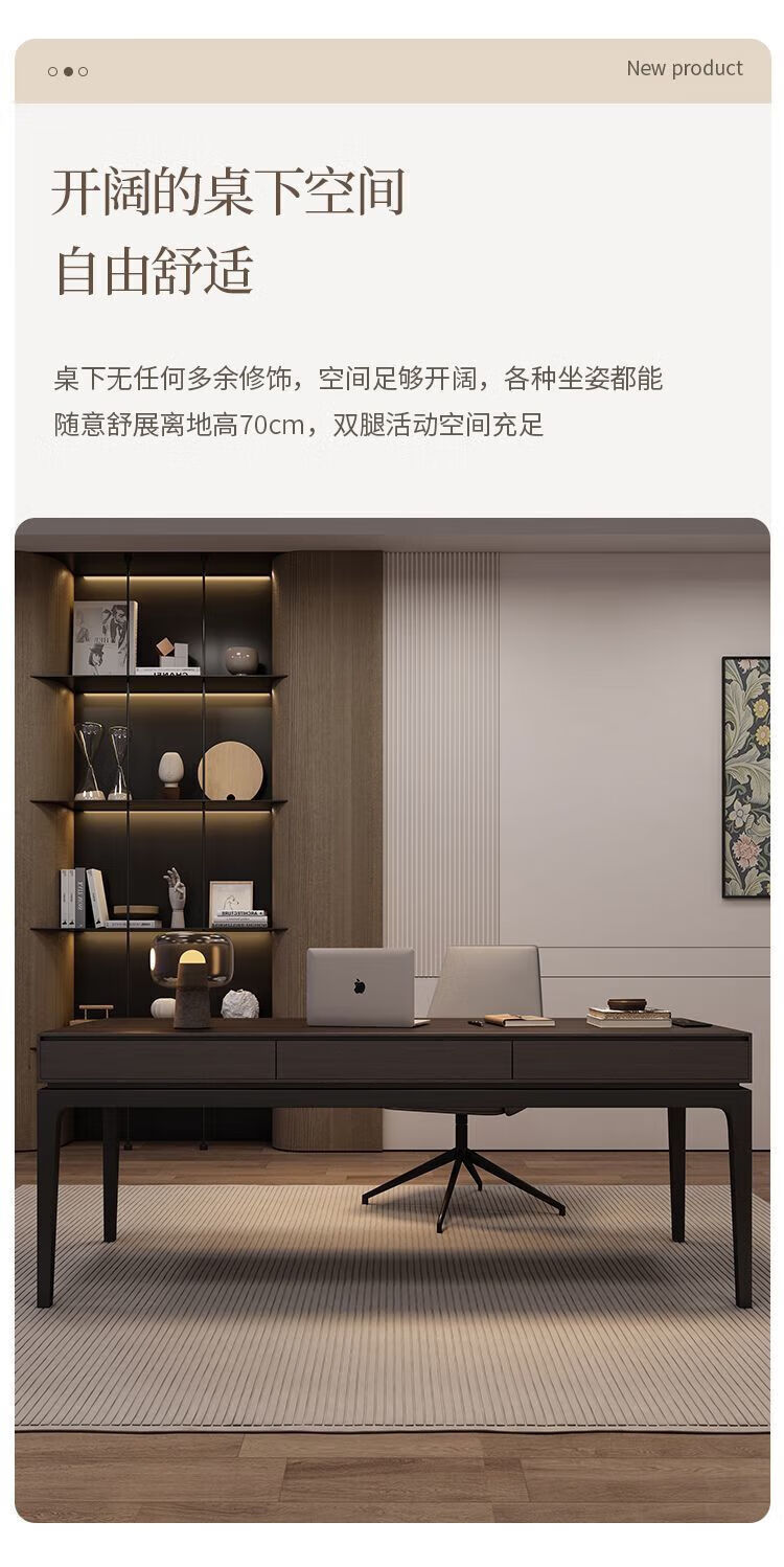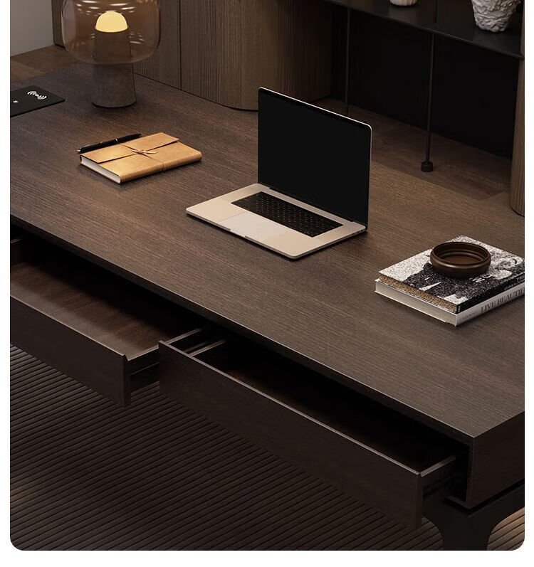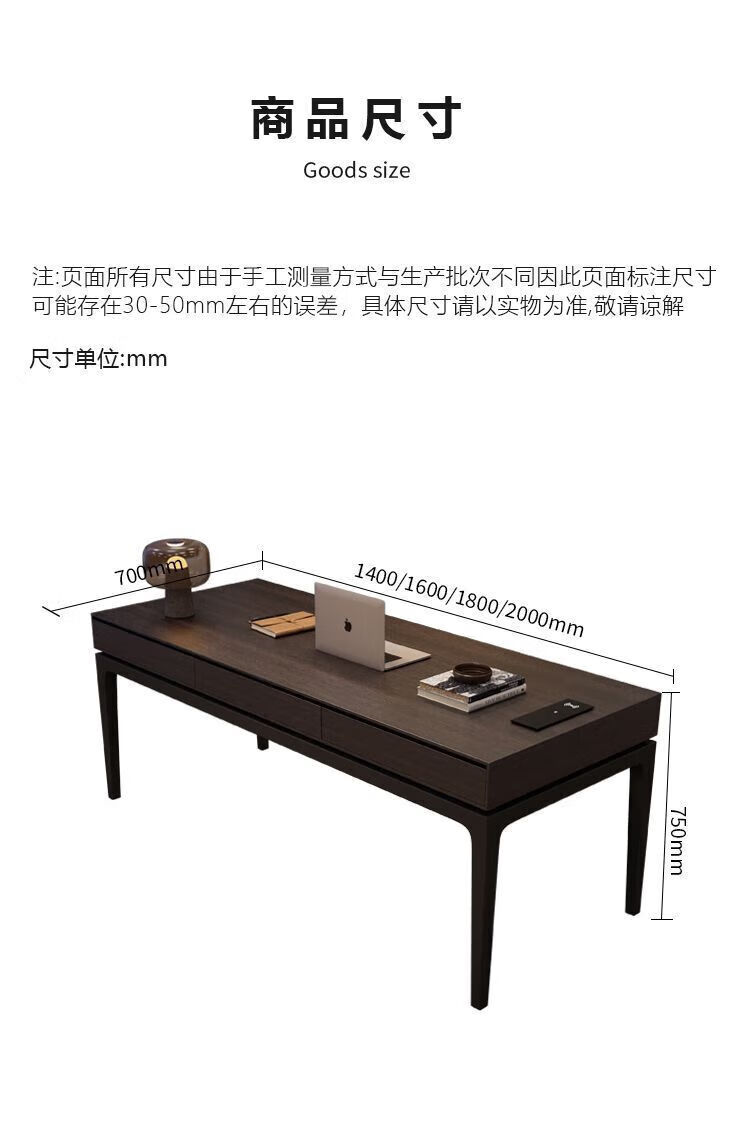 Solid wood desk Italian light luxury modern simple workbench 18 home computer desk office study desk 1.4 meters desk smoked color ordinary style