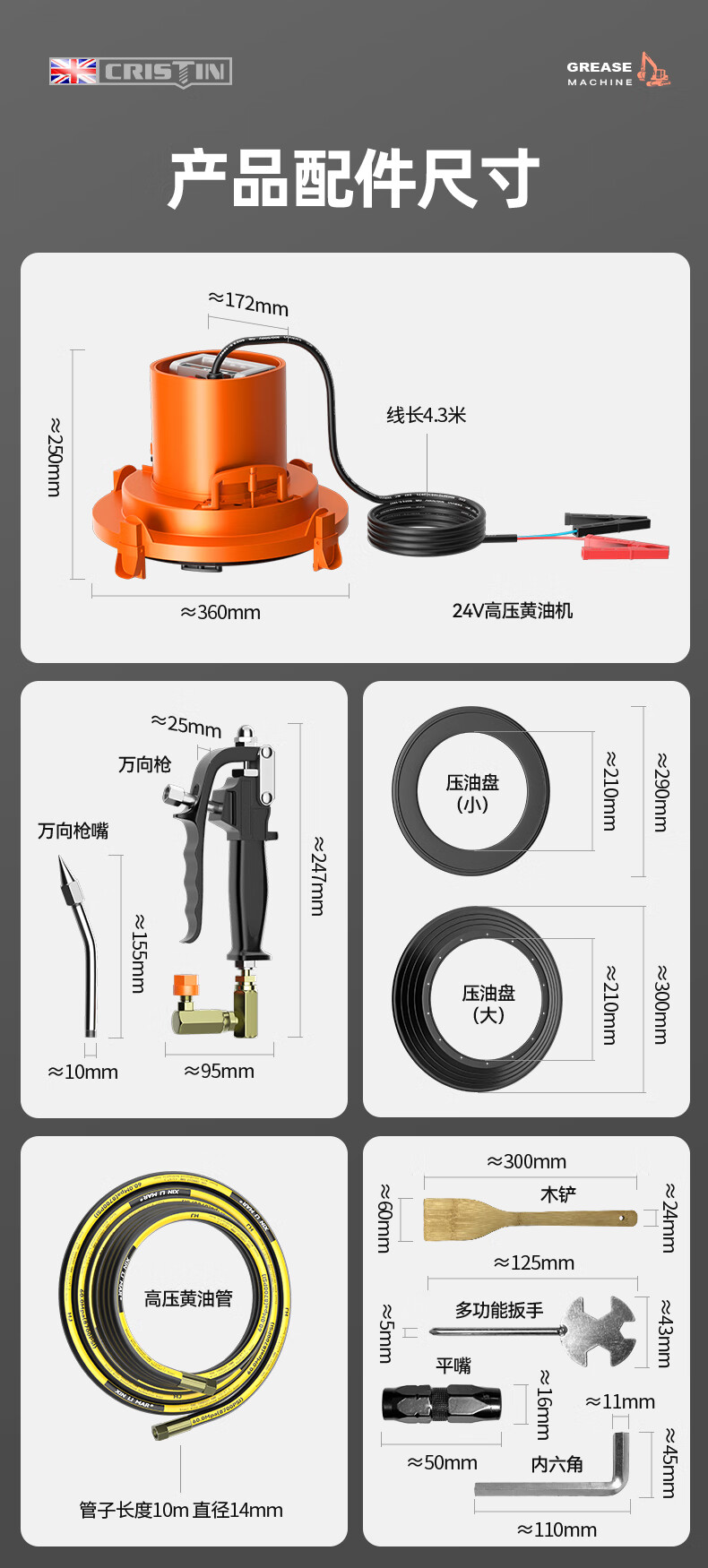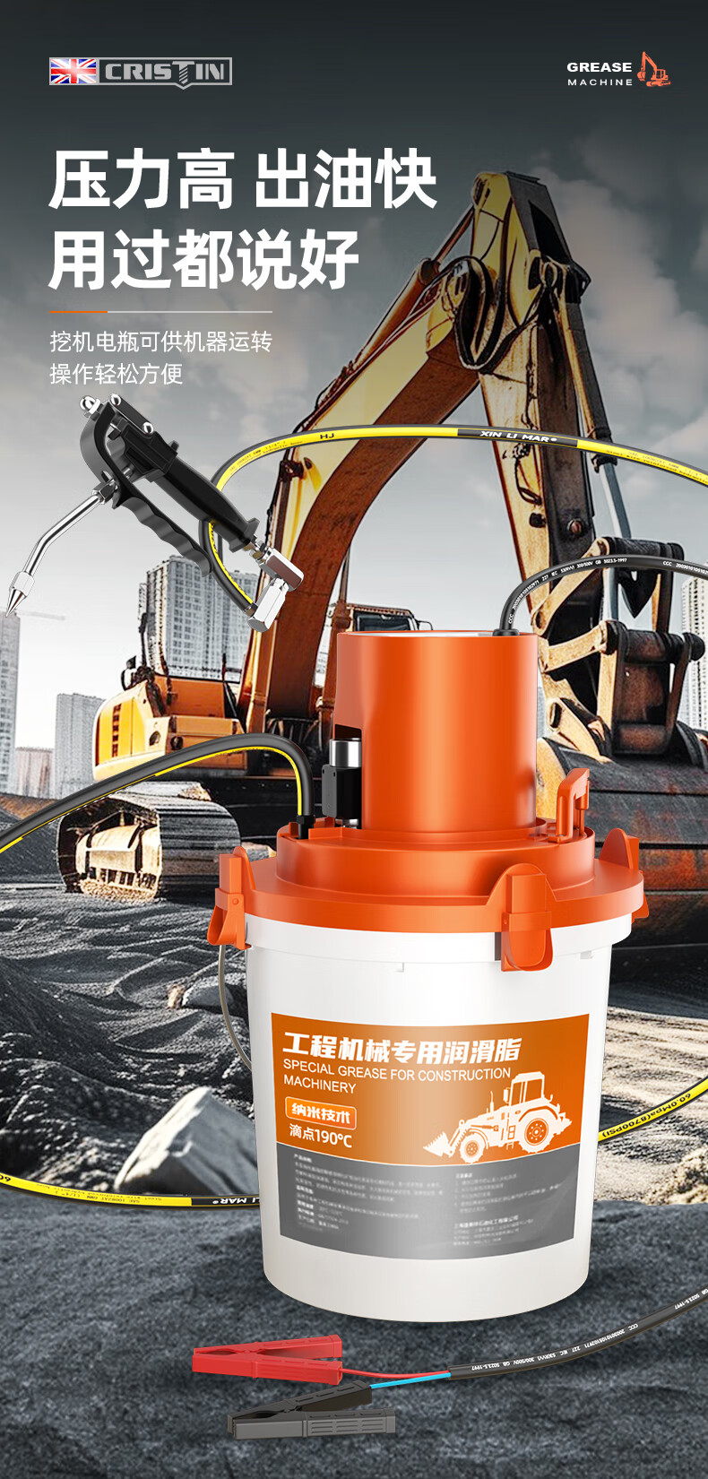 Christine fully automatic butter machine barrel excavator electric special sinking grease gun new high-pressure oiler 24v enhanced-CT butter machine 600W + 10m oil pipe
