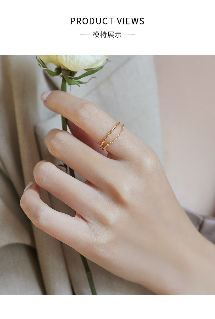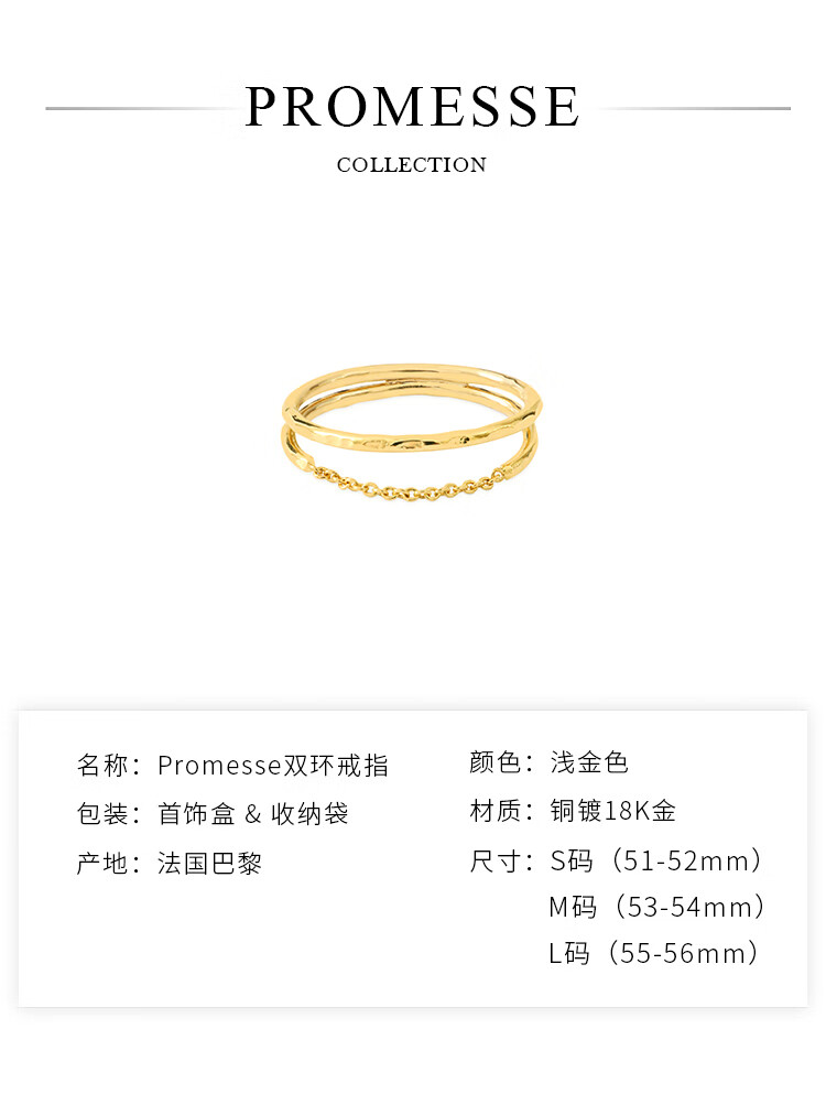 Kechu French BDM double circle chain thin ring women's light luxury index finger niche designer plain circle high-end sense ins stacking S size 51-52mm