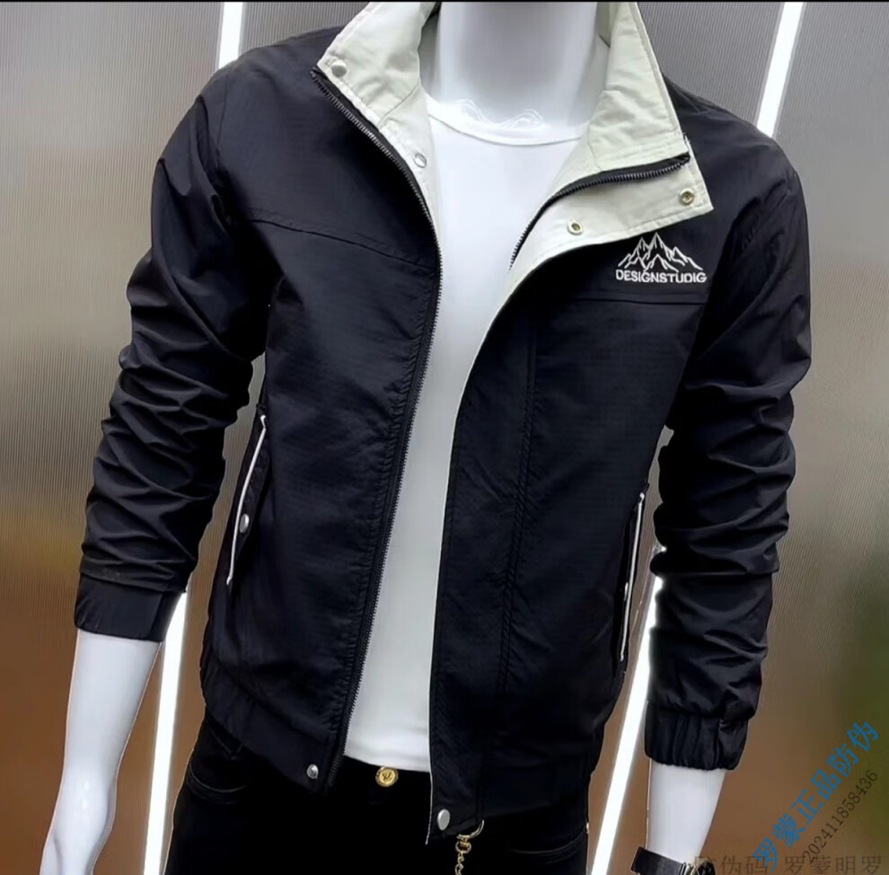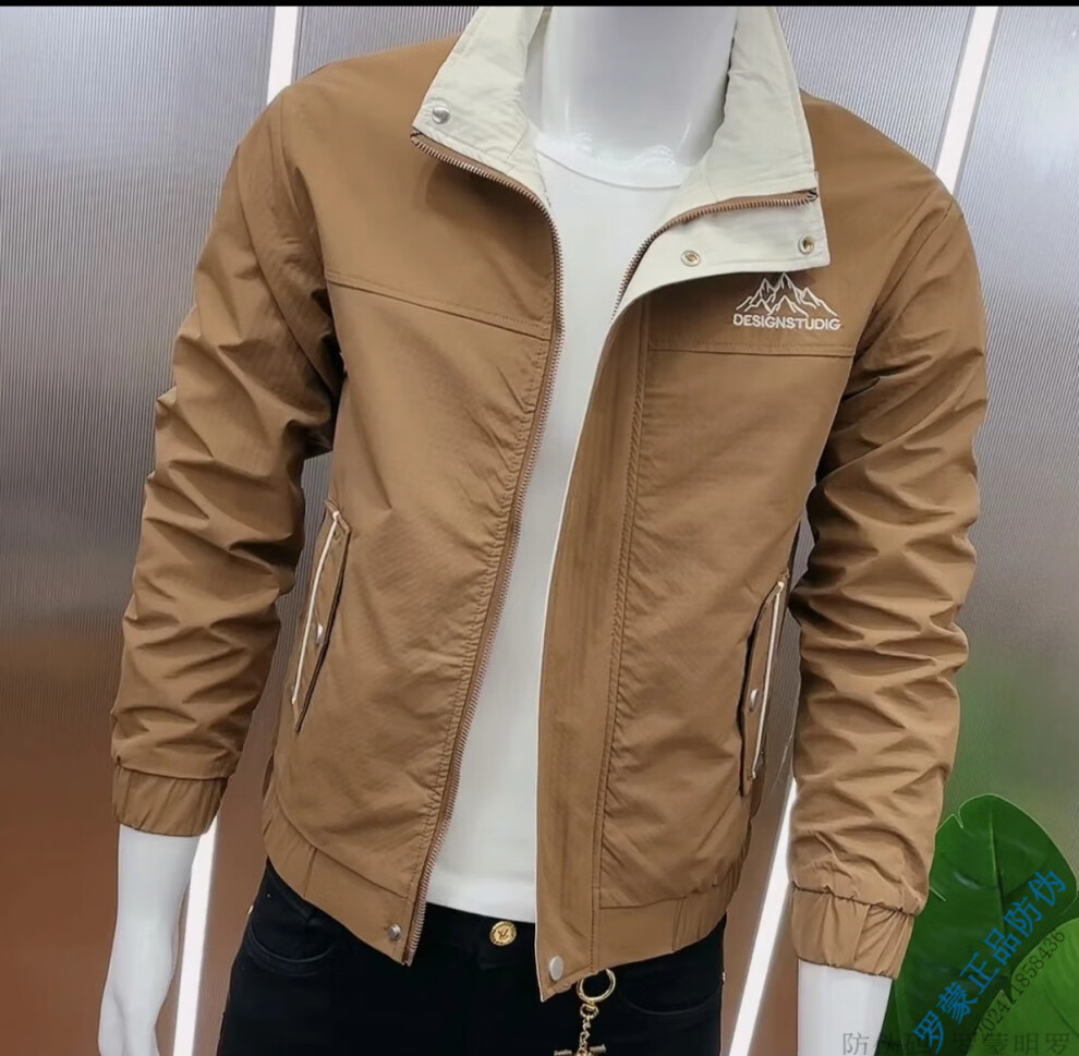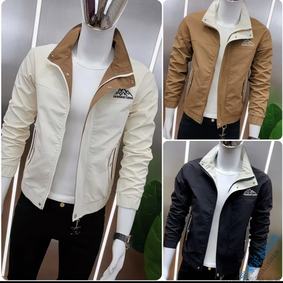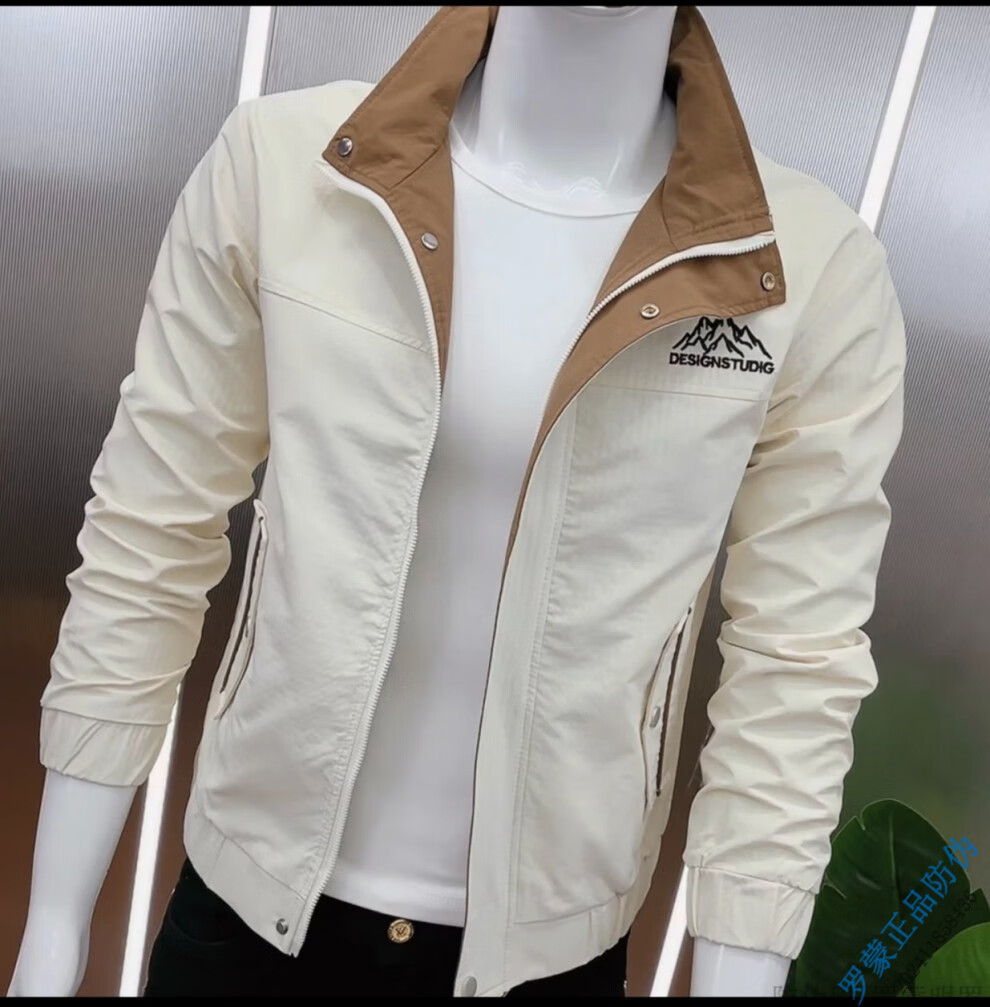 ROMON 2025 new spring and autumn men's jacket stand collar zipper trend Korean style early spring jacket slim and versatile off-white single piece jacket 2XL suitable for 135-145Jin Jin equals 0.5 kg