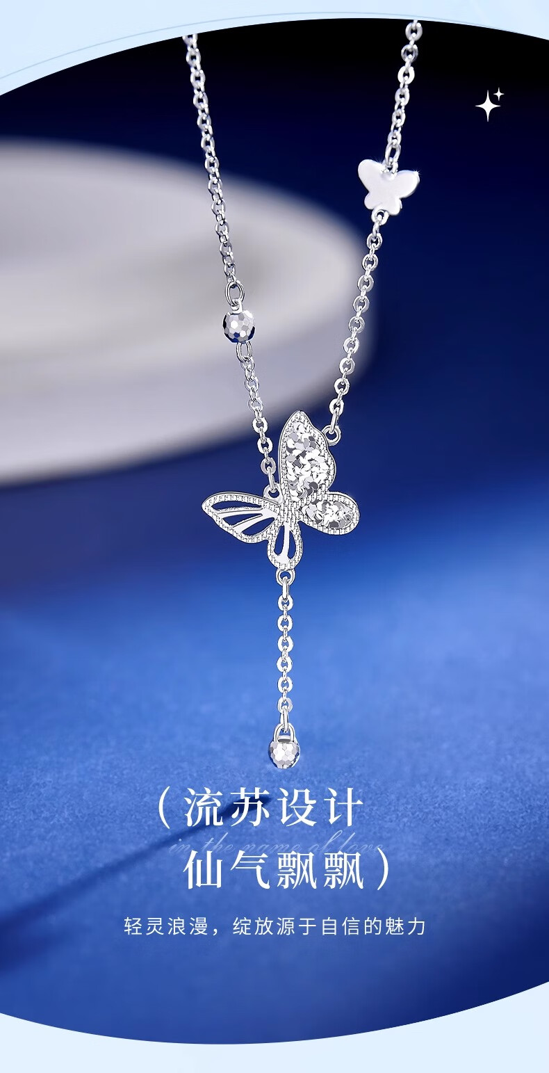 China Gold (CHINA GOLD) pt950 platinum necklace for women, platinum butterfly tassel set chain, light luxury jewelry, Valentine's Day birthday gift for girlfriend, platinum butterfly tassel necklace, about 3.9g, brand gift box