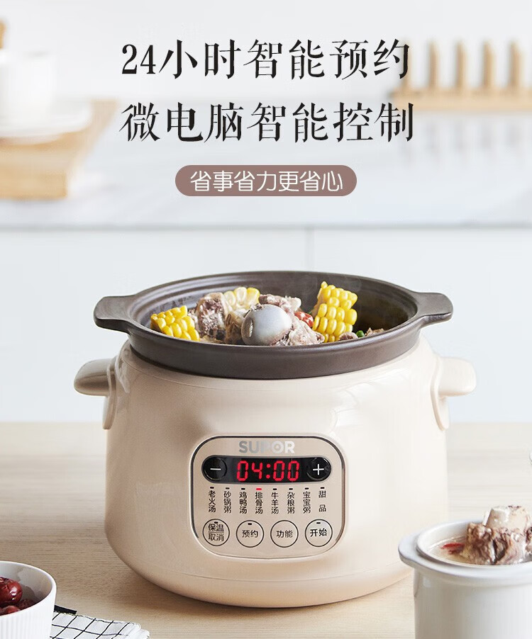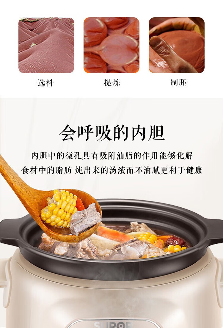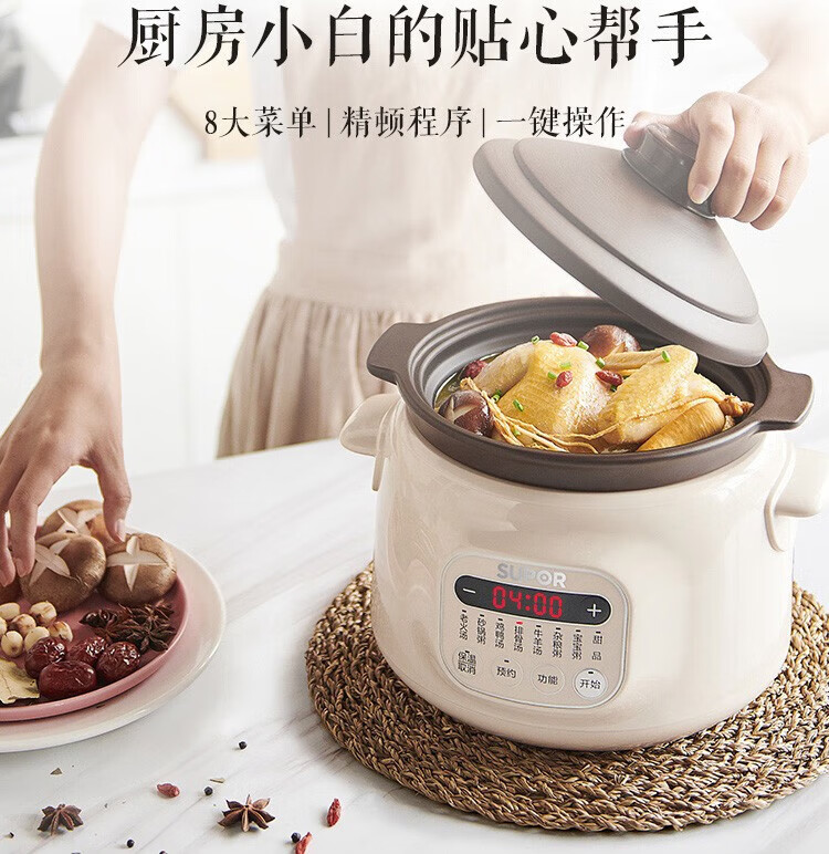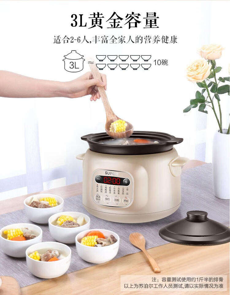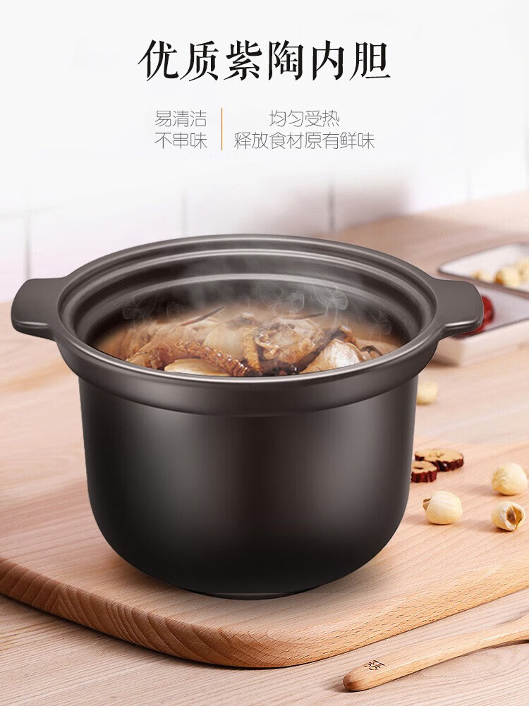 SUPOR electric stew pot, household 3L large-capacity multi-function soup pot, high-quality purple pottery liner bird's nest stew pot, porridge cooker for 3-4 people, 24-hour smart appointment, wrap-around three-dimensional heating 3L