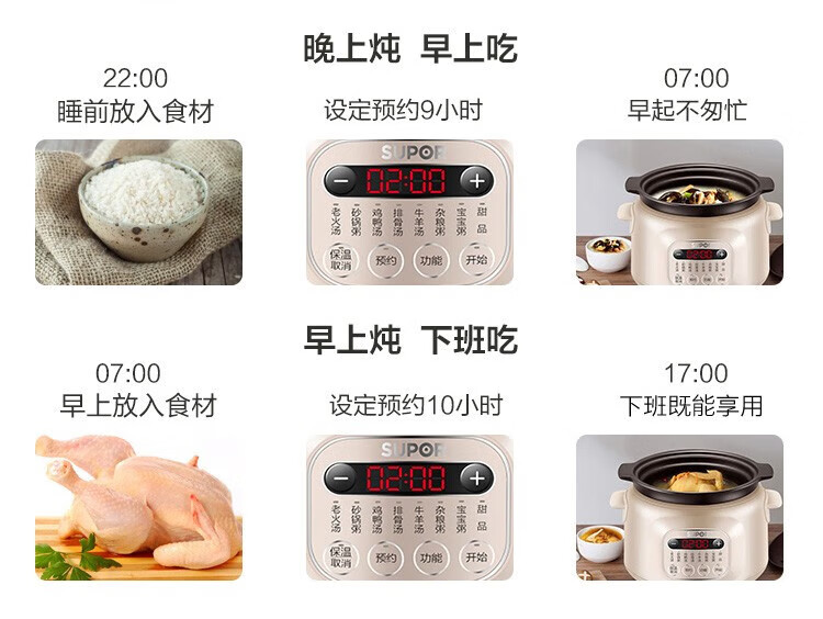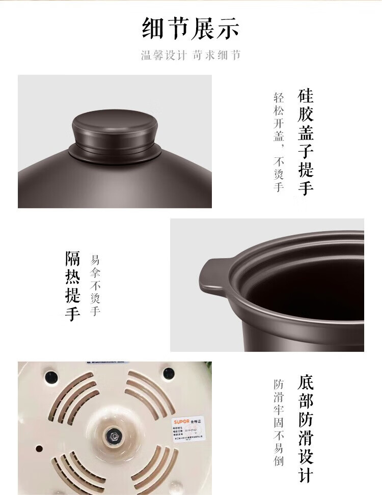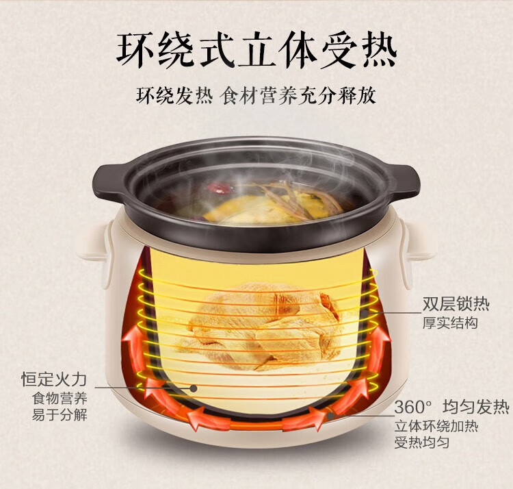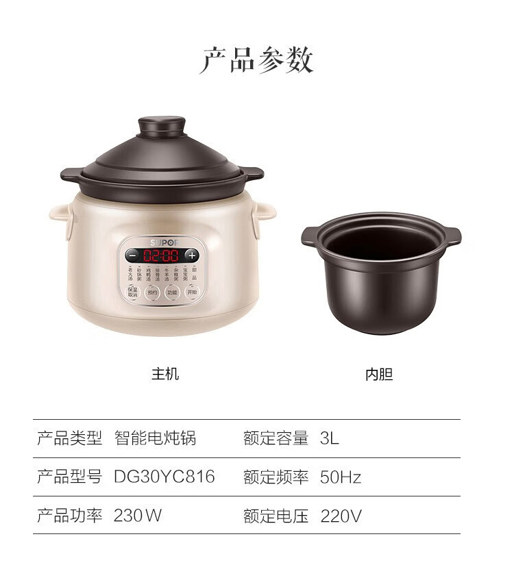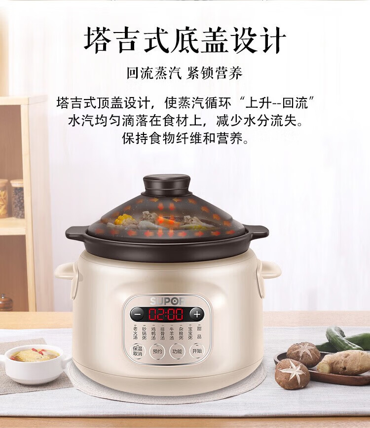 SUPOR electric stew pot, household 3L large-capacity multi-function soup pot, high-quality purple pottery liner bird's nest stew pot, porridge cooker for 3-4 people, 24-hour smart appointment, wrap-around three-dimensional heating 3L