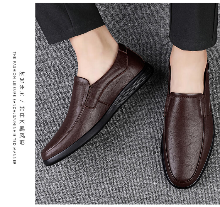 Dragonfly brand 100% genuine cowhide special price off-size casual leather shoes for men summer slip-on soft sole dad business leather shoes 8008 black genuine leather 40