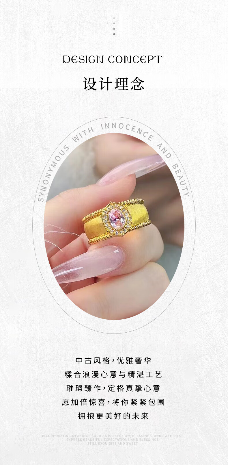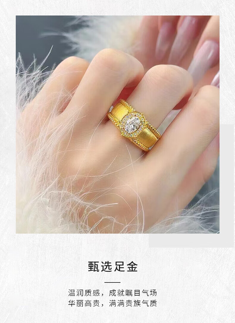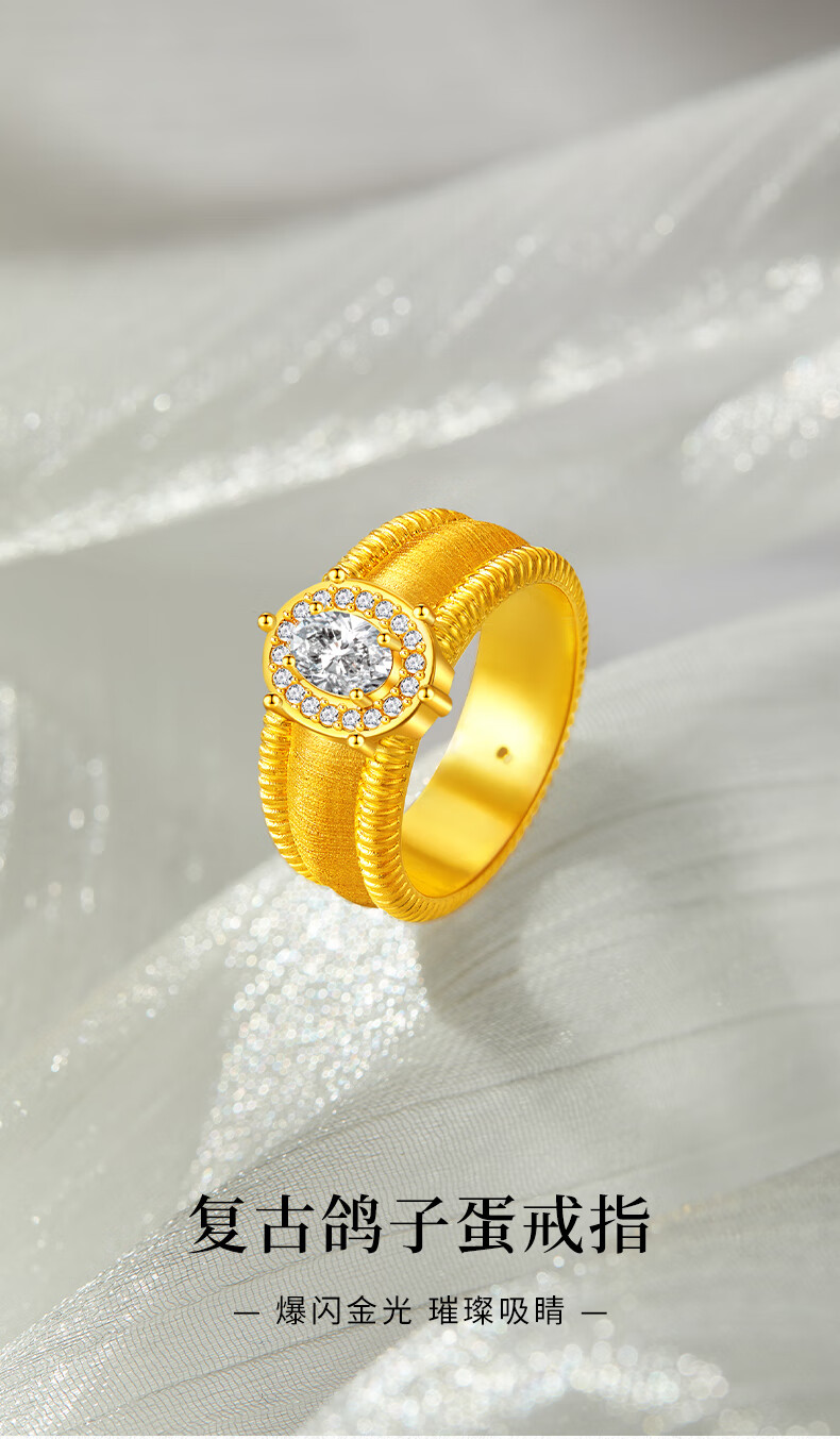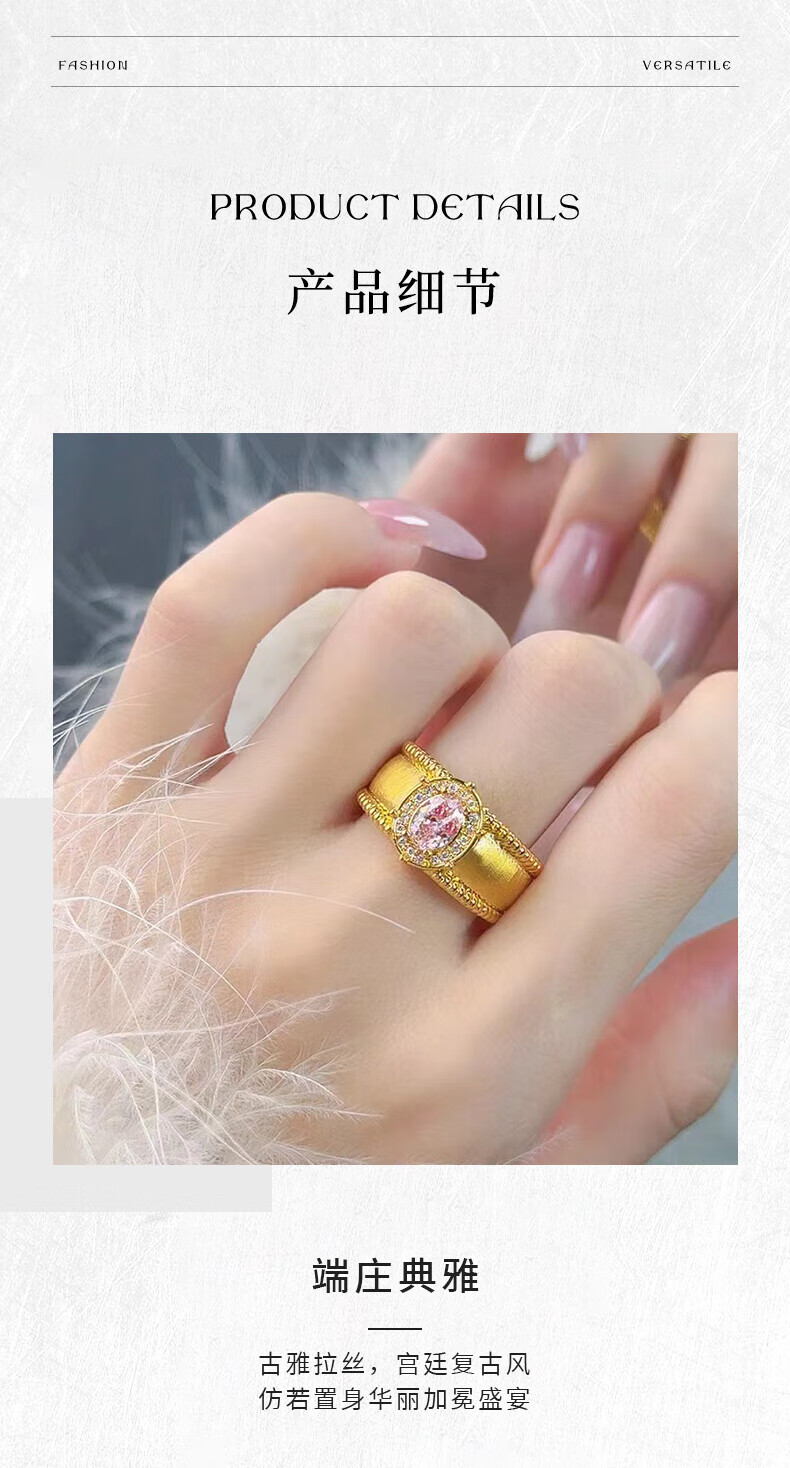 Lao Fengxiang pigeon egg gold ring pure gold retro fashion queen ring for girlfriend and wife anniversary birthday gift pink style (#14-#15) (about 2.28-2.5g)