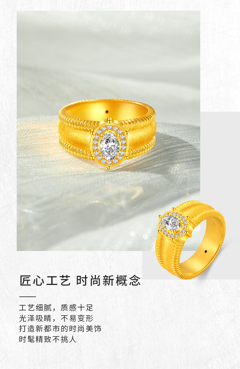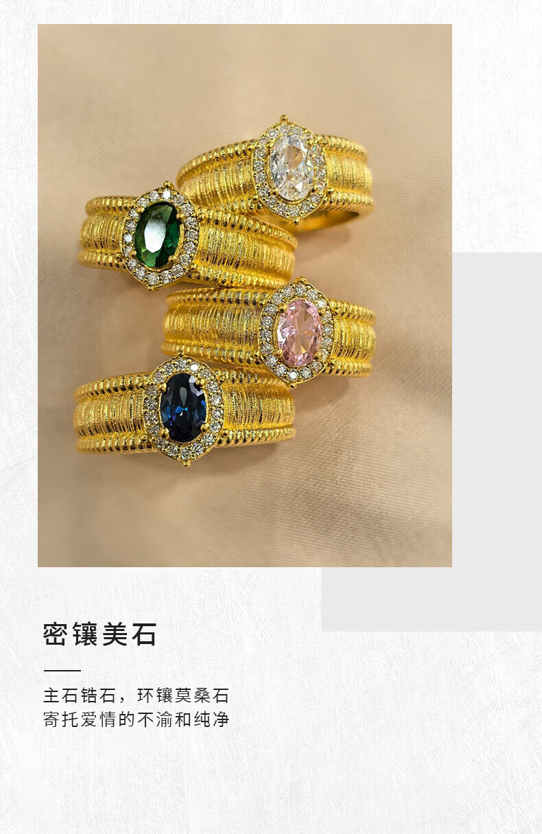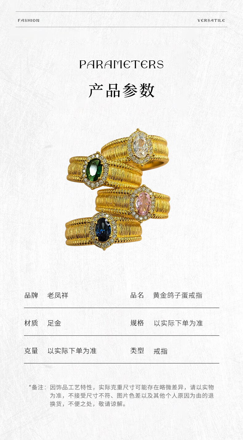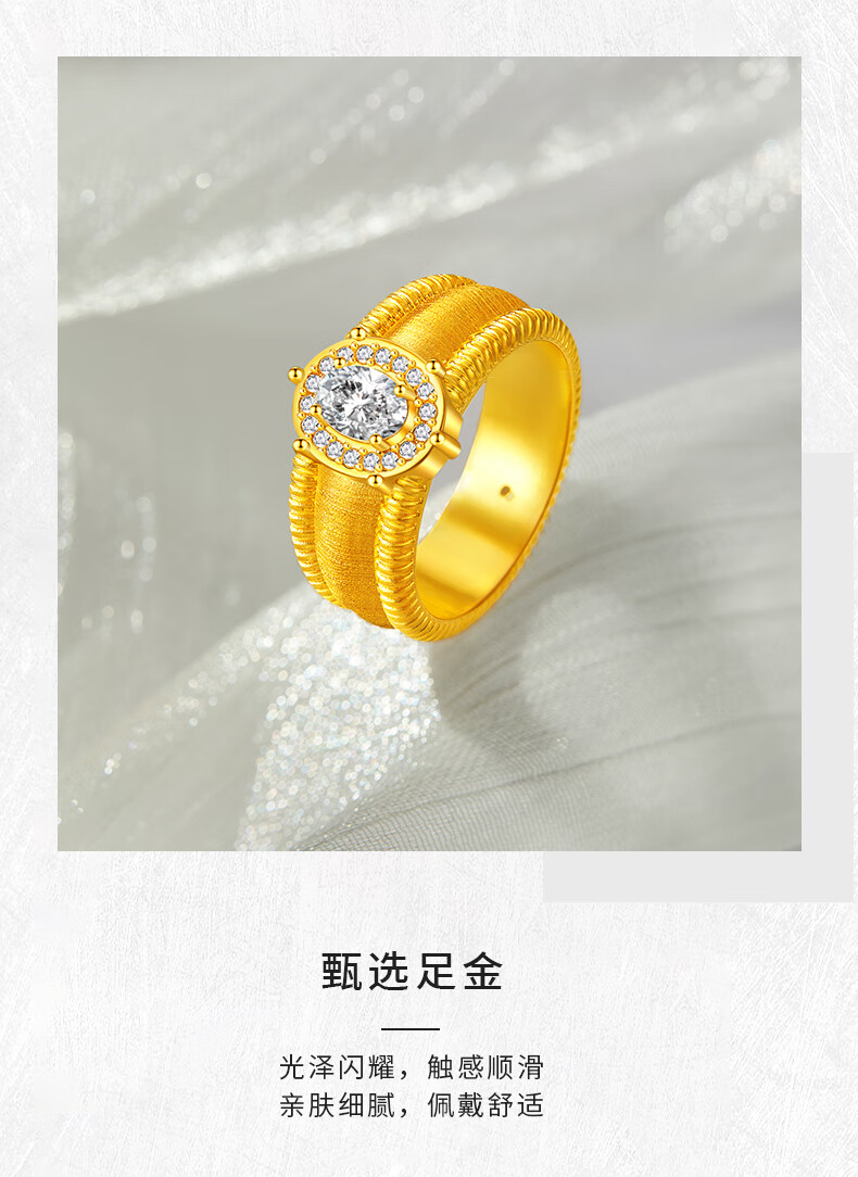Lao Fengxiang pigeon egg gold ring pure gold retro fashion queen ring for girlfriend and wife anniversary birthday gift pink style (#14-#15) (about 2.28-2.5g)