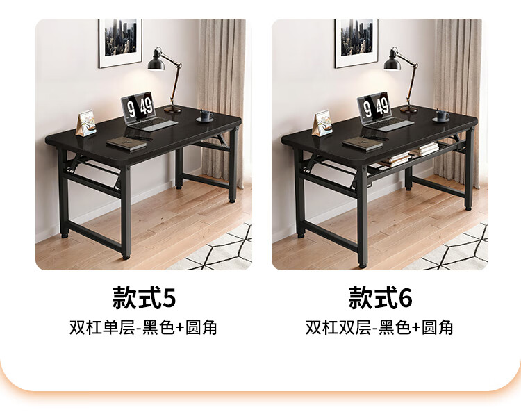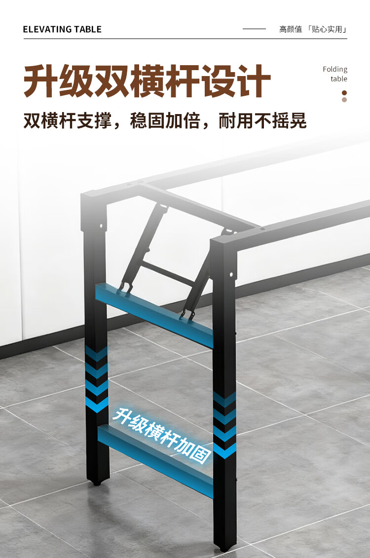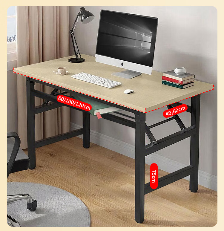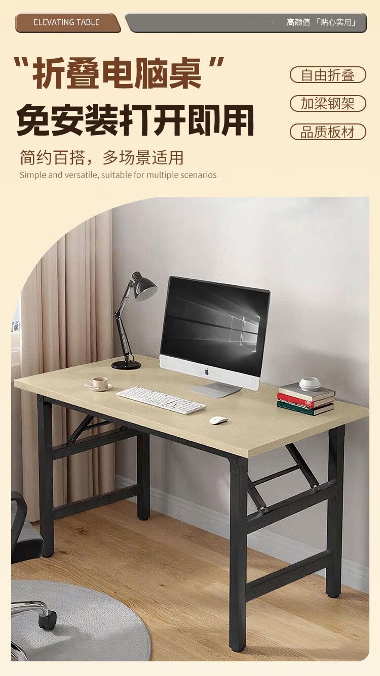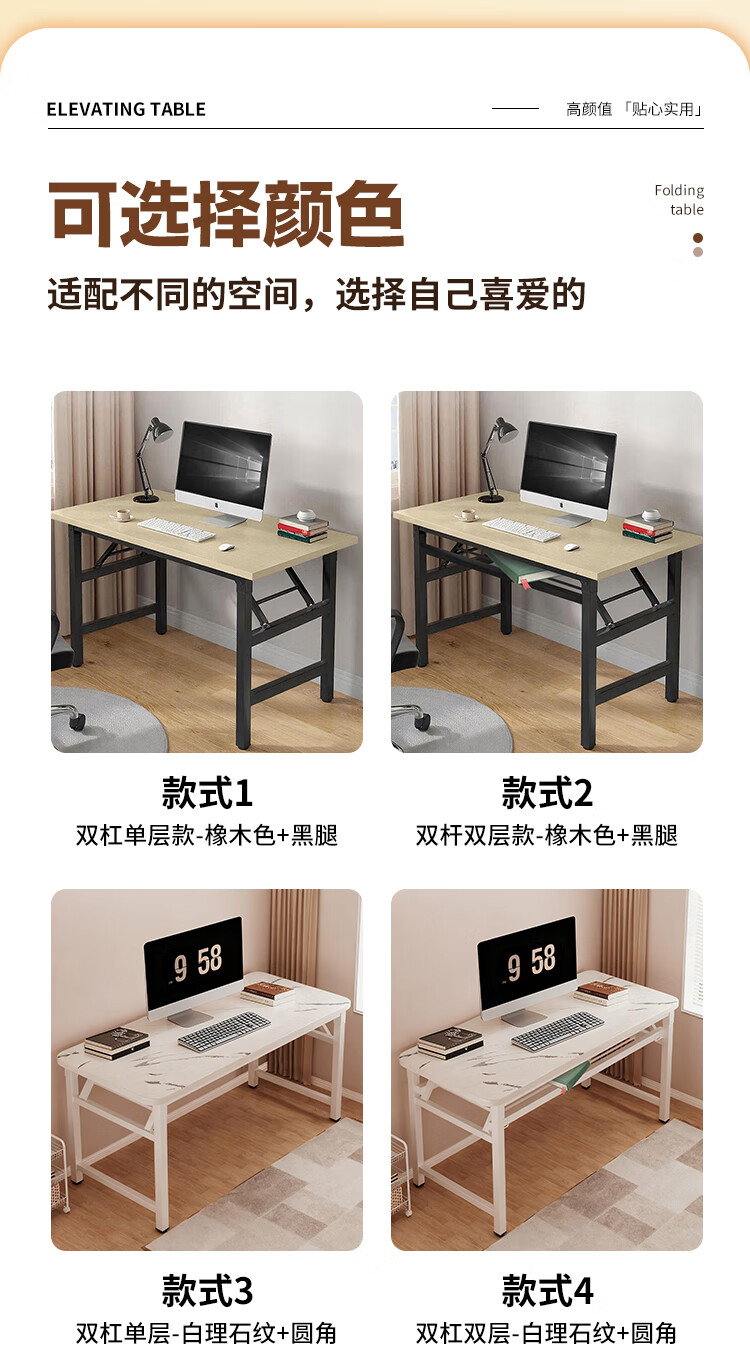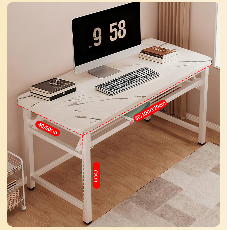 Yiman Folding Computer Desk Office Learning Writing Book Table Training Long Table No Installation Spring Table Jingcang/Bold U Legs/100*60 White Marble Pattern