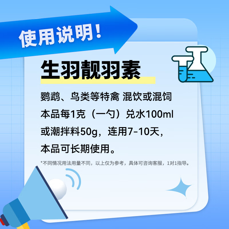 Pre-mixed feed for birds with feather-beautiful ingredients for parrots, birds and other special birds. 1 bottle of feather-beautiful ingredients for birds (20g/bottle)