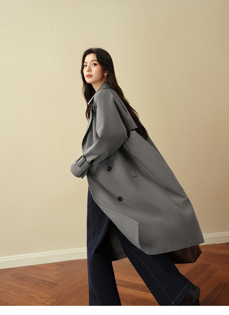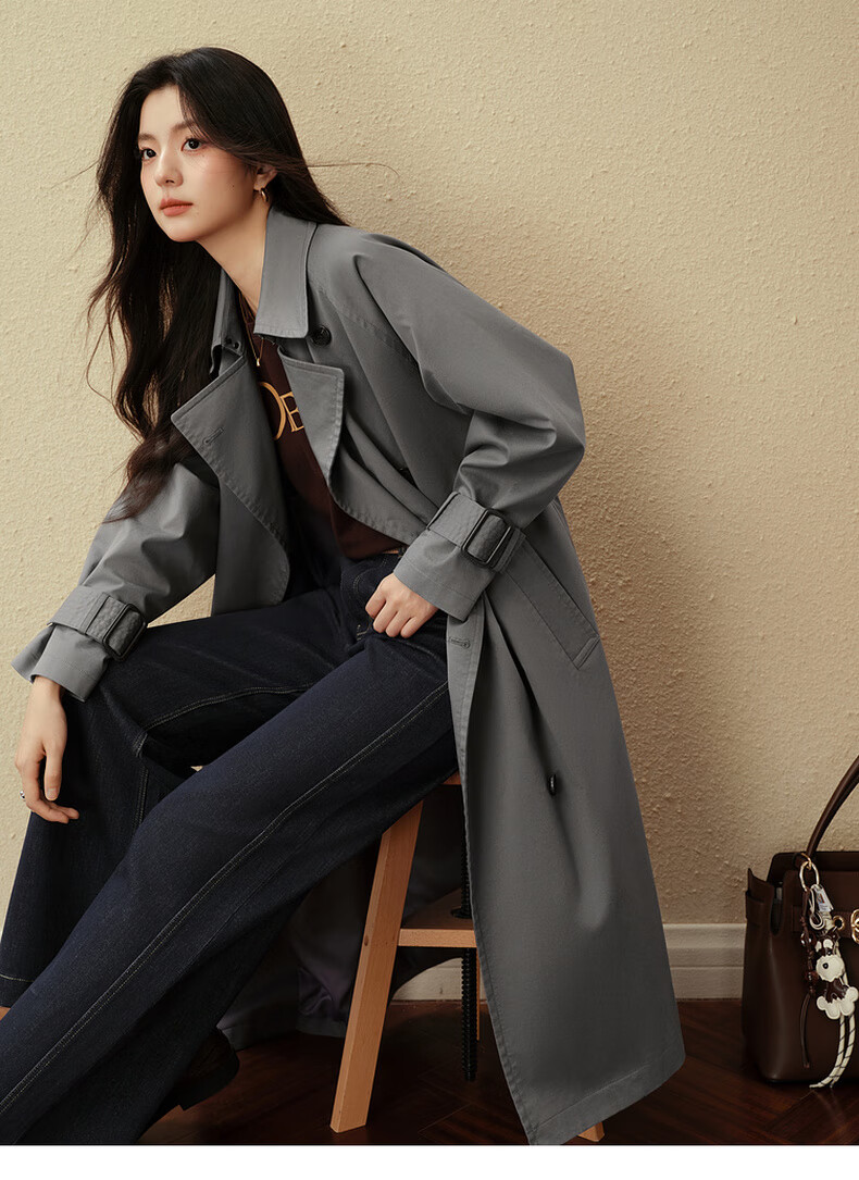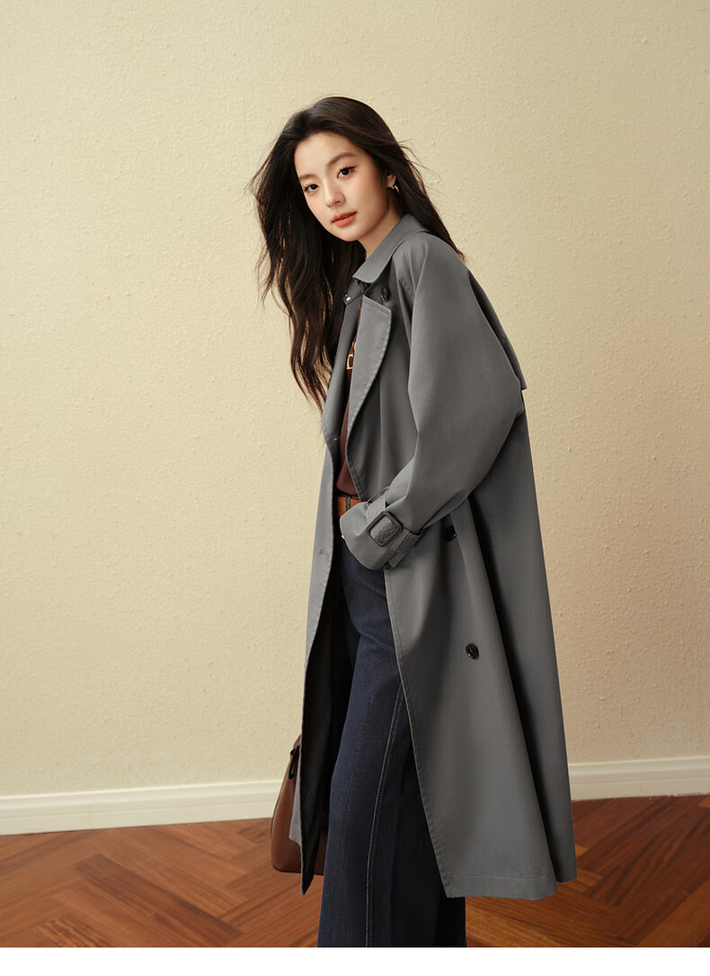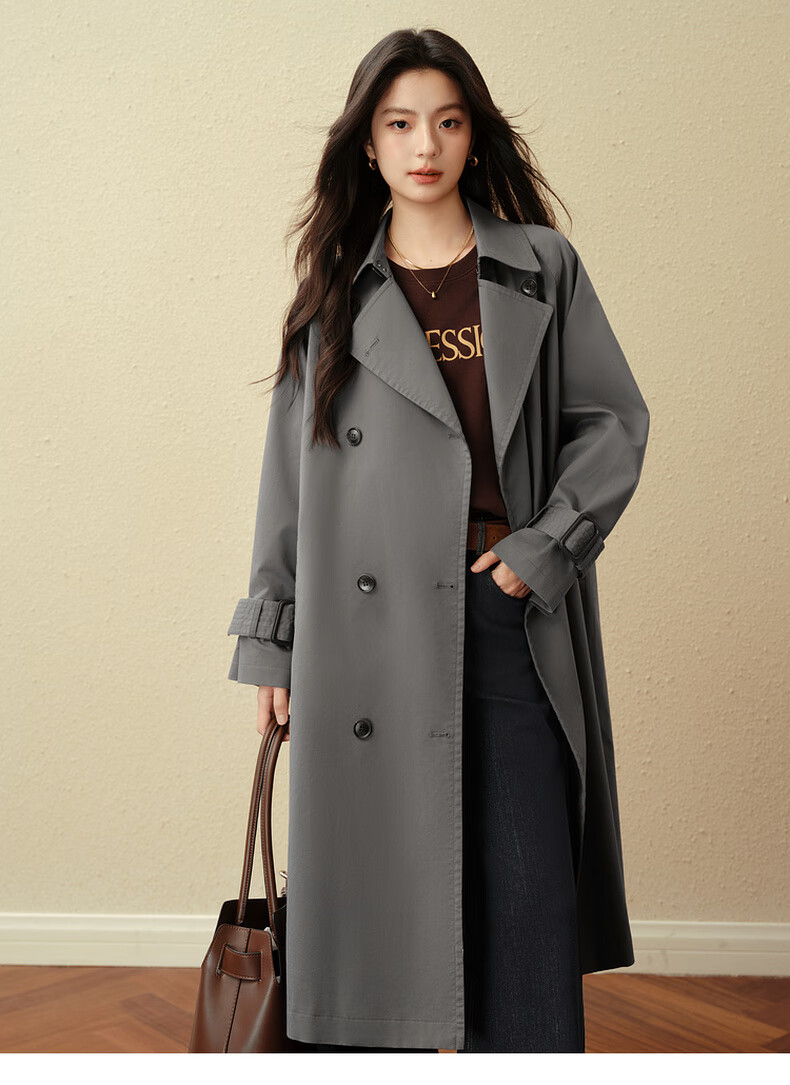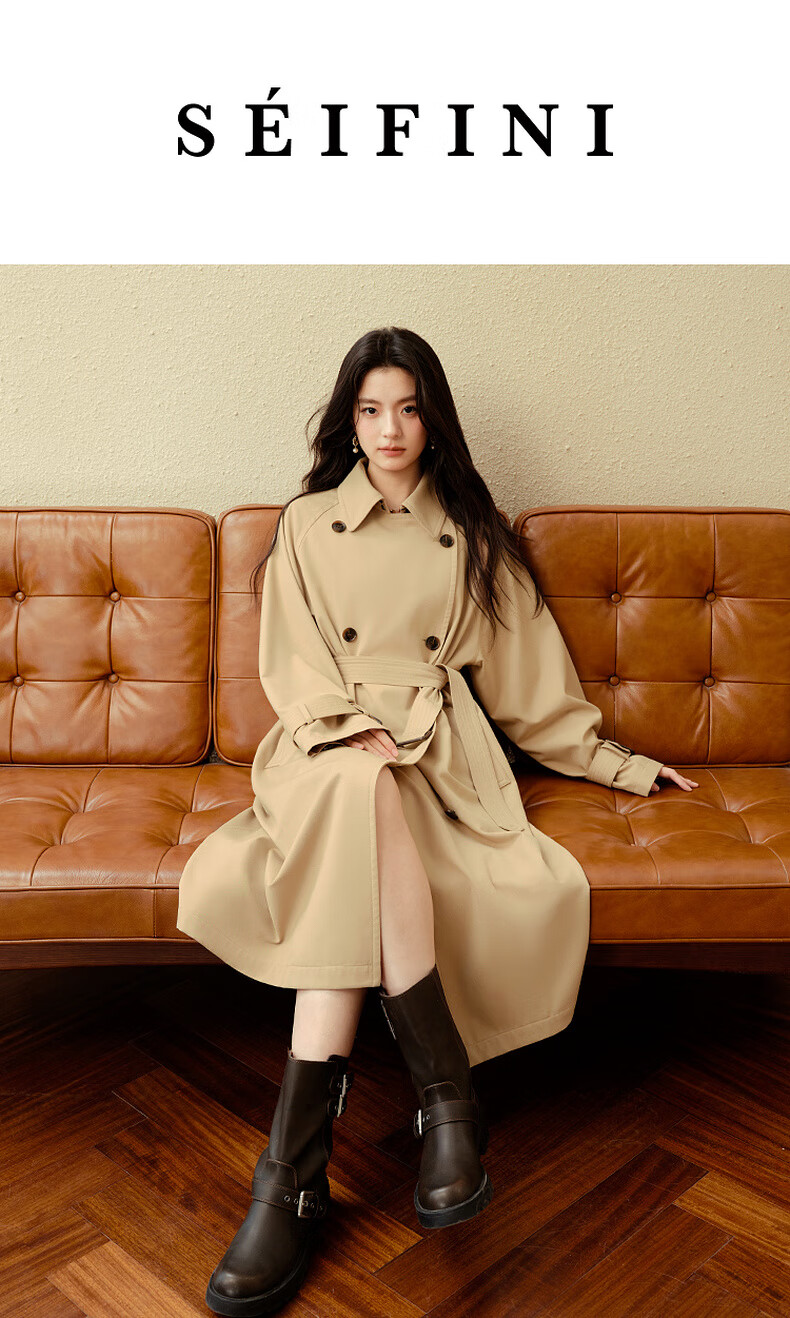 SEIFINI long-term windbreaker classic double-breasted high-end British style mid-length coat 25 autumn gray long M