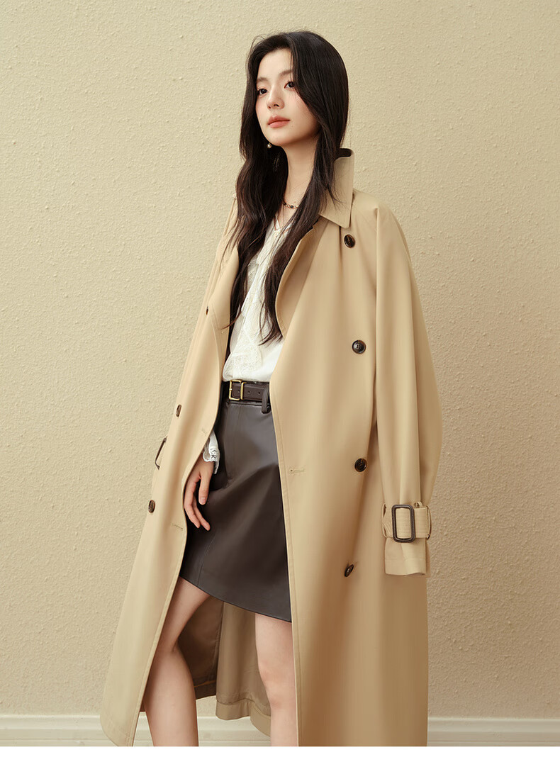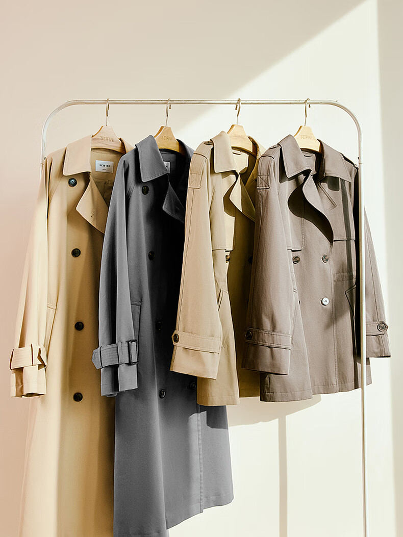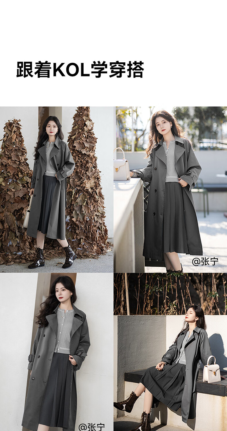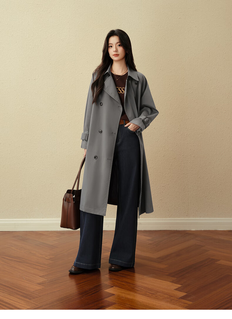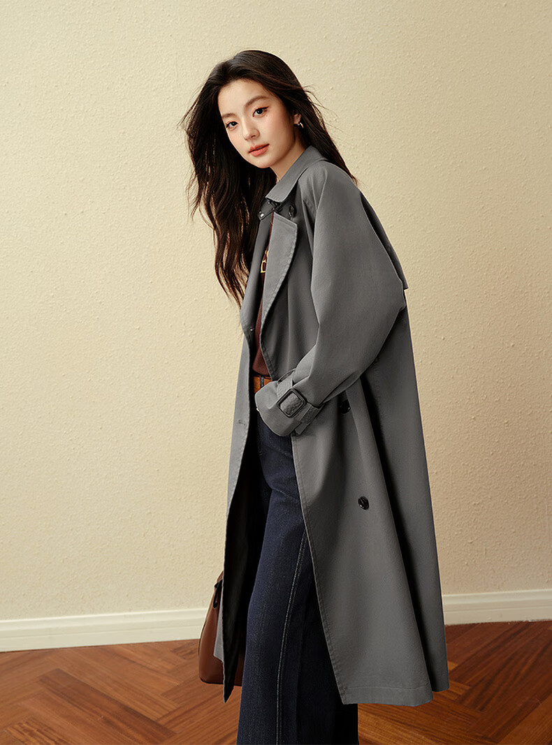 SEIFINI long-term windbreaker classic double-breasted high-end British style mid-length coat 25 autumn gray long M