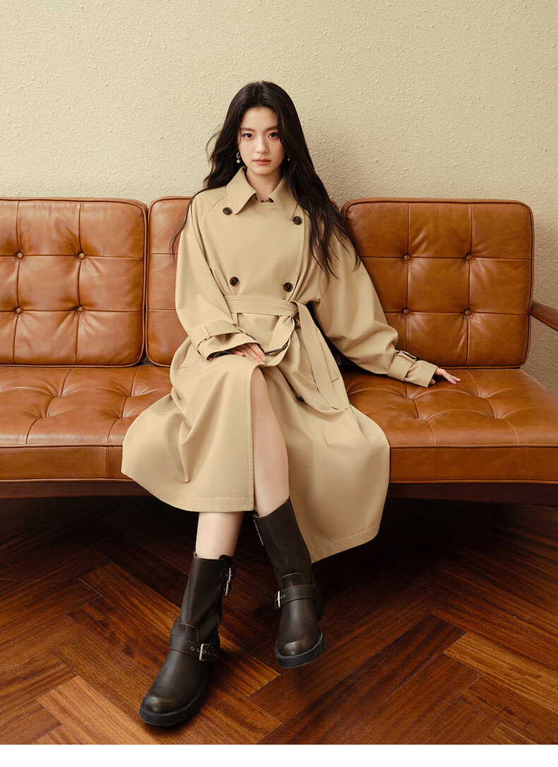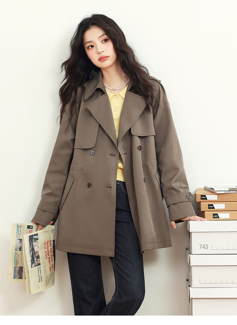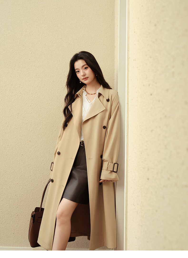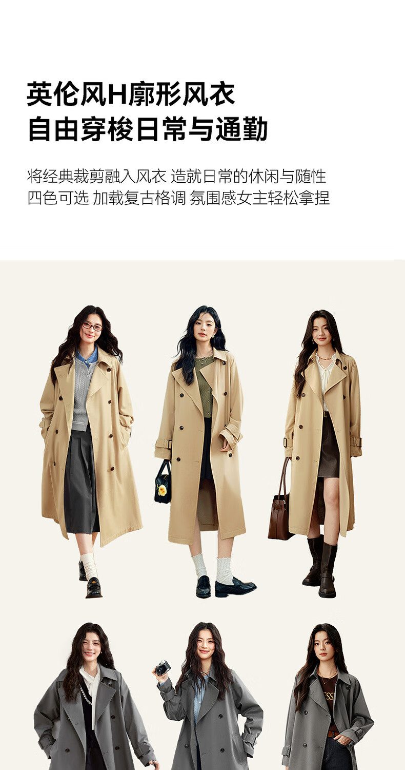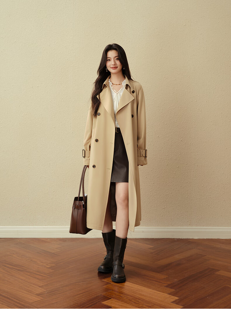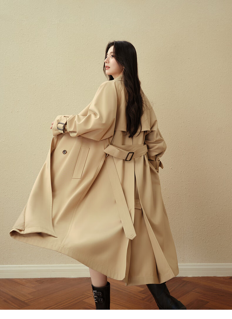 SEIFINI long-term windbreaker classic double-breasted high-end British style mid-length coat 25 autumn gray long M