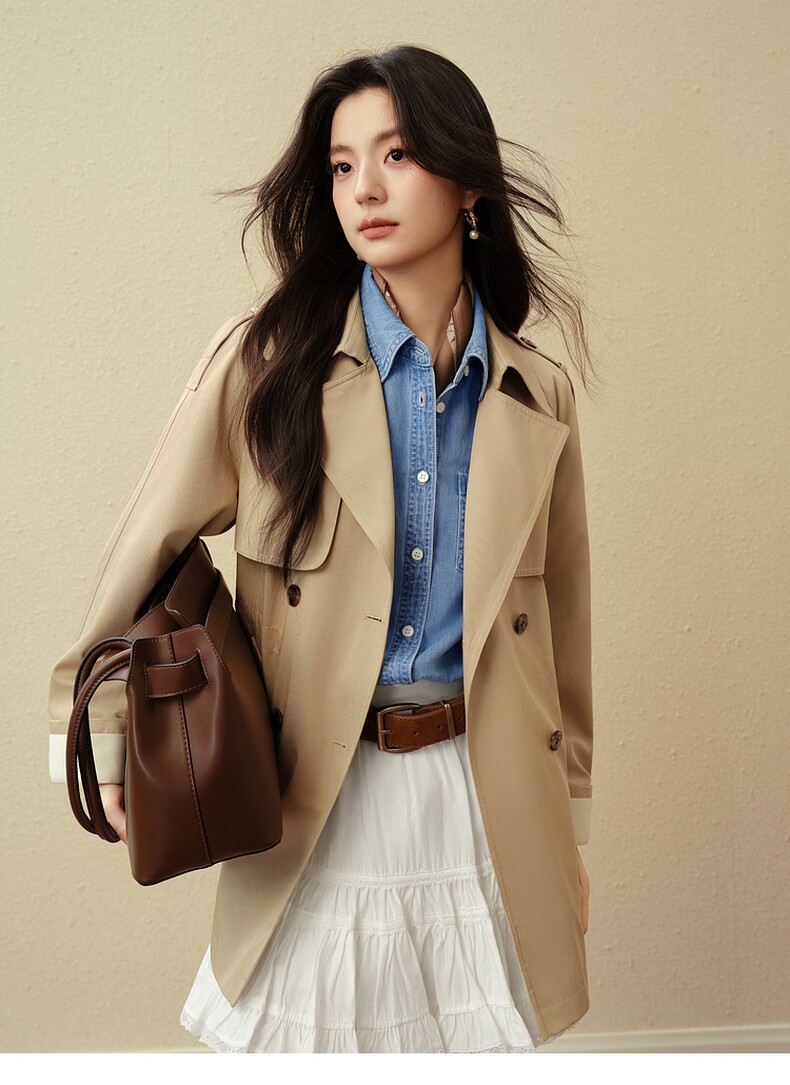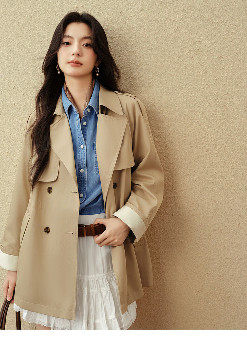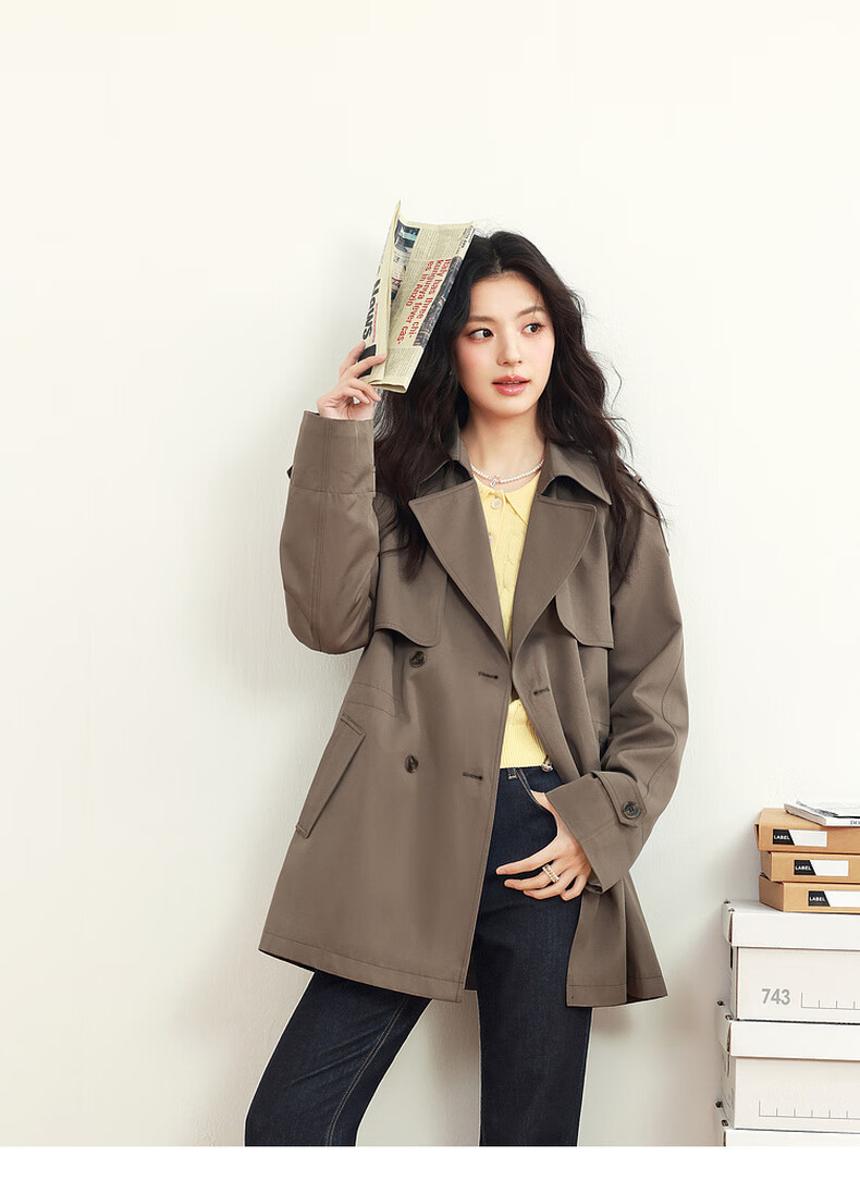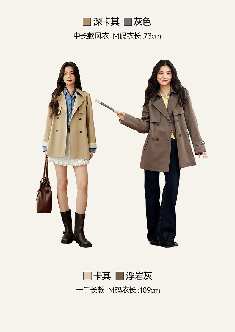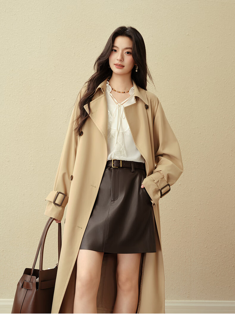 SEIFINI long-term windbreaker classic double-breasted high-end British style mid-length coat 25 autumn gray long M