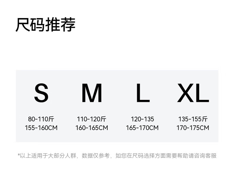 China (cm) 165 / 88-90 170 / 96-98 175 / 108-110 180 / 118-122 185 / 126-130