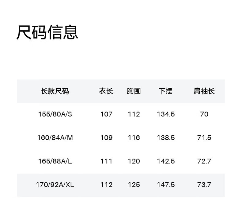 China (cm) 160-165/84-86 165-170 / 88-90 167-172 / 92-96 168-173 / 98-102 170-176 / 106-110