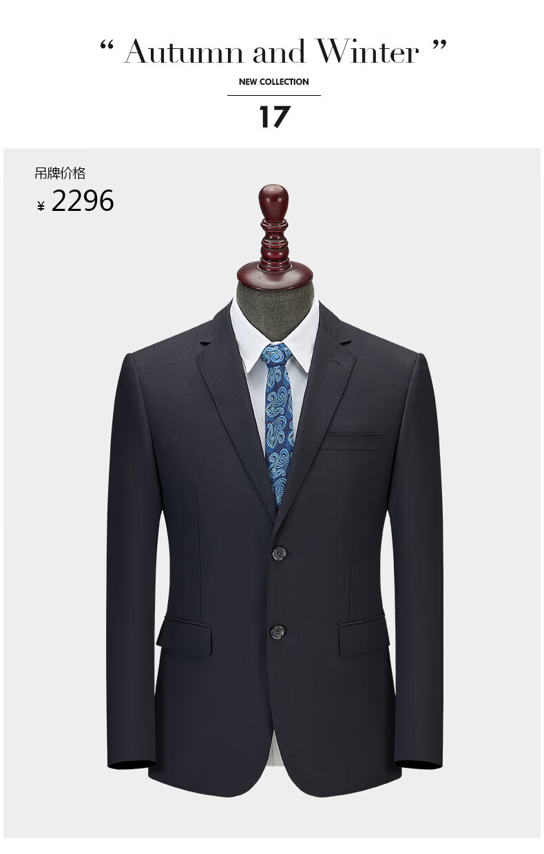 Jijia broken code worsted 97% wool suit top anti-wrinkle business formal single suit men's wool navy blue 165B
