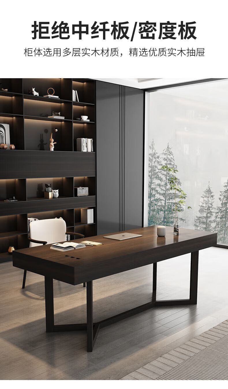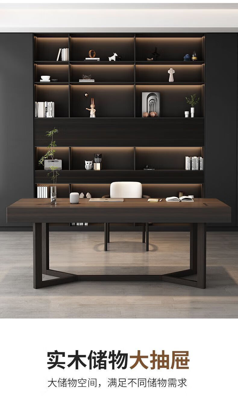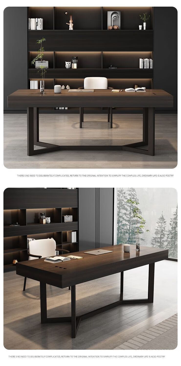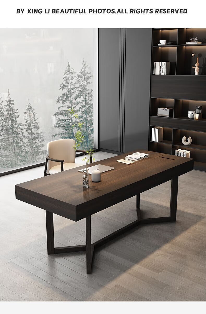 Italian light luxury desk home living room smoked wood desk simple modern Nordic double writing desk customized 120*60*75 black oak