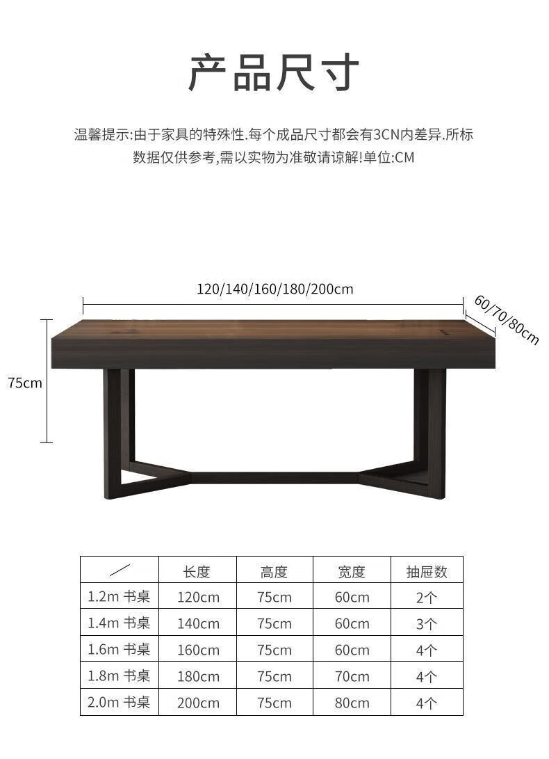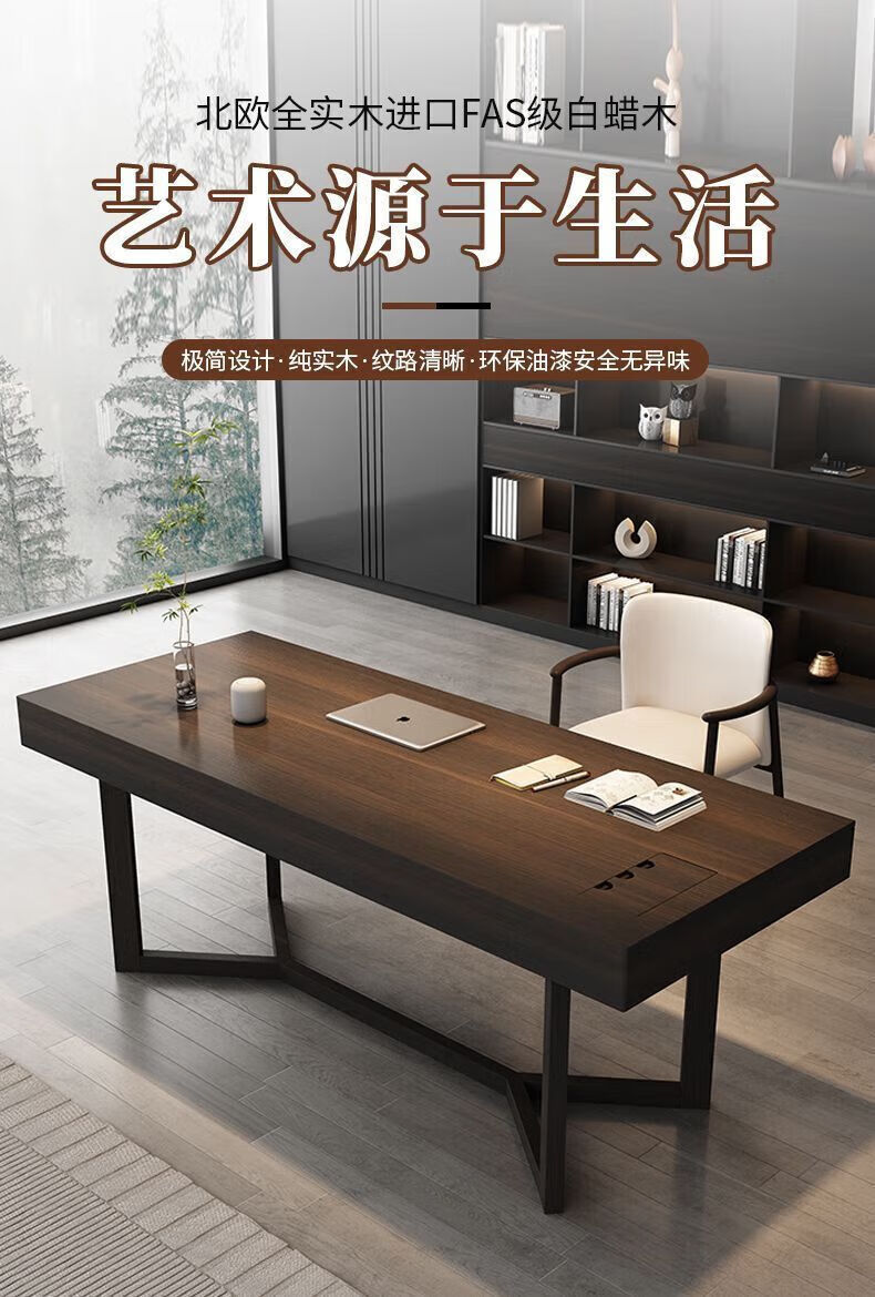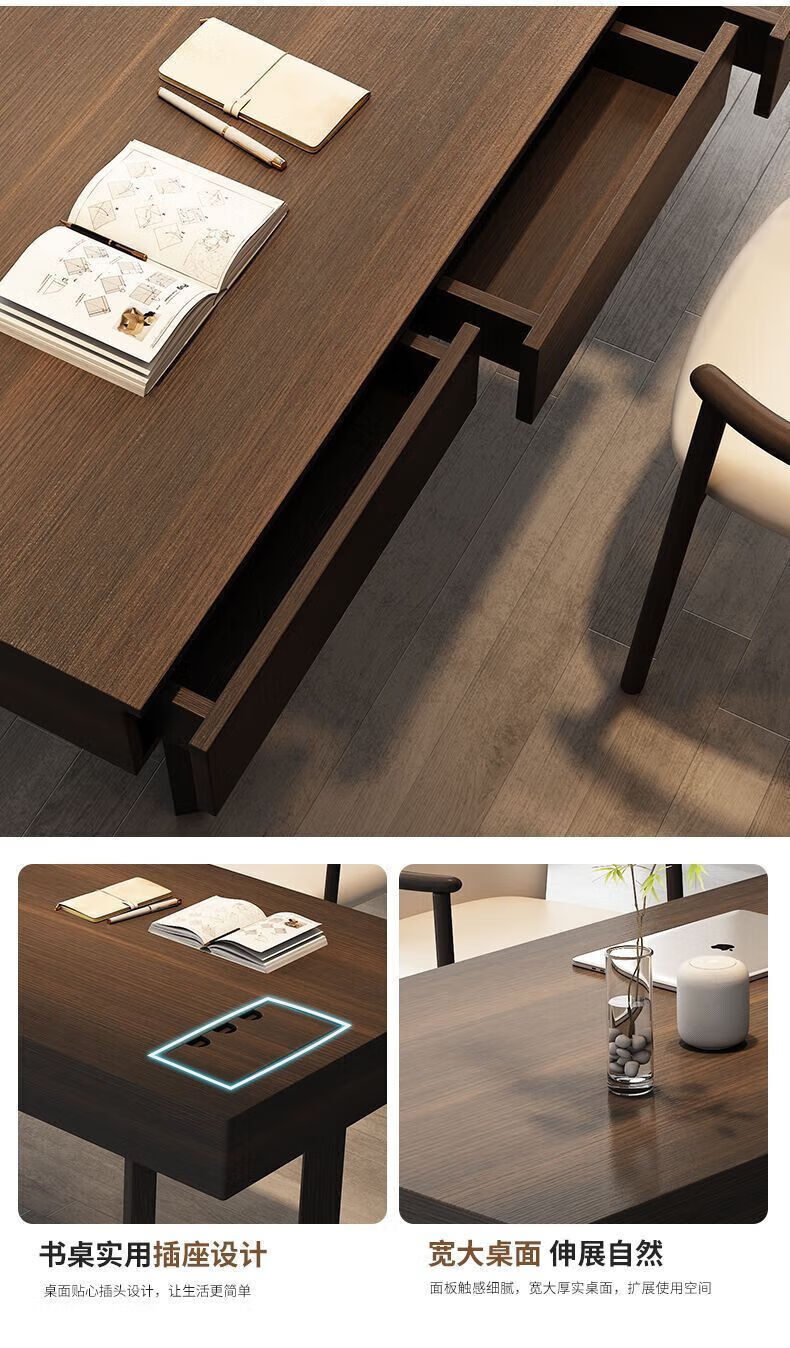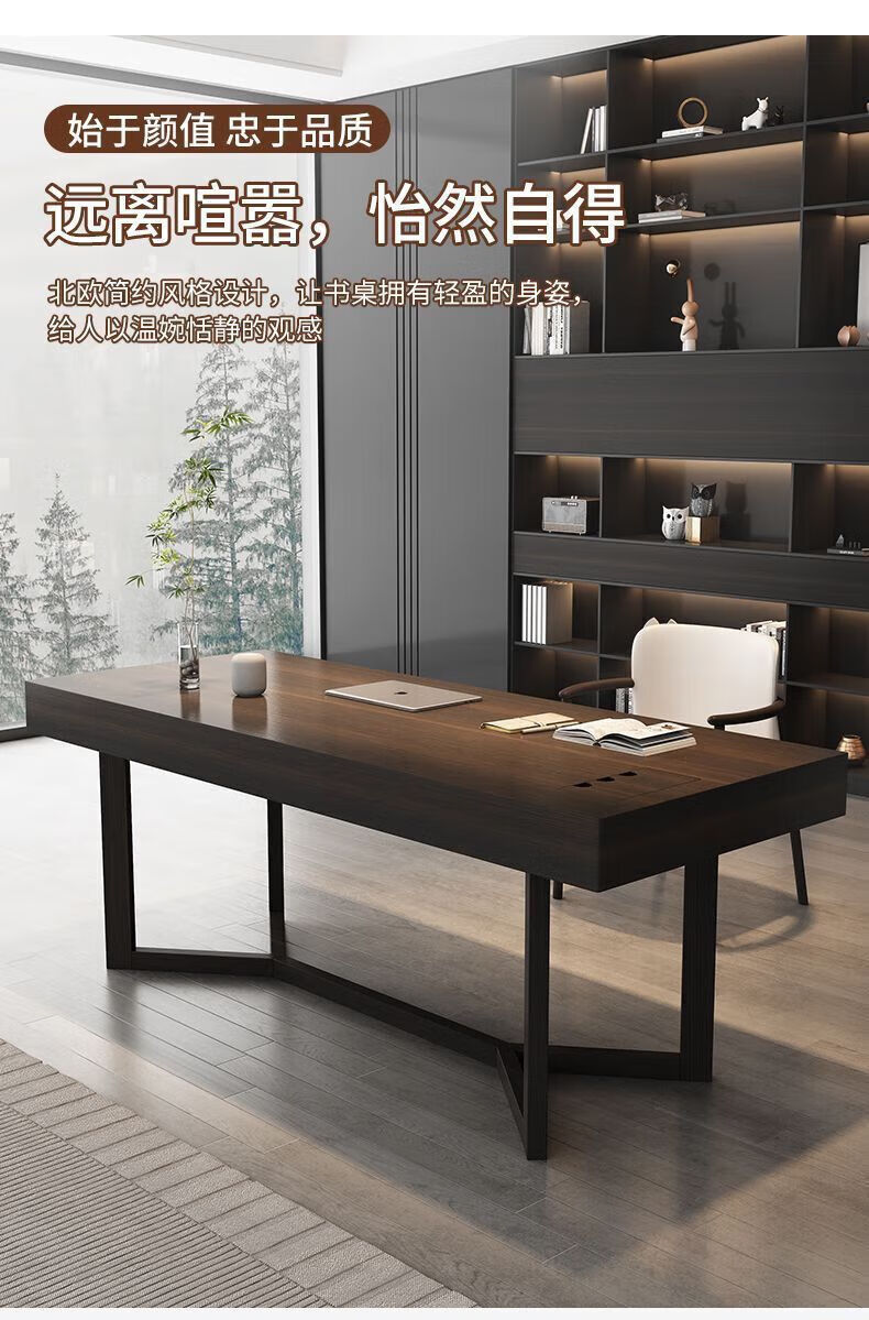 Italian light luxury desk home living room smoked wood desk simple modern Nordic double writing desk customized 120*60*75 black oak