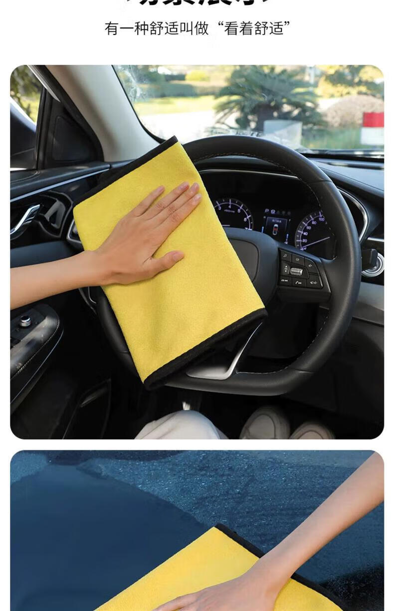 Car washing towel, car wiping cloth, special towel that does not leave watermarks, thickens, absorbs water and does not shed lint, plus size car rag tool 30*30 double-sided thickening, 1 pack, larger and thicker