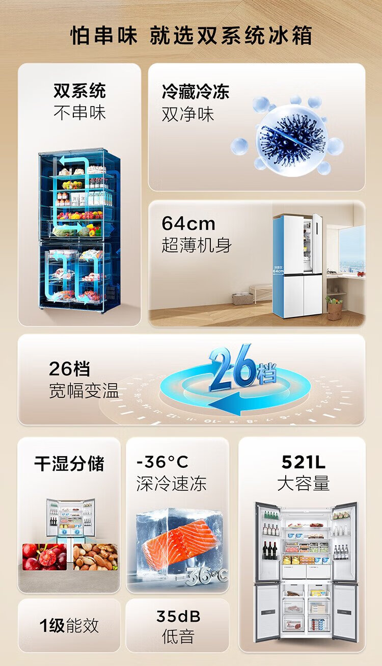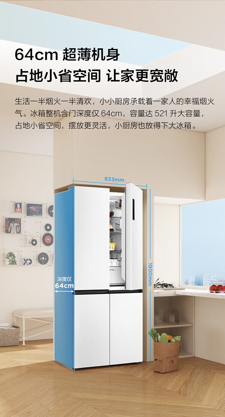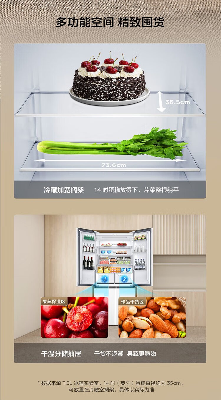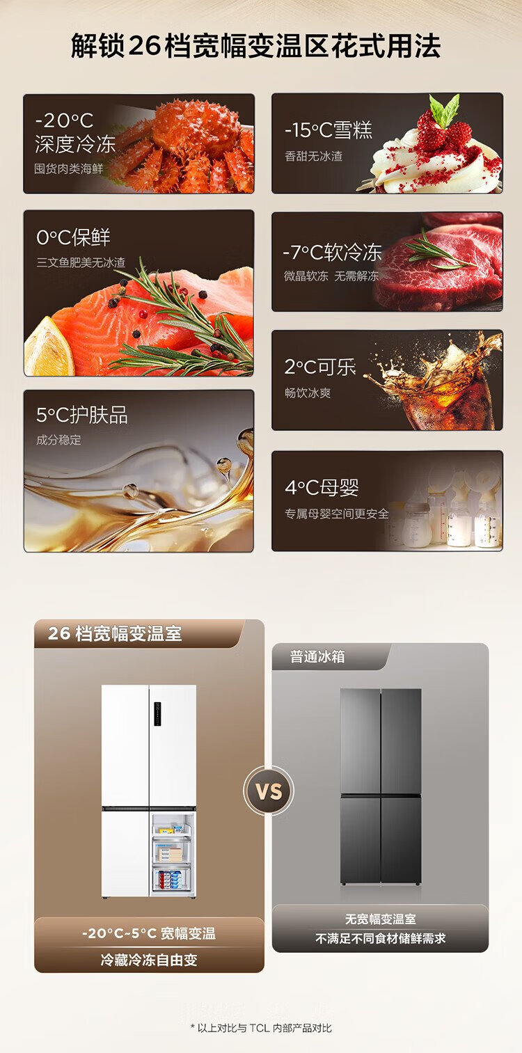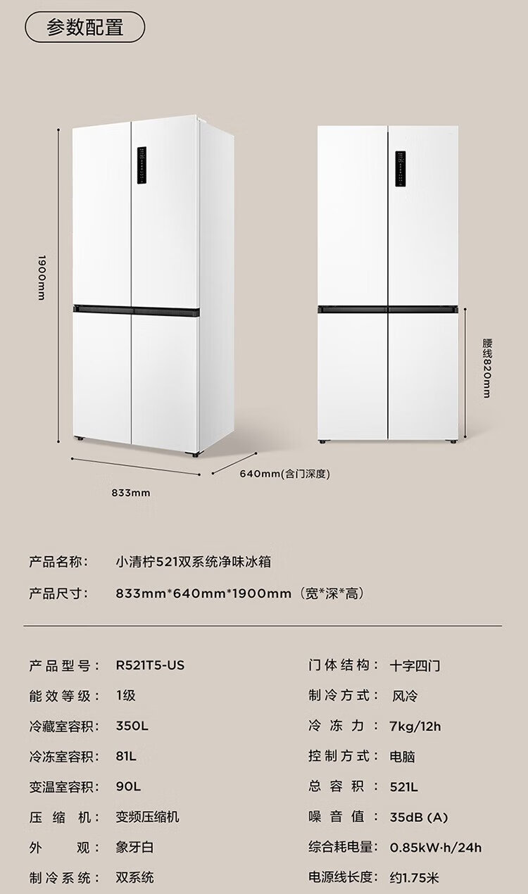 TCL Xiaoqingning 521 liter cross-opening four-door dual-system dual-purity large-capacity wide-width variable-temperature refrigerator household refrigerator first-class energy-efficiency frequency conversion old-for-new R521T5-US national subsidy