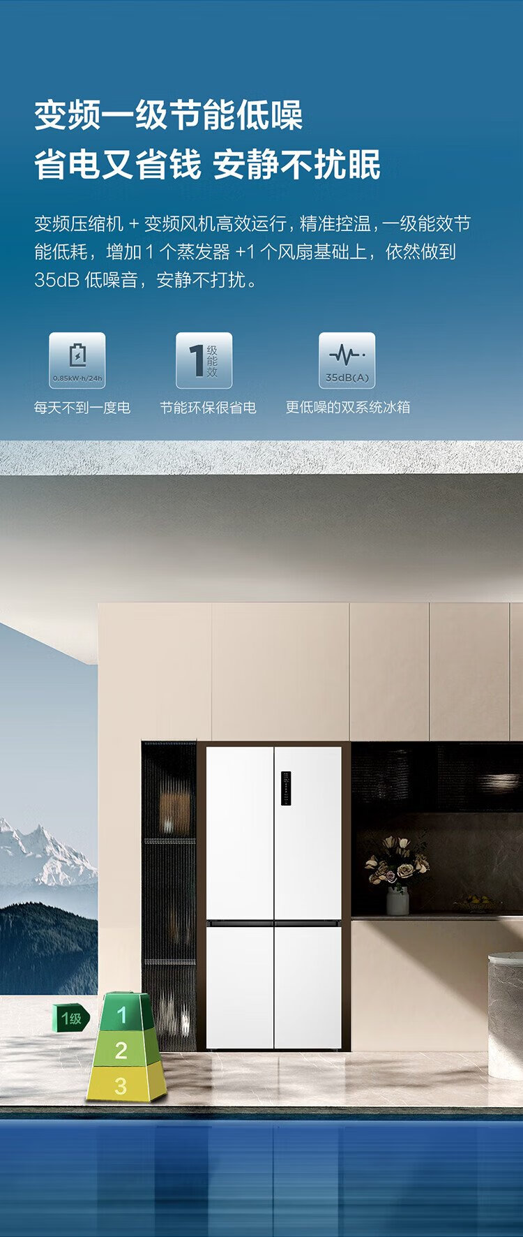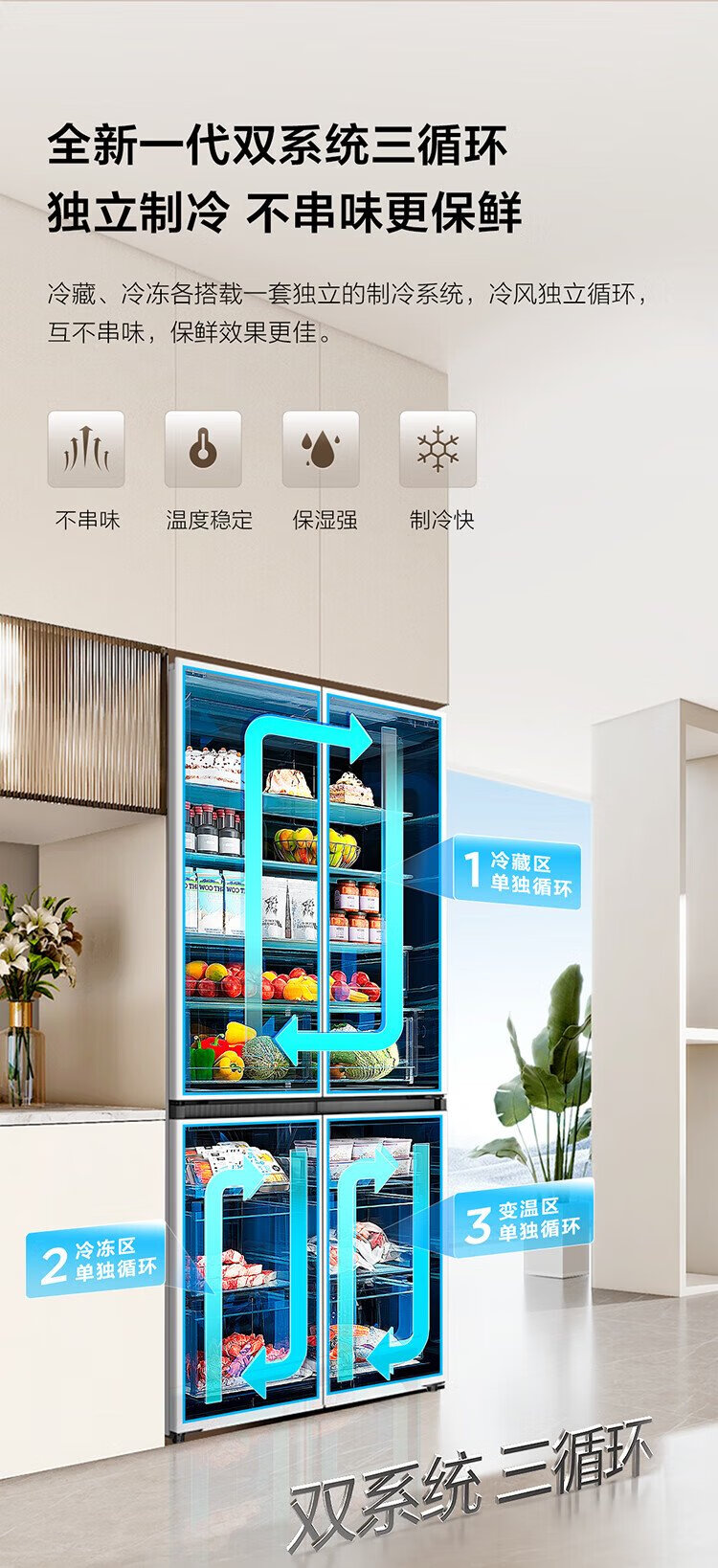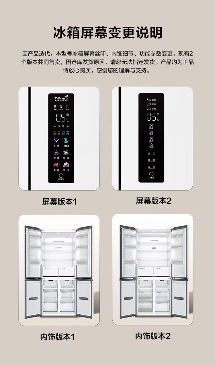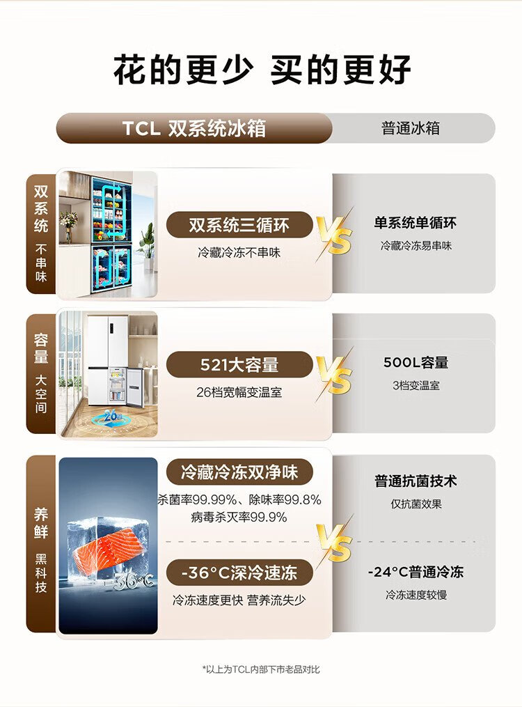 TCL Xiaoqingning 521 liter cross-opening four-door dual-system dual-purity large-capacity wide-width variable-temperature refrigerator household refrigerator first-class energy-efficiency frequency conversion old-for-new R521T5-US national subsidy
