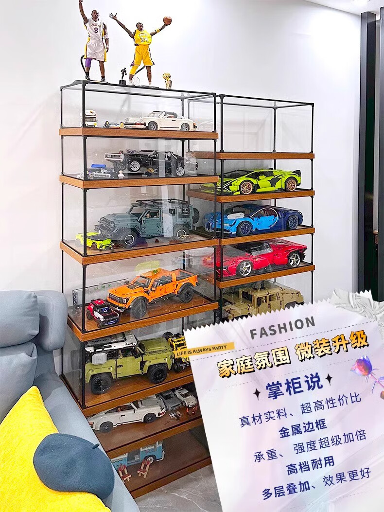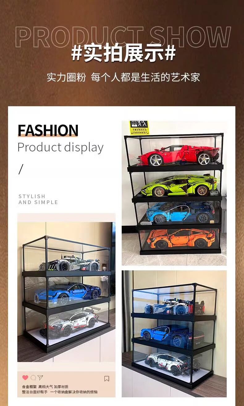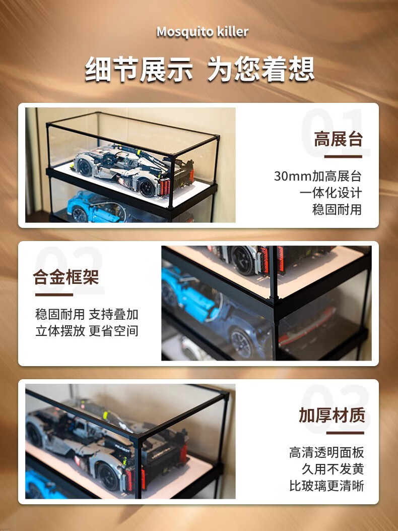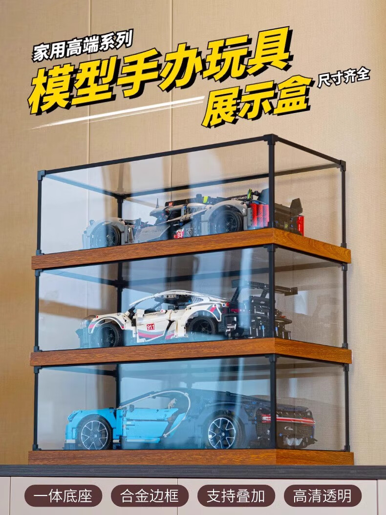 Maternal and infant health suitable for LEGO 42172 McLaren P1 display box alloy frame transparent acrylic storage display cabinet wood grain base 62x31x20cm (model not included)