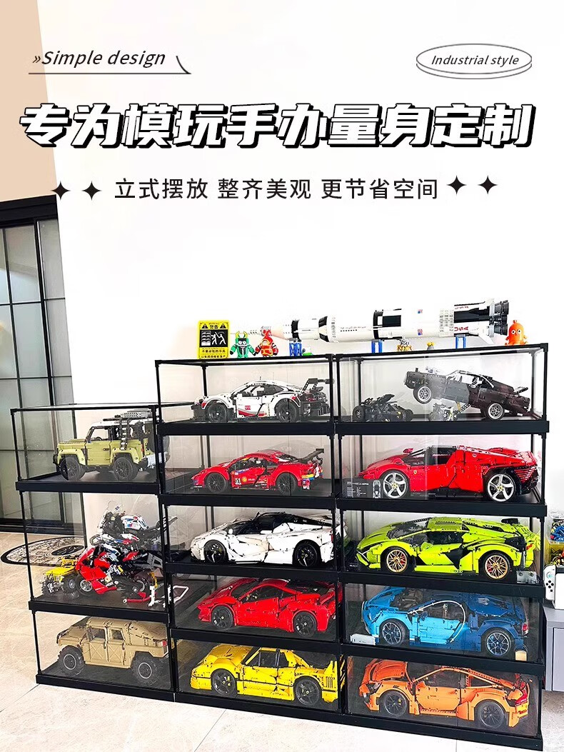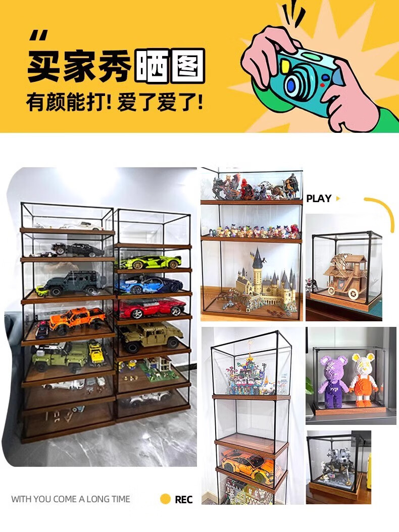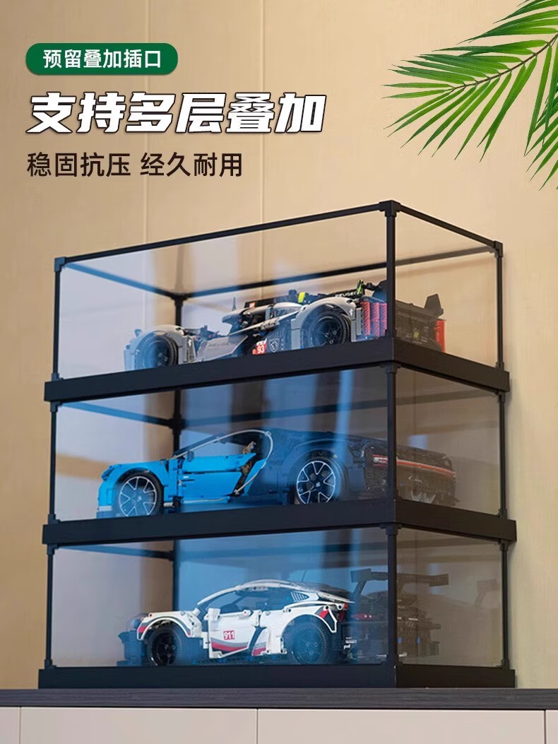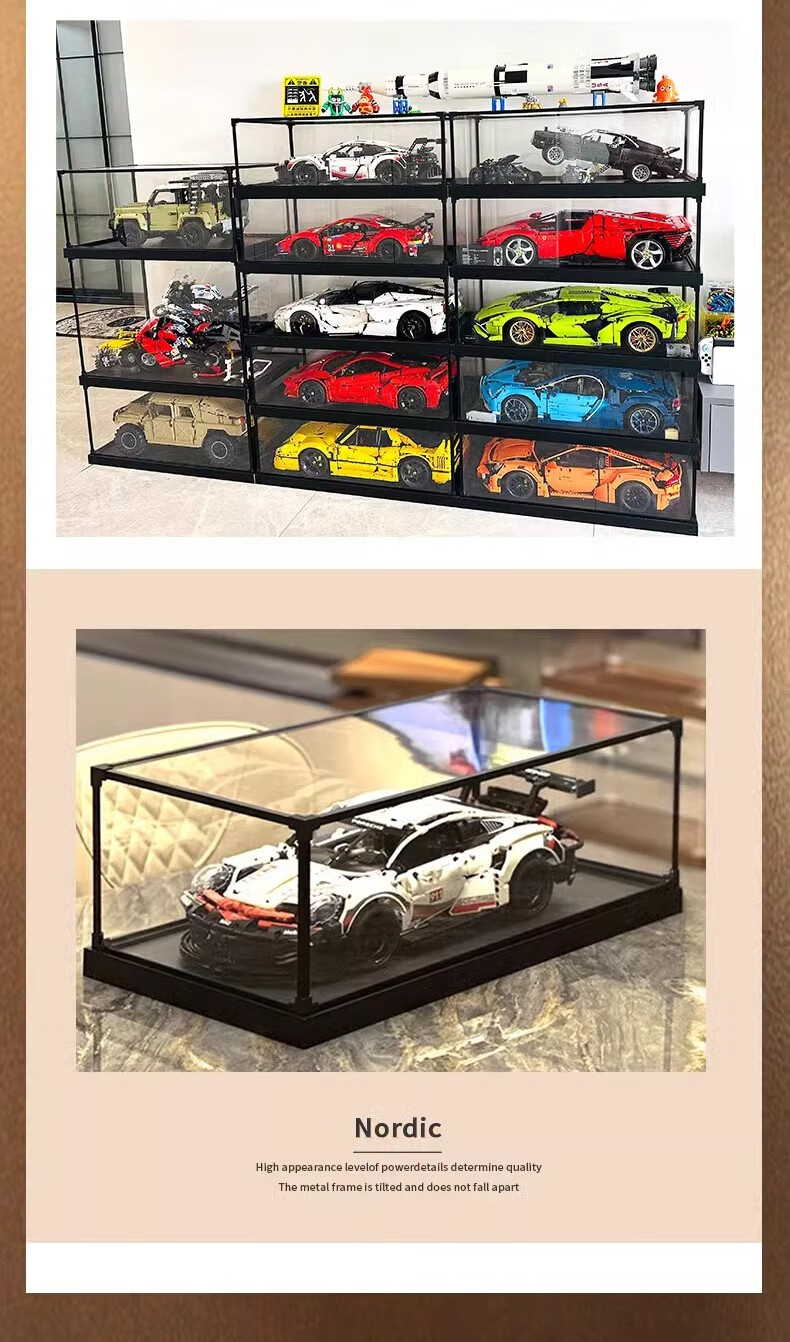 Maternal and infant health suitable for LEGO 42172 McLaren P1 display box alloy frame transparent acrylic storage display cabinet wood grain base 62x31x20cm (model not included)