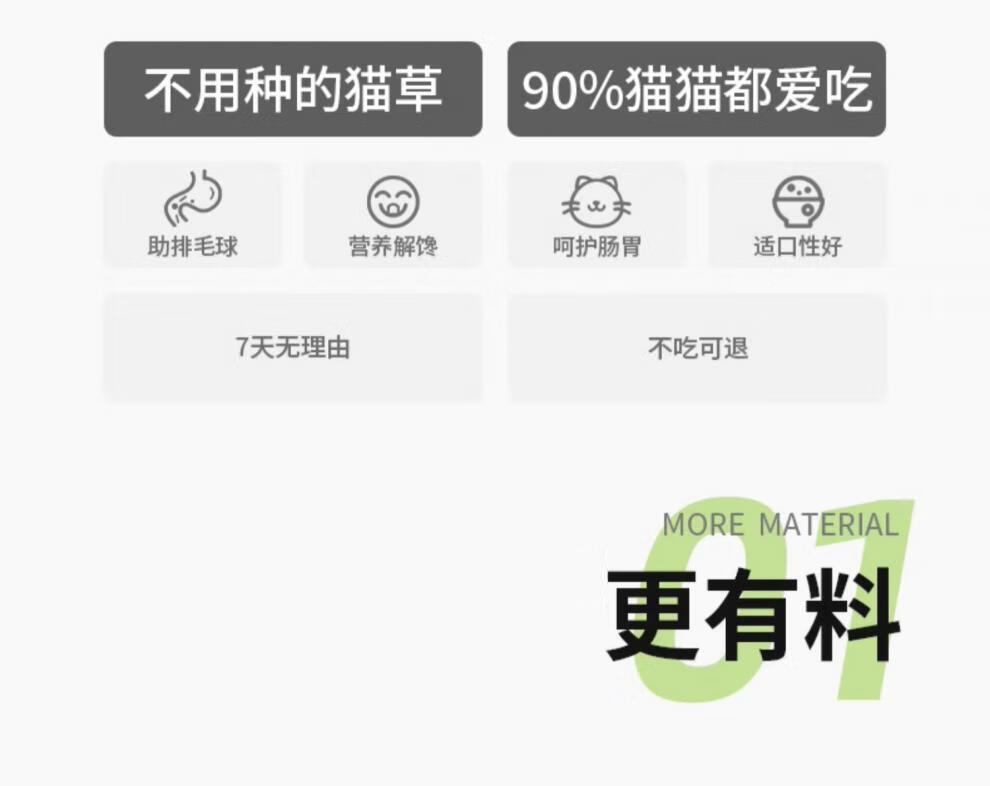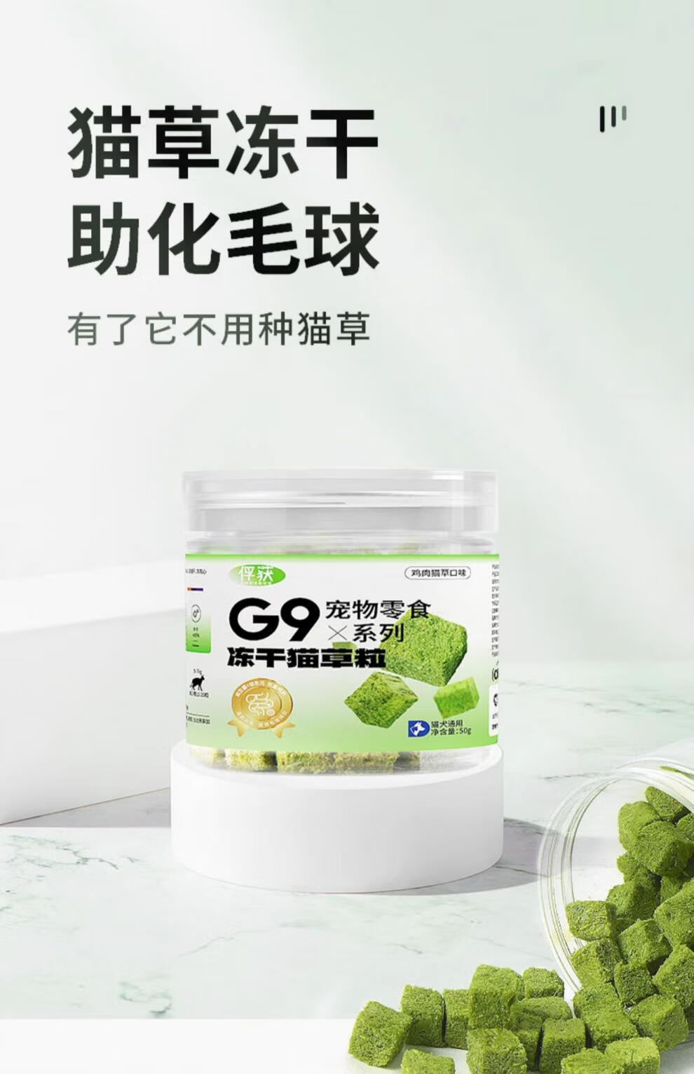 Capture G9 cat grass freeze-dried cat grass granules to aid hair loss, teething cat snacks, biscuits, cat mint and cat grass sticks. Stock up on 12 cans, 1 box, and probiotics in each box.