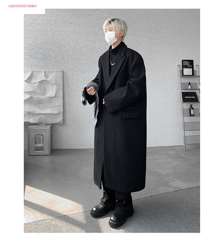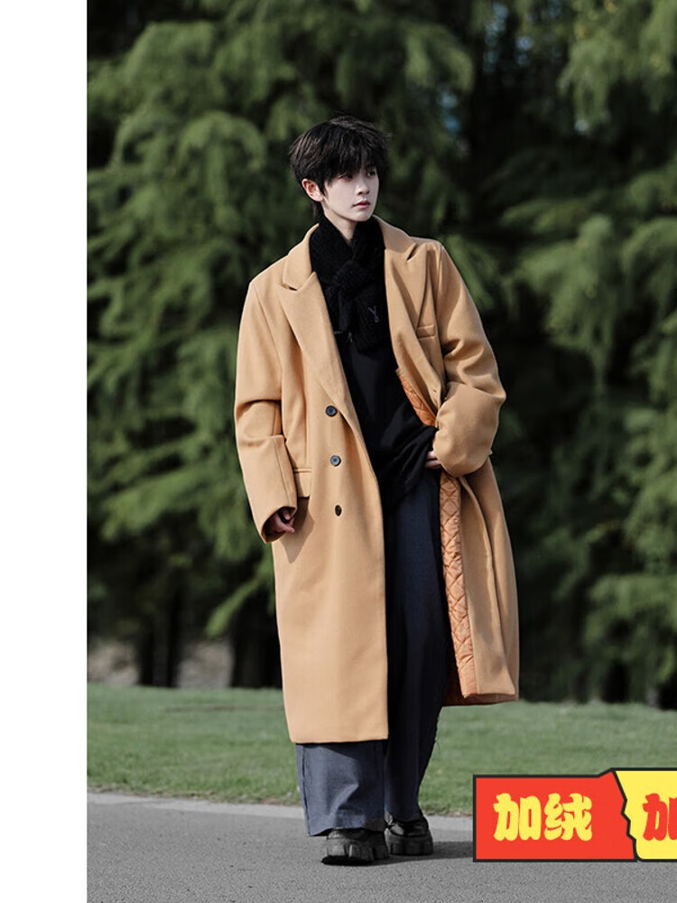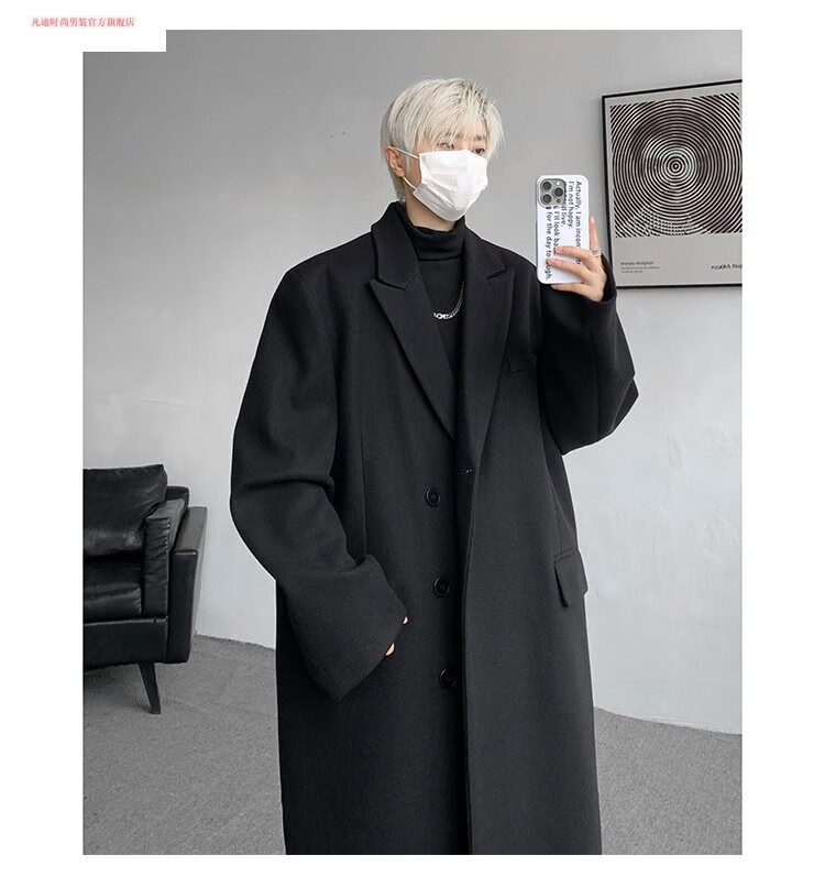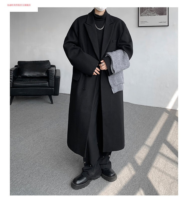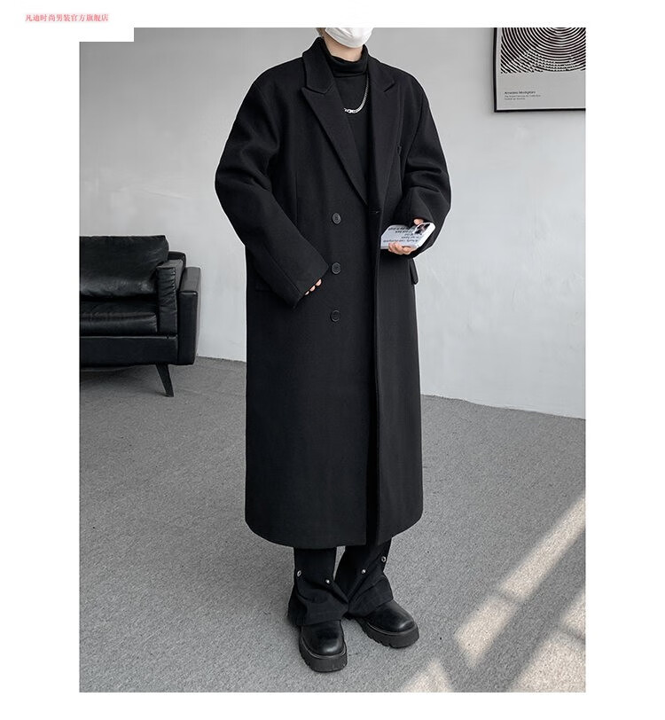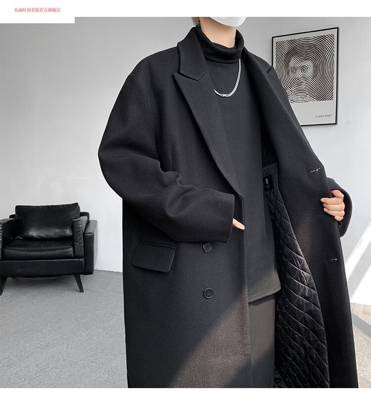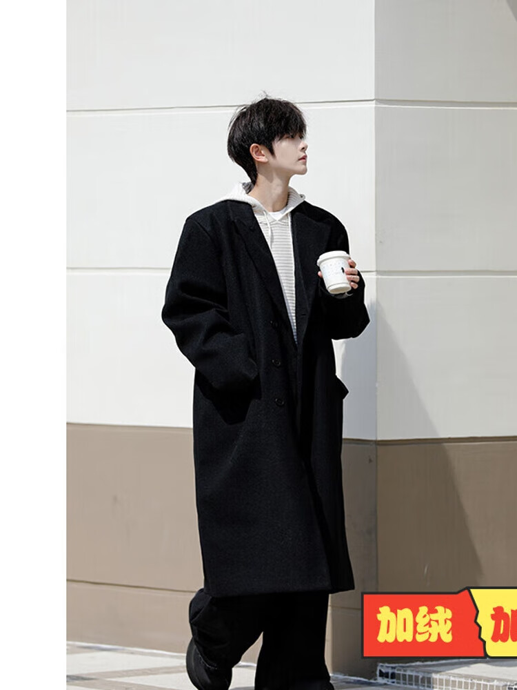 Qingchao Shang 8XL Extra Large Size Windbreaker Men's Spring and Autumn Korean Style Loose Long Woolen Coat Men's Fashion 300Jin Jin is equal to 0.5kg Youth Jacket Black and Cotton 8XL Recommended 265-290Jin Jin is equal to 0.5kg