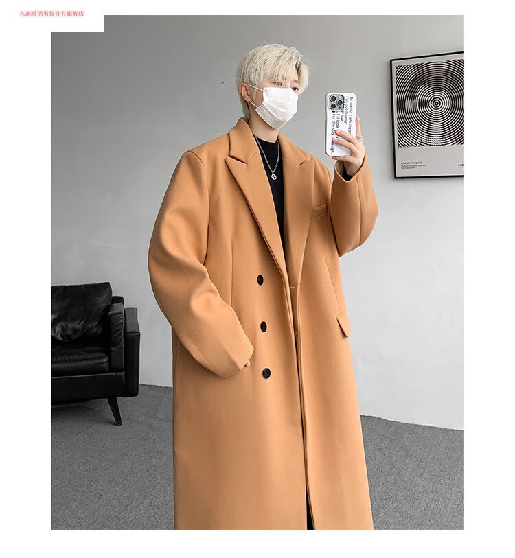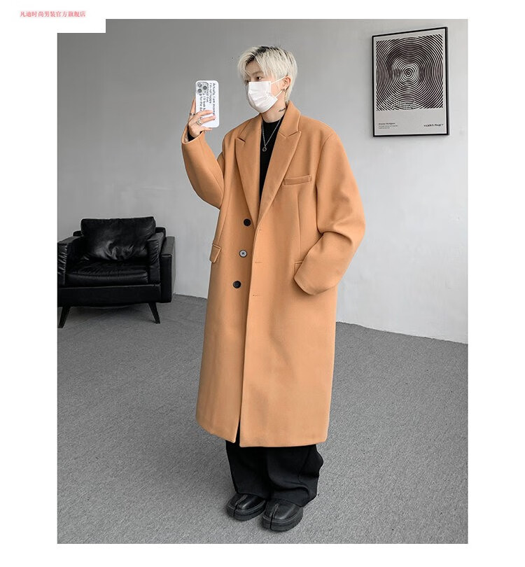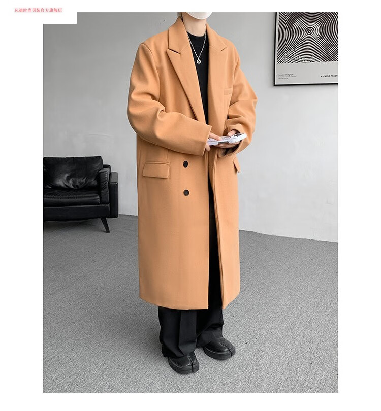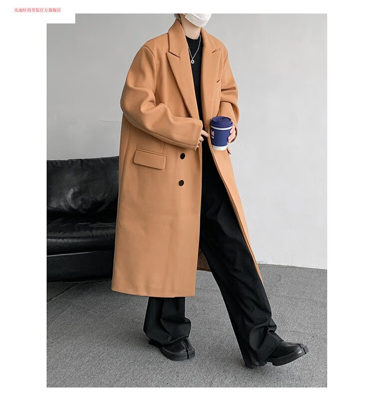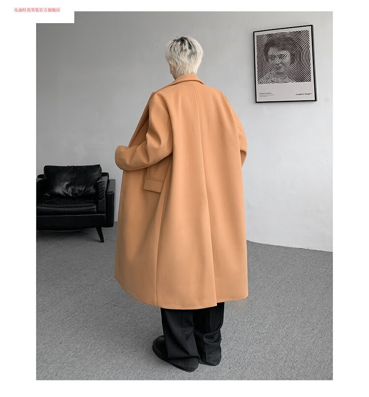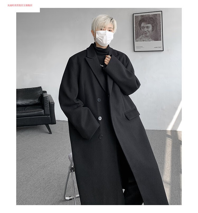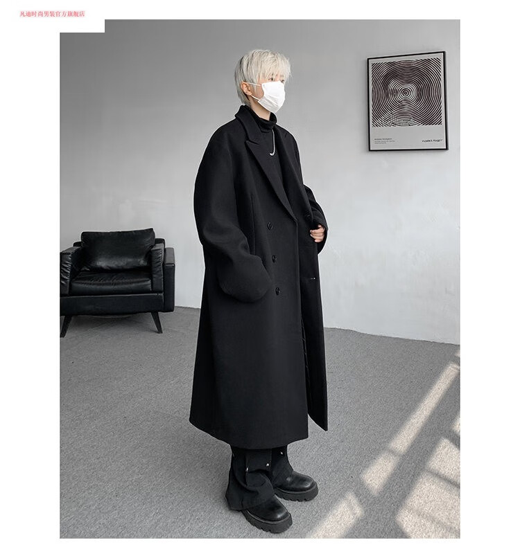 Qingchao Shang 8XL Extra Large Size Windbreaker Men's Spring and Autumn Korean Style Loose Long Woolen Coat Men's Fashion 300Jin Jin is equal to 0.5kg Youth Jacket Black and Cotton 8XL Recommended 265-290Jin Jin is equal to 0.5kg