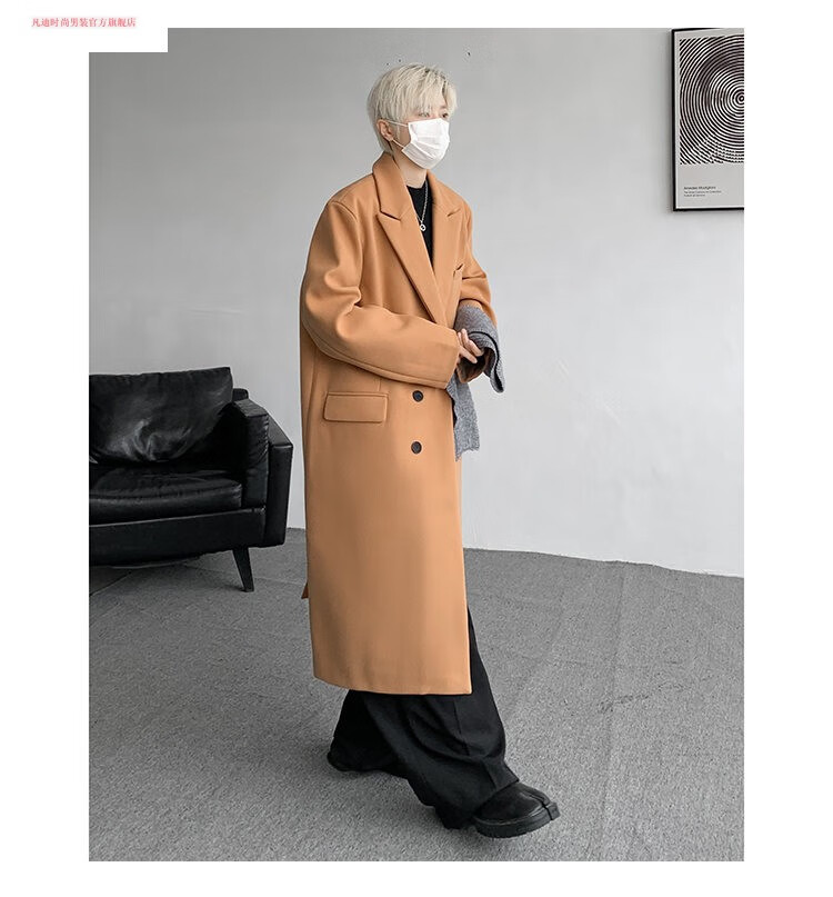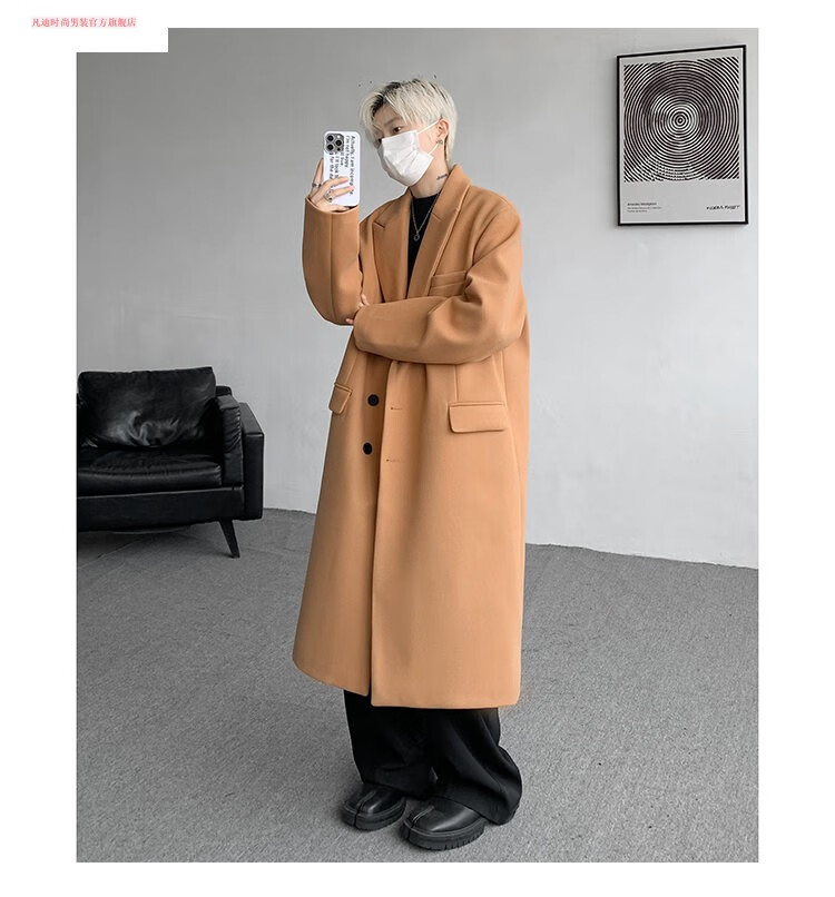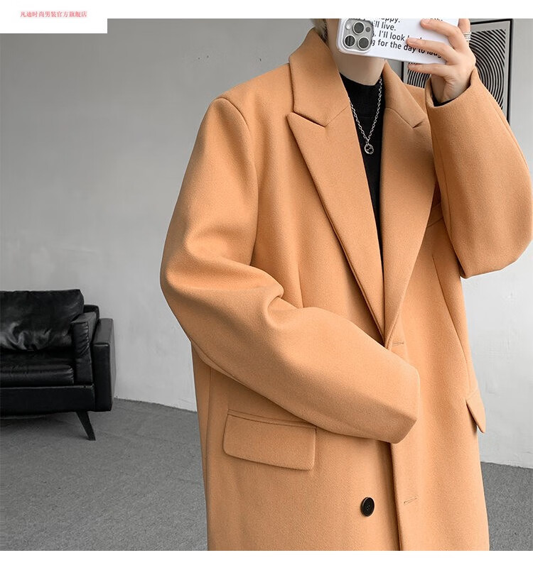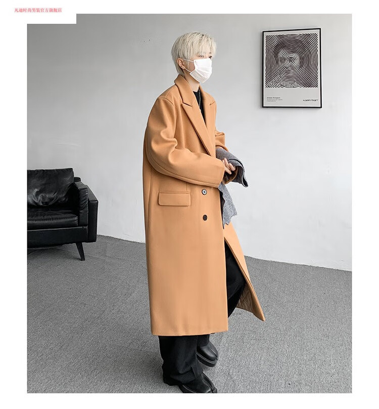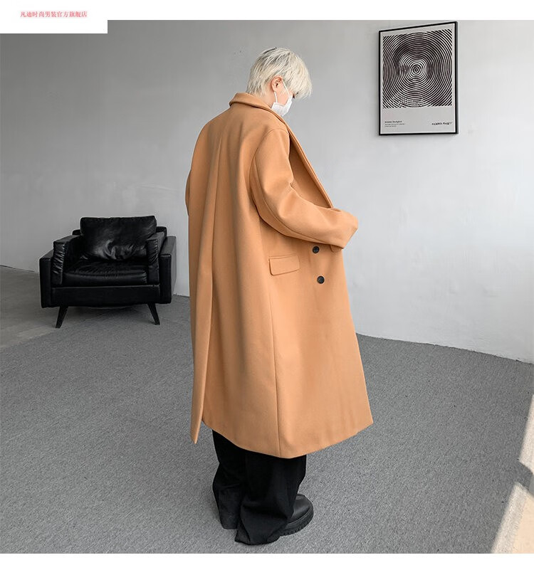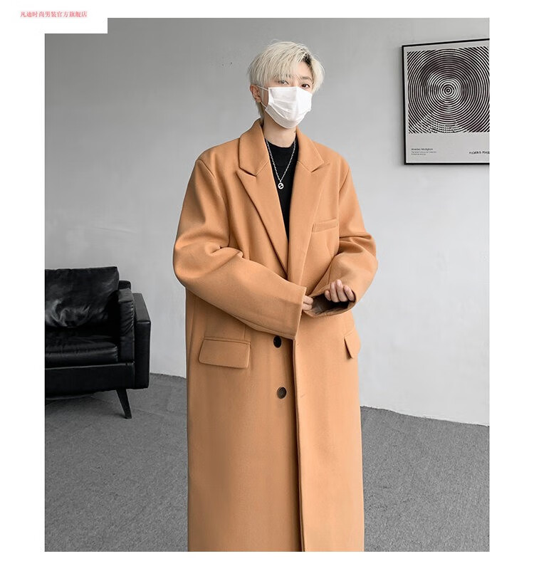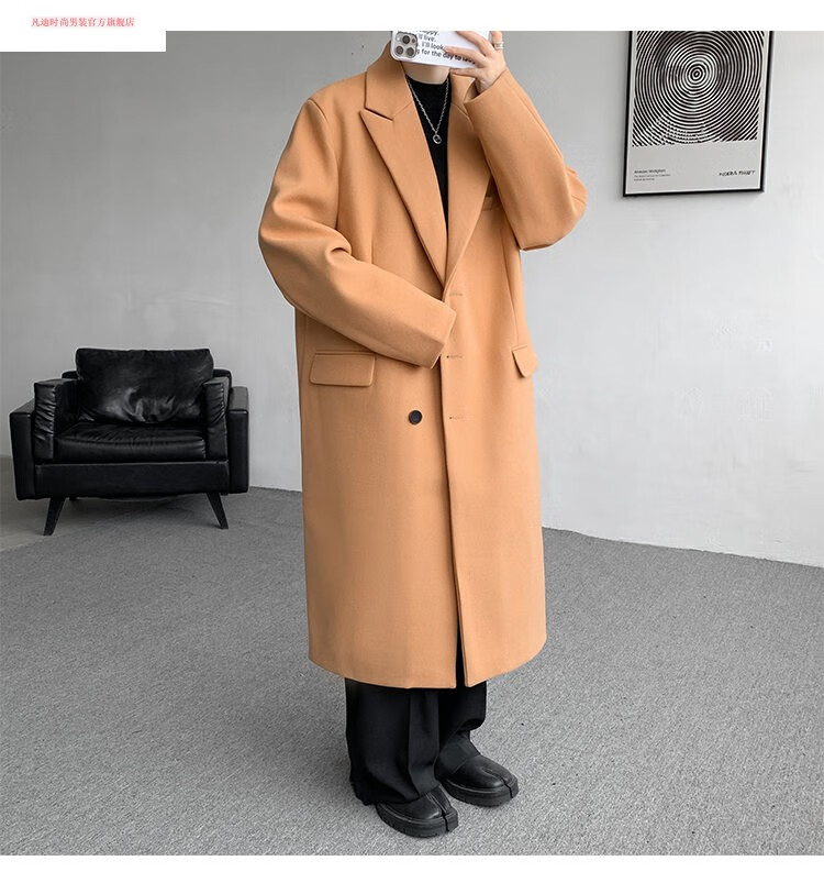 Qingchao Shang 8XL Extra Large Size Windbreaker Men's Spring and Autumn Korean Style Loose Long Woolen Coat Men's Fashion 300Jin Jin is equal to 0.5kg Youth Jacket Black and Cotton 8XL Recommended 265-290Jin Jin is equal to 0.5kg