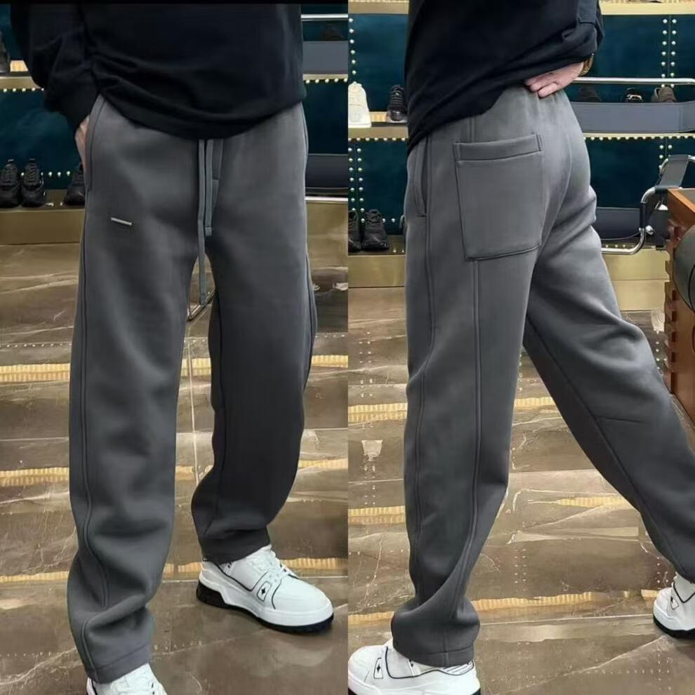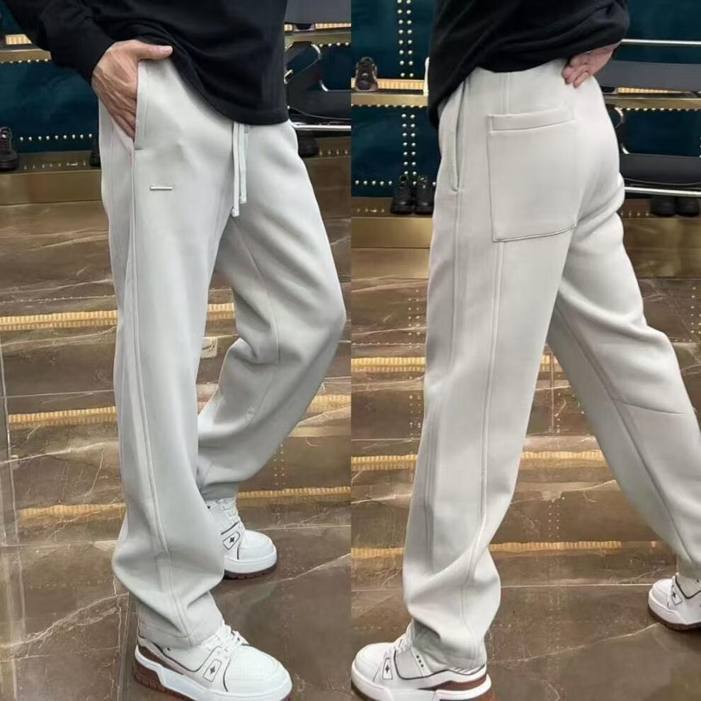 ROMON spring and autumn straight pants for men and women solid color versatile American trendy loose sports casual pants plus velvet and thickened men's casual off-white plus velvet and thickened 2XL recommended 140155Jin Jin equals 0.5 kg to wear