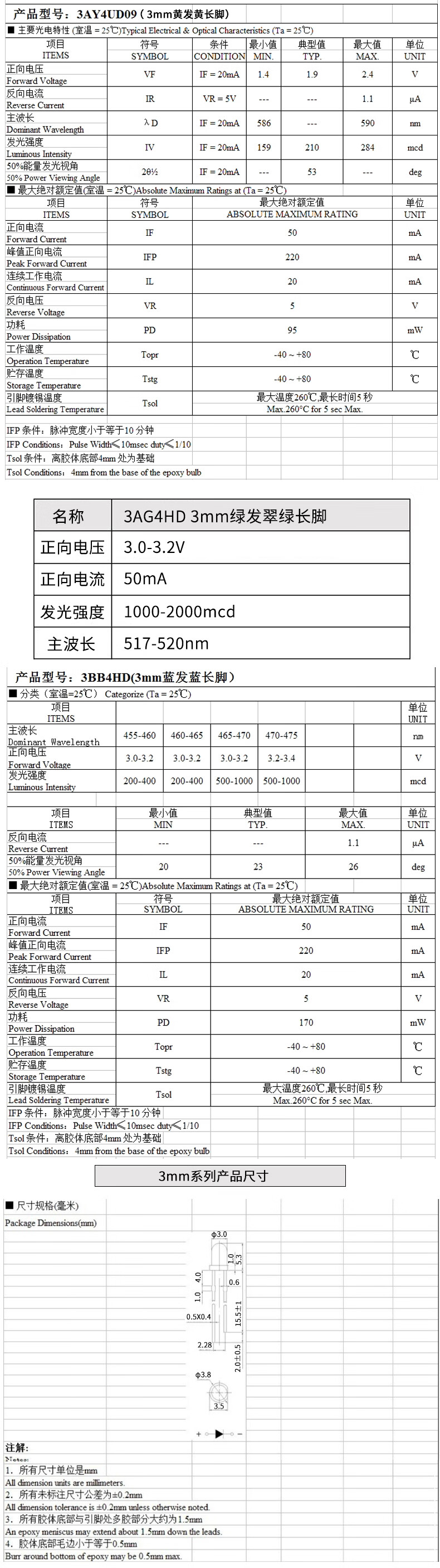 DZYJ 3mm 5mm light emitting diode F3F5 LED lamp beads white/red/green/blue/yellow/color (50 pieces) 3mm blue/blue long legs (50 pieces)