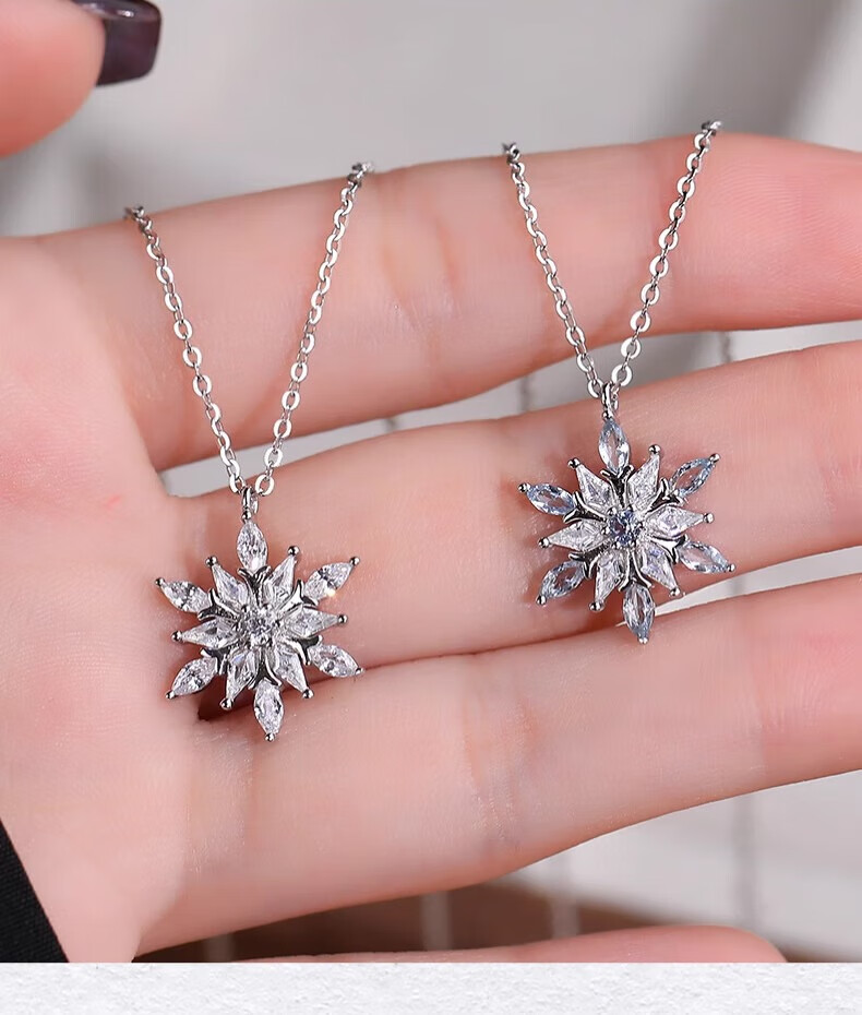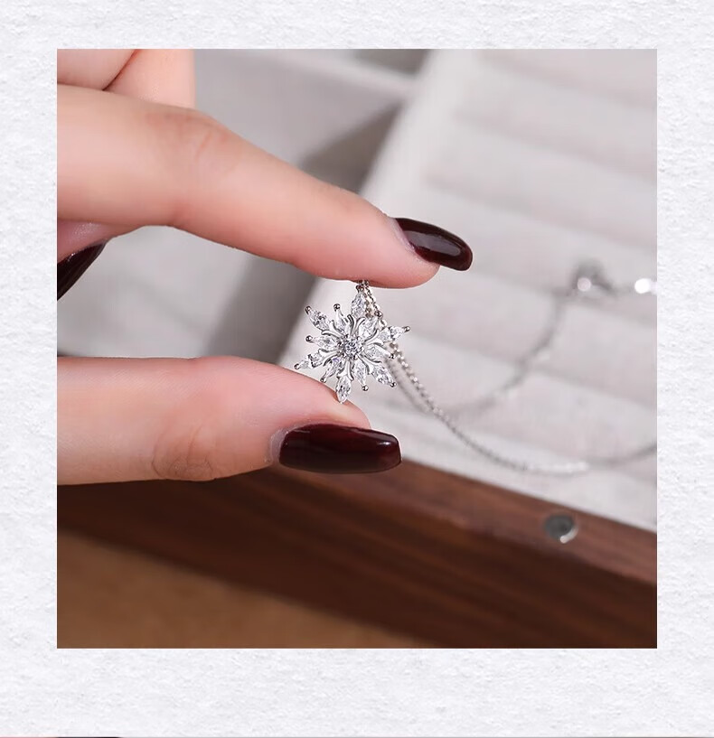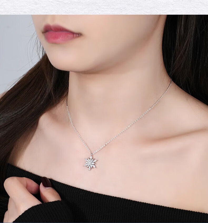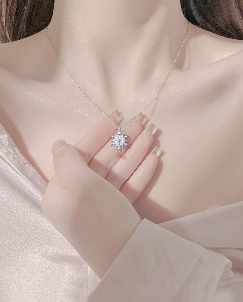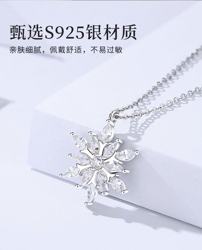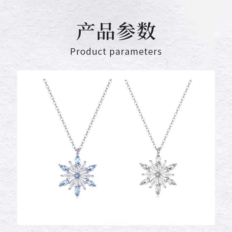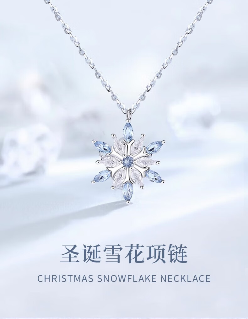 China Gold S925 Silver Christmas Snowflake Necklace for Women 2025 New Clavicle Chain Pendant Practical Birthday Gift for Girlfriend Romantic Rose Gift Box *Shipping from Hachikura/Fast Delivery Blue Diamond Sterling Silver Pendant + Free Chain