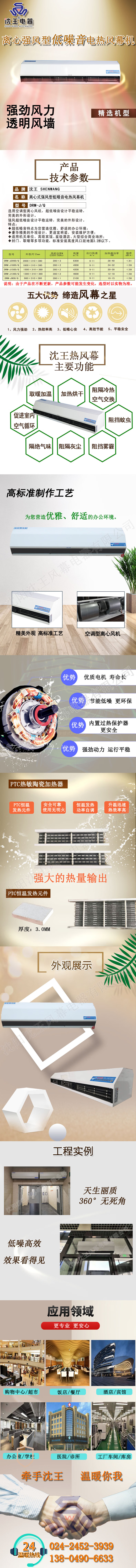 Shen Wang Centrifugal Strong Wind Low Noise Electric Heating Air Curtain Machine Commercial Shop Office Building Industrial Warehouse Door Heating Air Curtain Machine 380V DRM-J2000/Q 40kw 380V Specifications Model 2