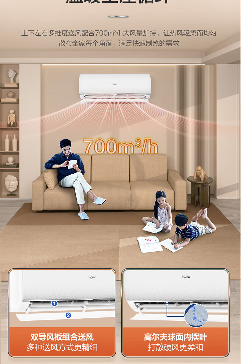 Aire acondicionado Haier Conjunto de aire acondicionado para tres habitaciones y una sala de estar Unidad de gabinete vertical/enfriamiento y calefacción colgado Nuevo nivel de eficiencia energética Convertidor de frecuencia CC completo Enfriamiento y calefacción Control inteligente Gabinete de aire acondicionado y juego de colgado Jingyue + Ahorro neto de energía Unidad de gabinete de 3 HP + Unidad de colgado de 1,5 HP*3