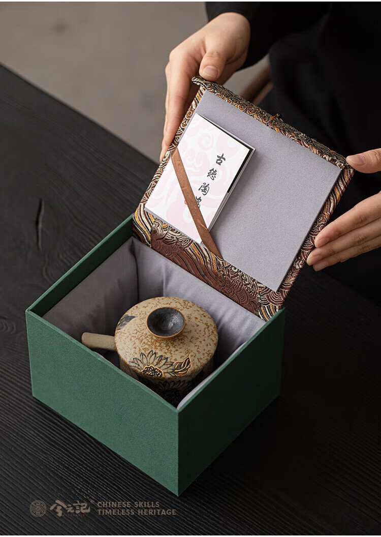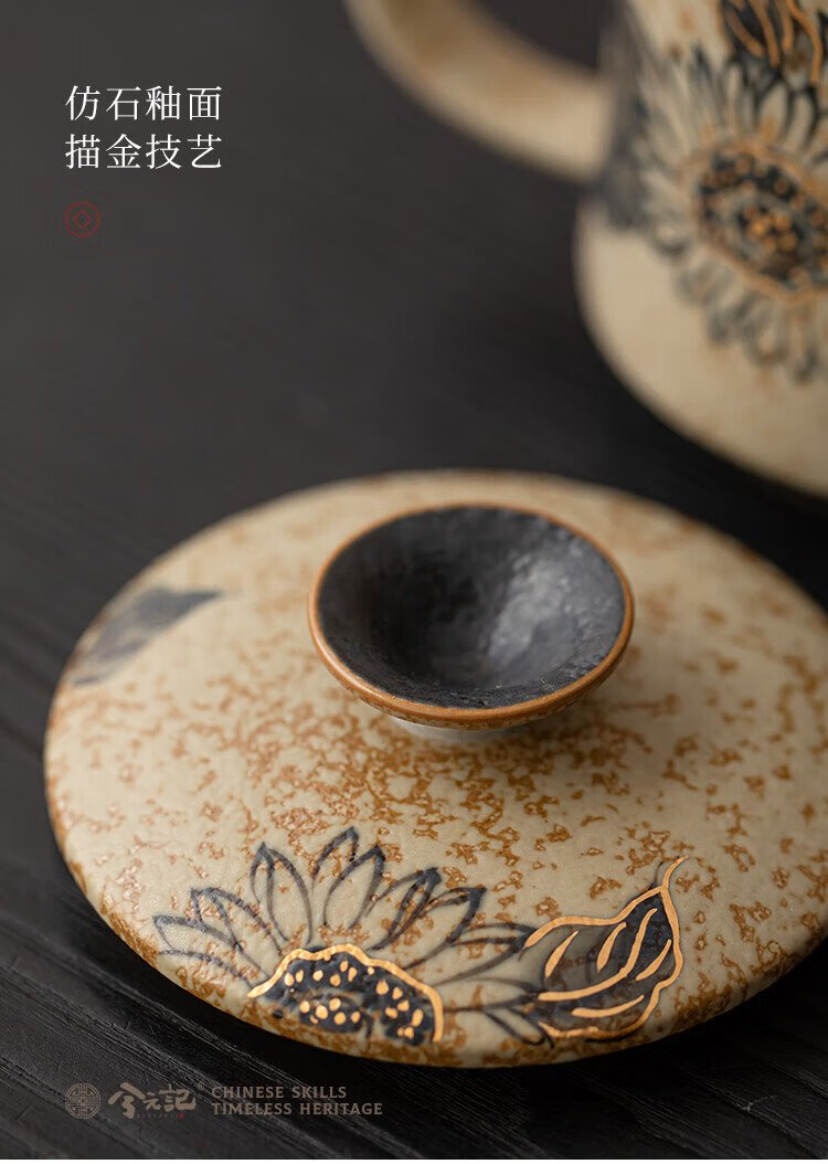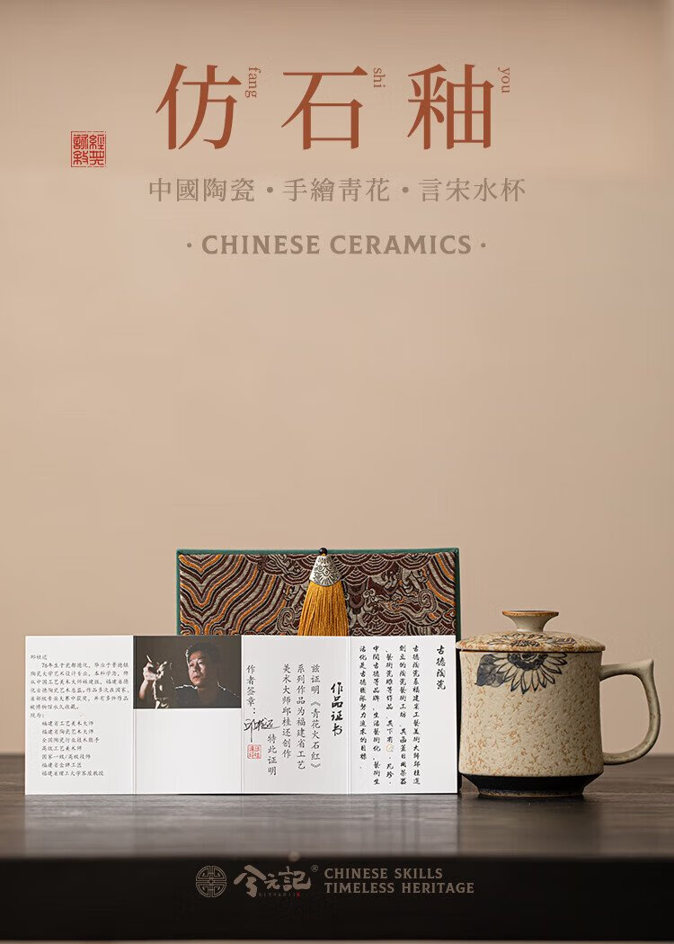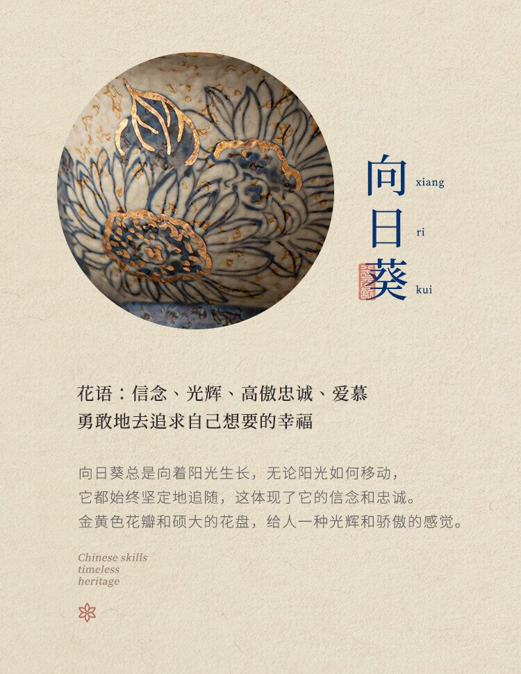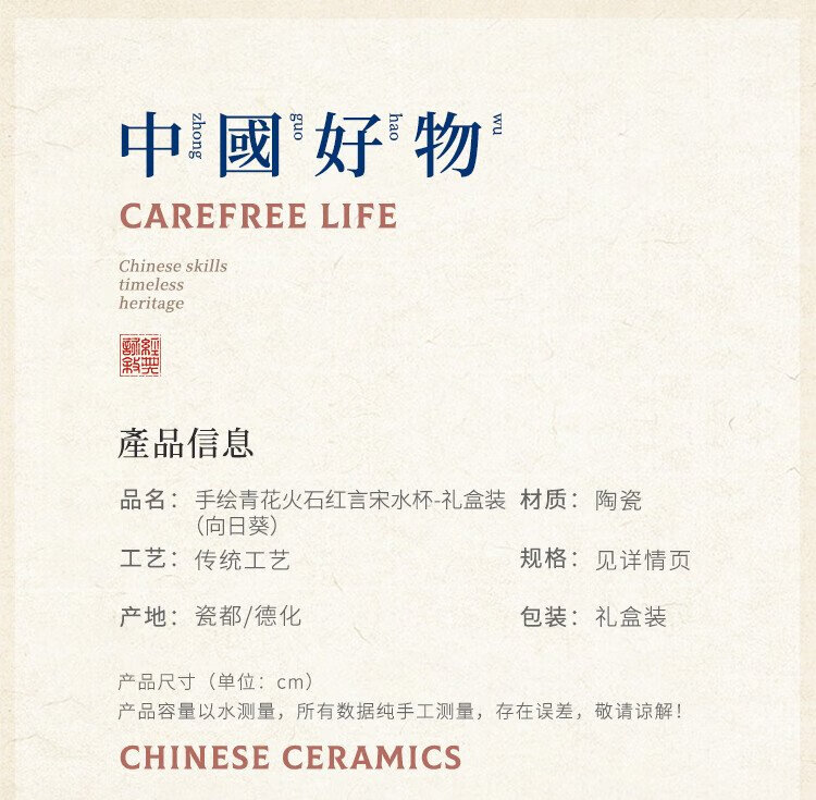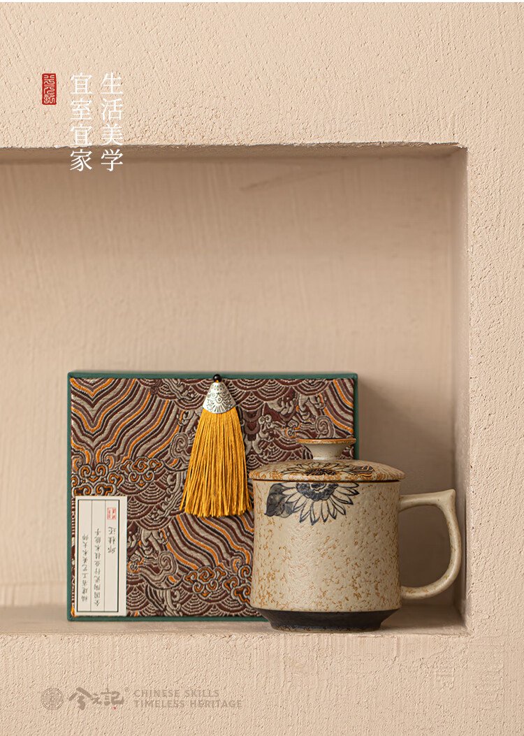 Xi Yuanji hand-painted blue and white flint red tea cup ceramic water cup with lid office mug Chinese antique cup hand-painted blue and white flint red Song Dynasty water cup-Sunflower