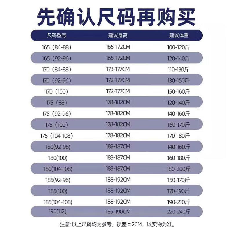 China (cm) 165 / 88-90 170 / 96-98 175 / 108-110 180 / 118-122 185 / 126-130