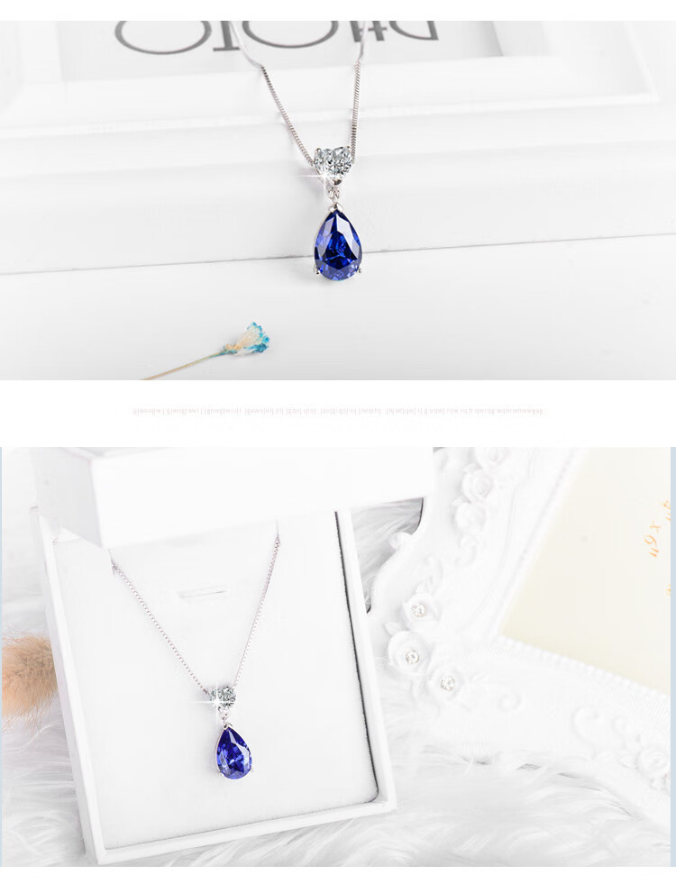 Yage sapphire necklace 925 silver heart-shaped water drop gemstone necklace clavicle chain women's tanzanite sapphire pendant 925 sterling silver platinum-plated pendant free 925 silver necklace