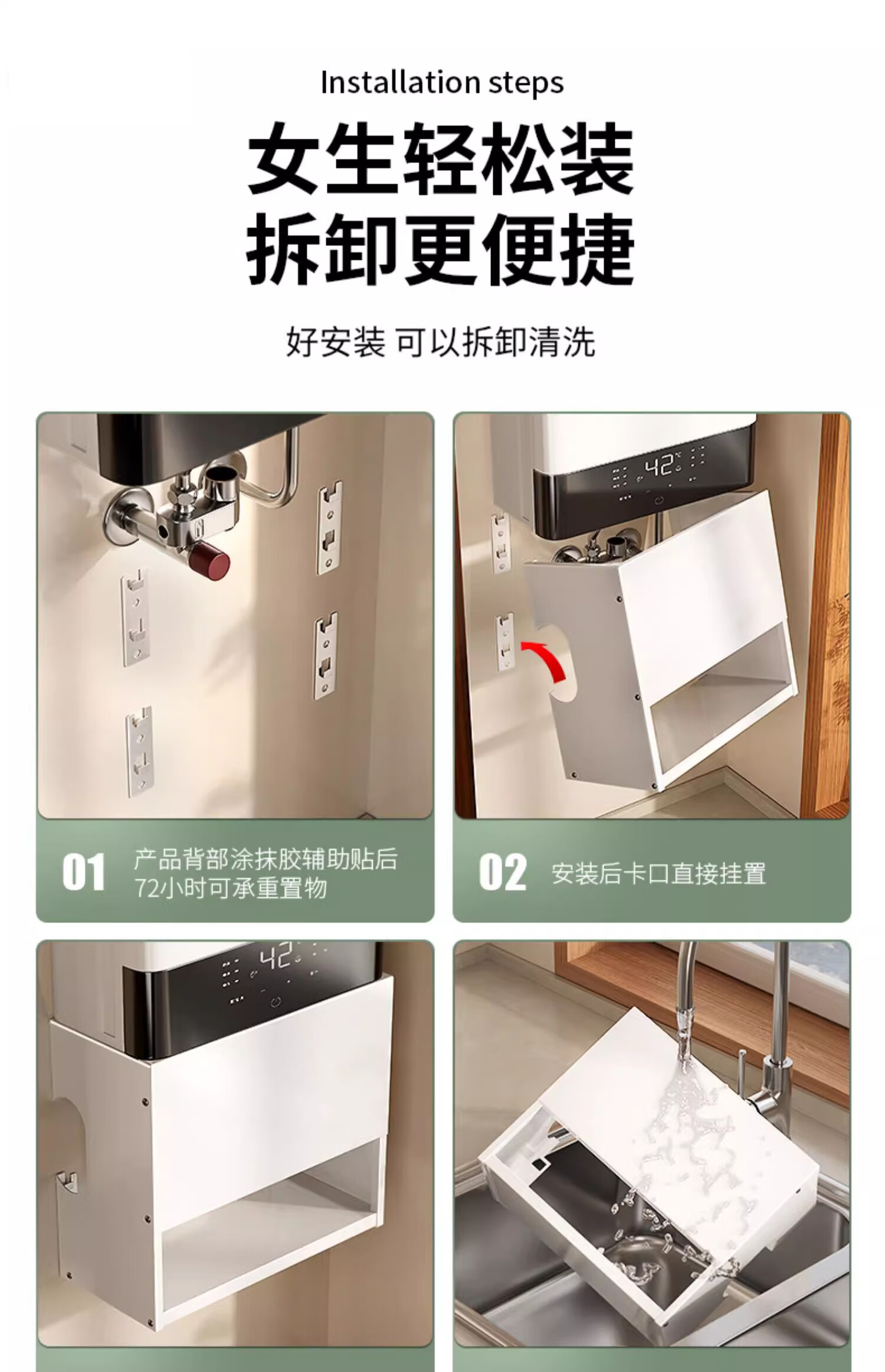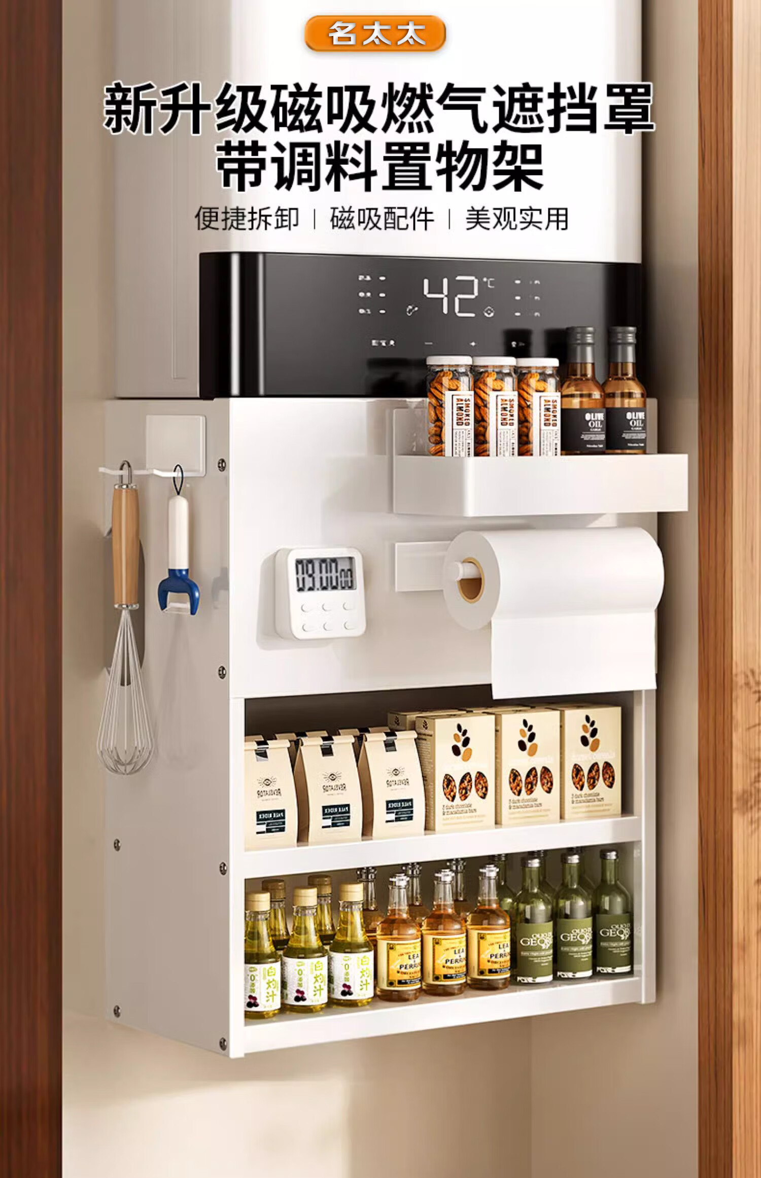 Mingtai gas water heater shield kitchen magnetic condiment rack wall-mounted pipe rack concealing decorative cover hook welfare model single layer 40cm