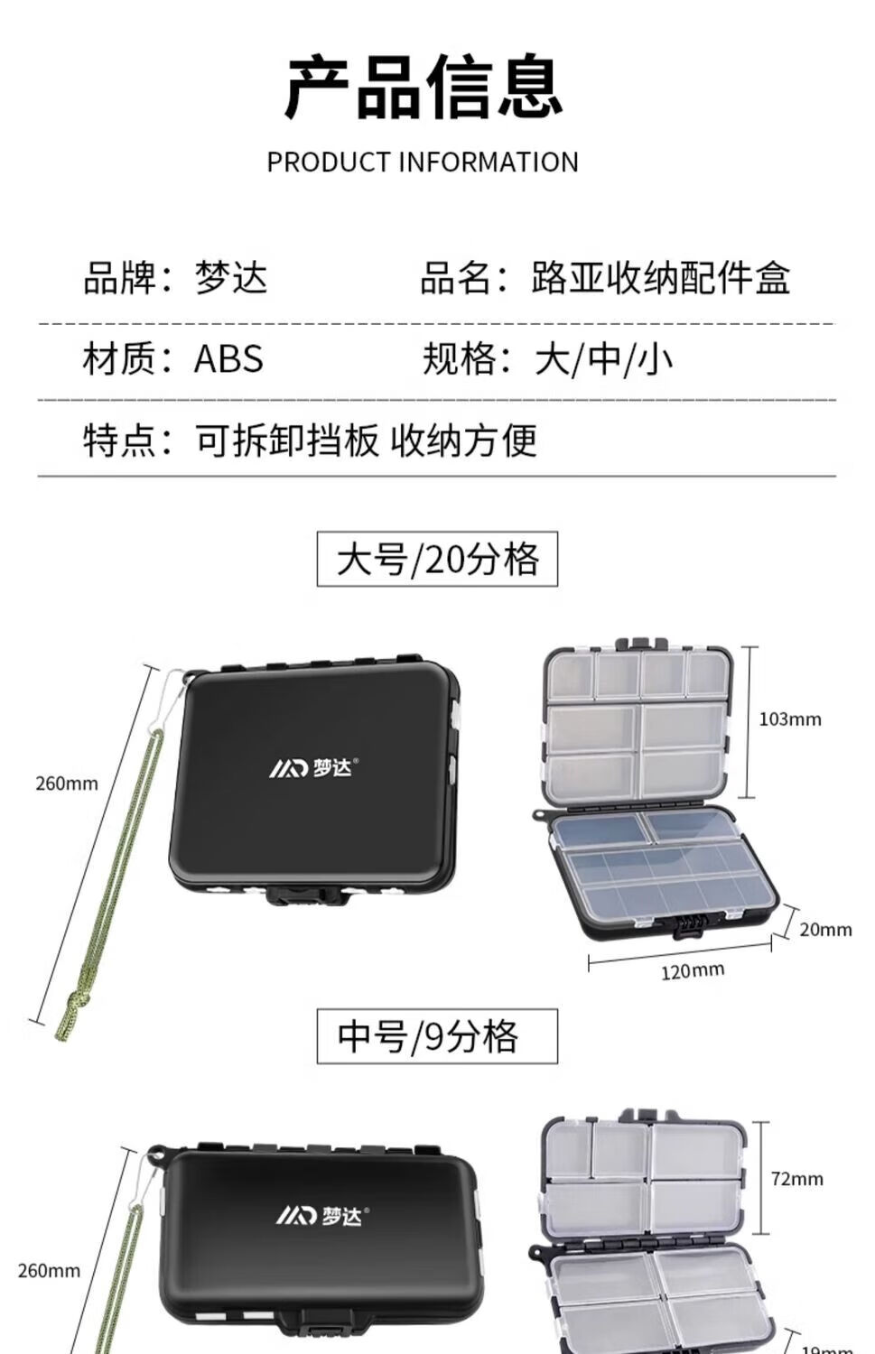 Mengda New Fishing Accessories Storage Box Tools Fishing Gear Special Accessories Box Fish Hooks and Bait Small Parts Multi-Function Waterproof Road Medium-Portable 9 Grids 1