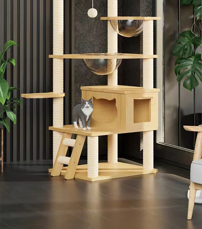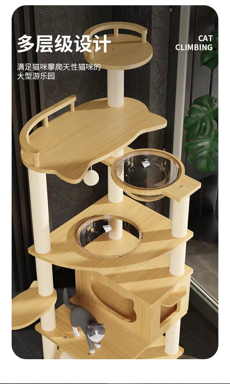 Luo Ou Mansion cat climbing frame, large cat villa, multi-layered cat scratching board, cat nest, cat tree, all-in-one, four-season internet celebrity space capsule, 120cm, 5-layer cat castle-basic model
